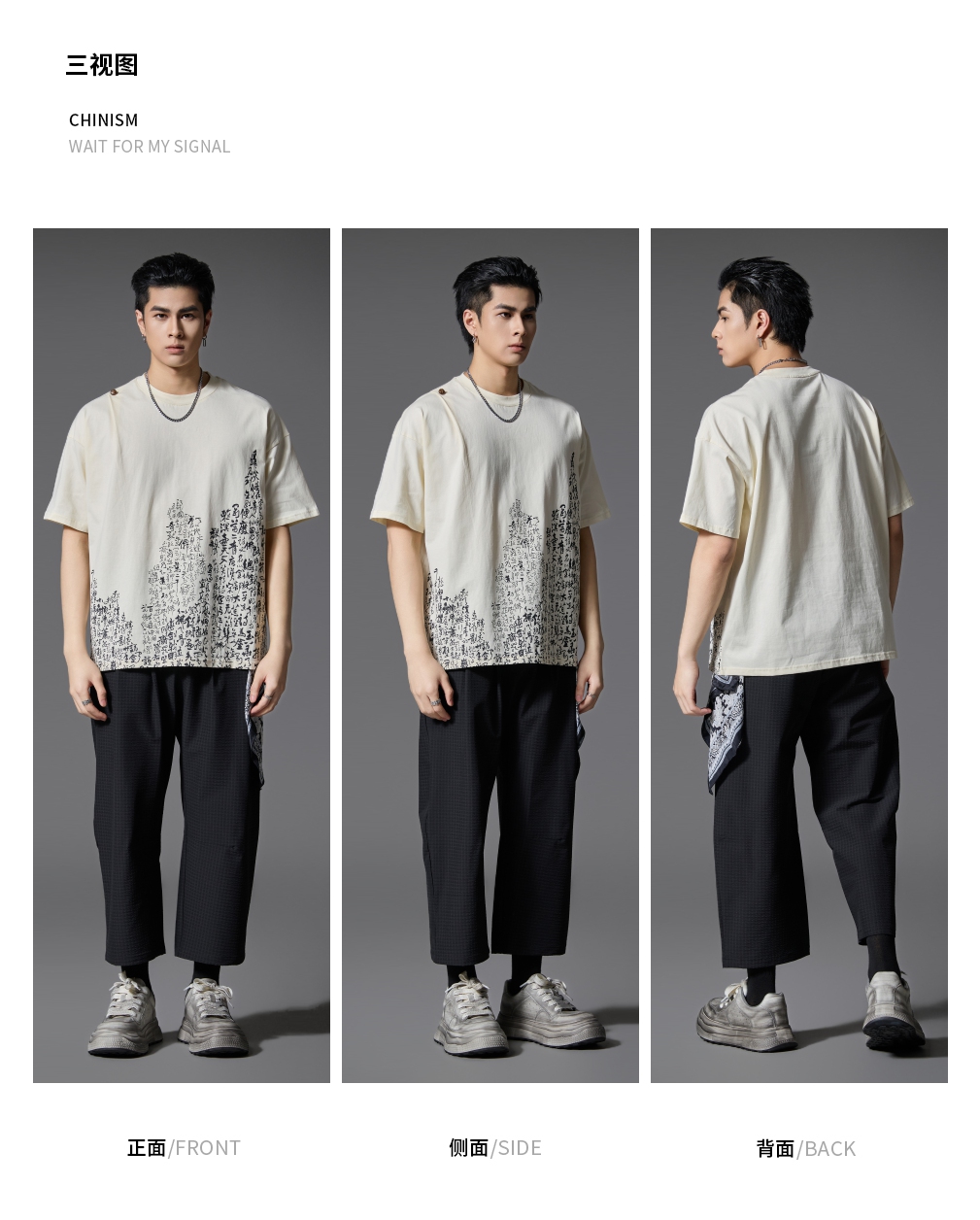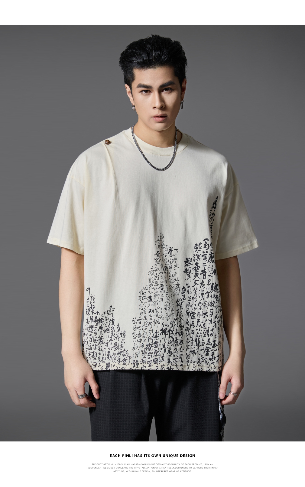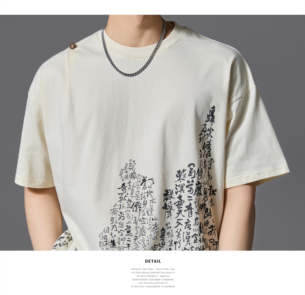 PINLI品立2025春夏新款宽松圆领文字印花短袖T恤上衣男B252111014