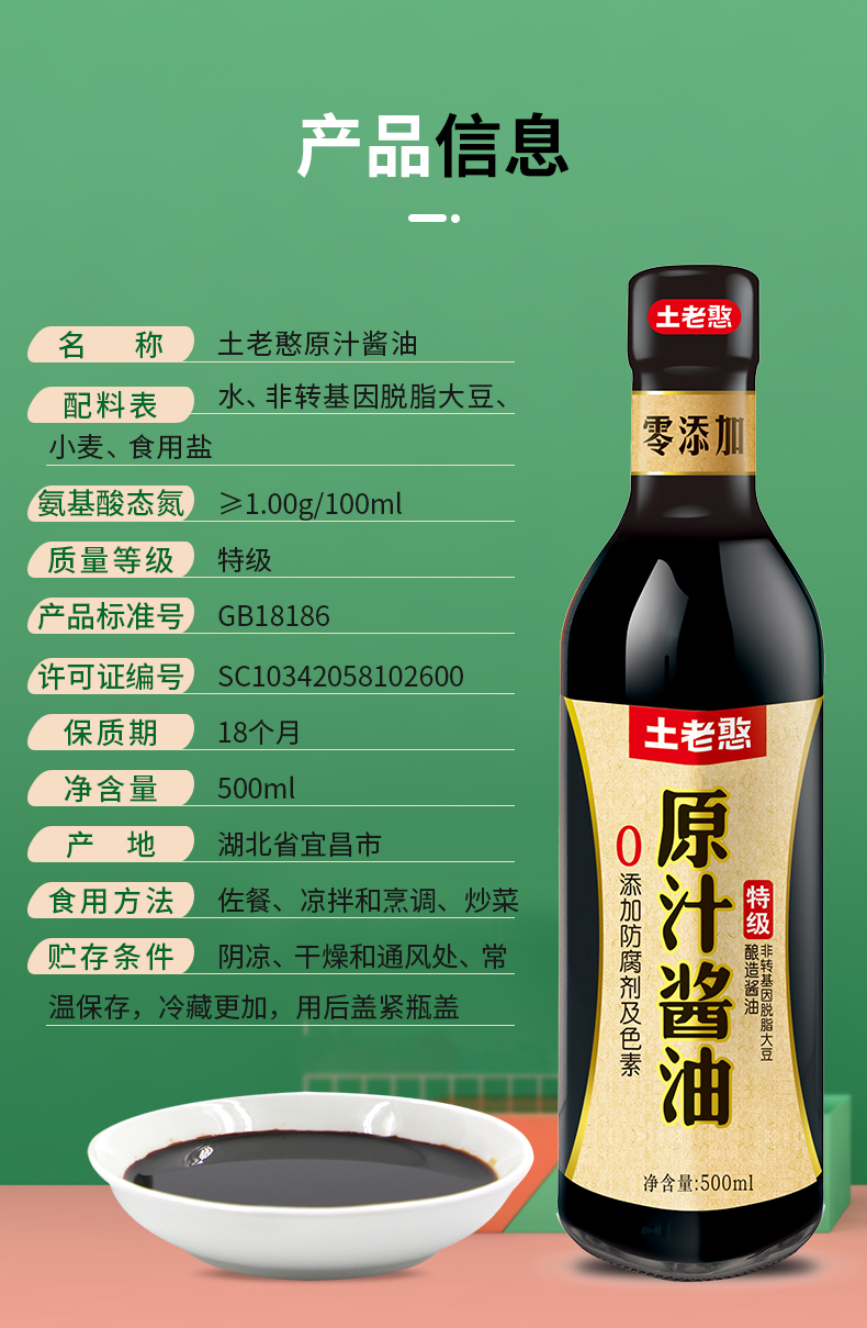 【宜昌助农馆】土老憨500ml原汁酱油 零添加