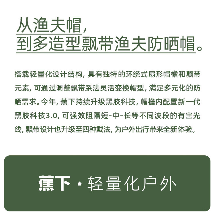 蕉下穹顶系列间末防晒渔夫帽【暑期购】