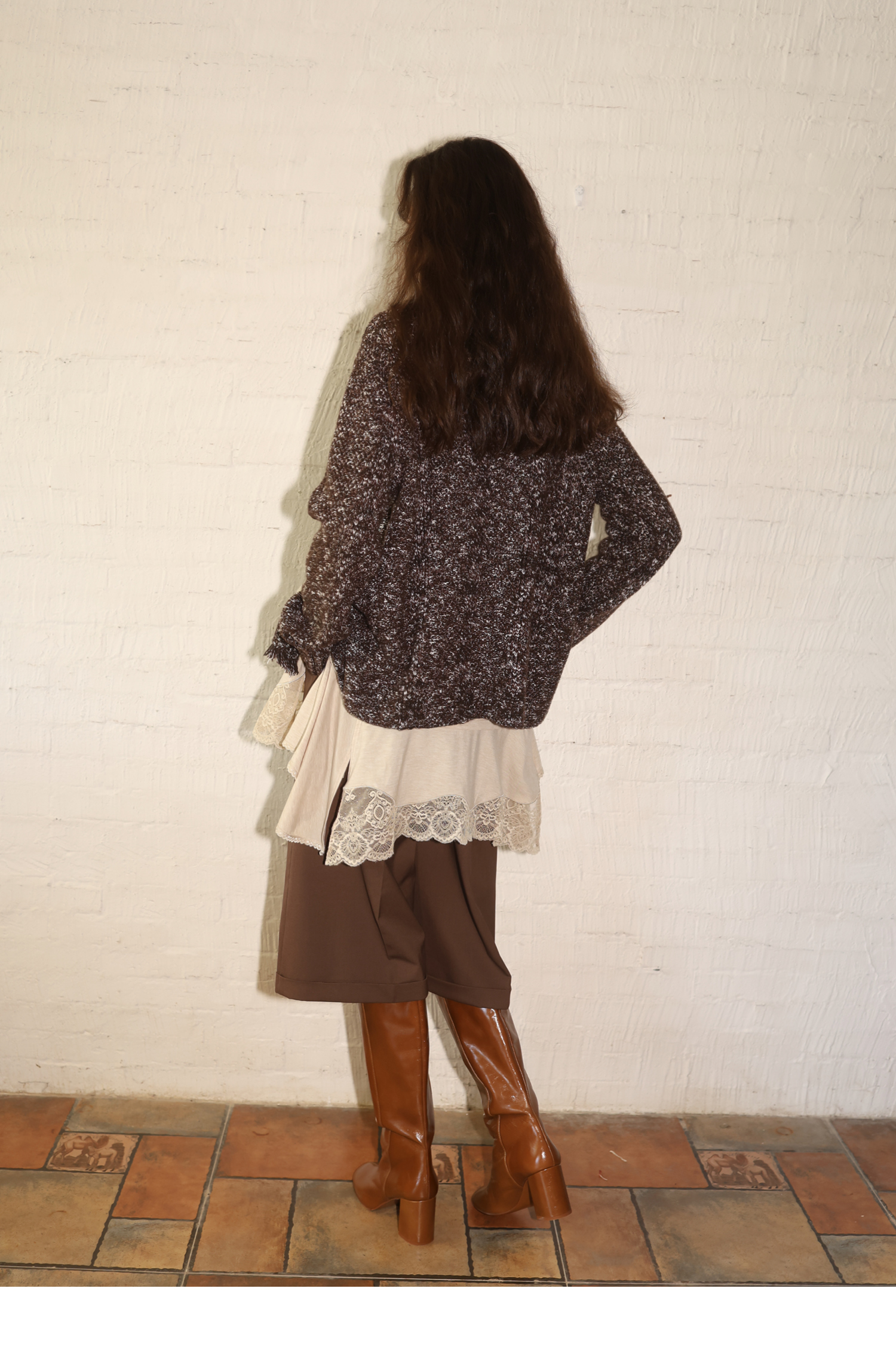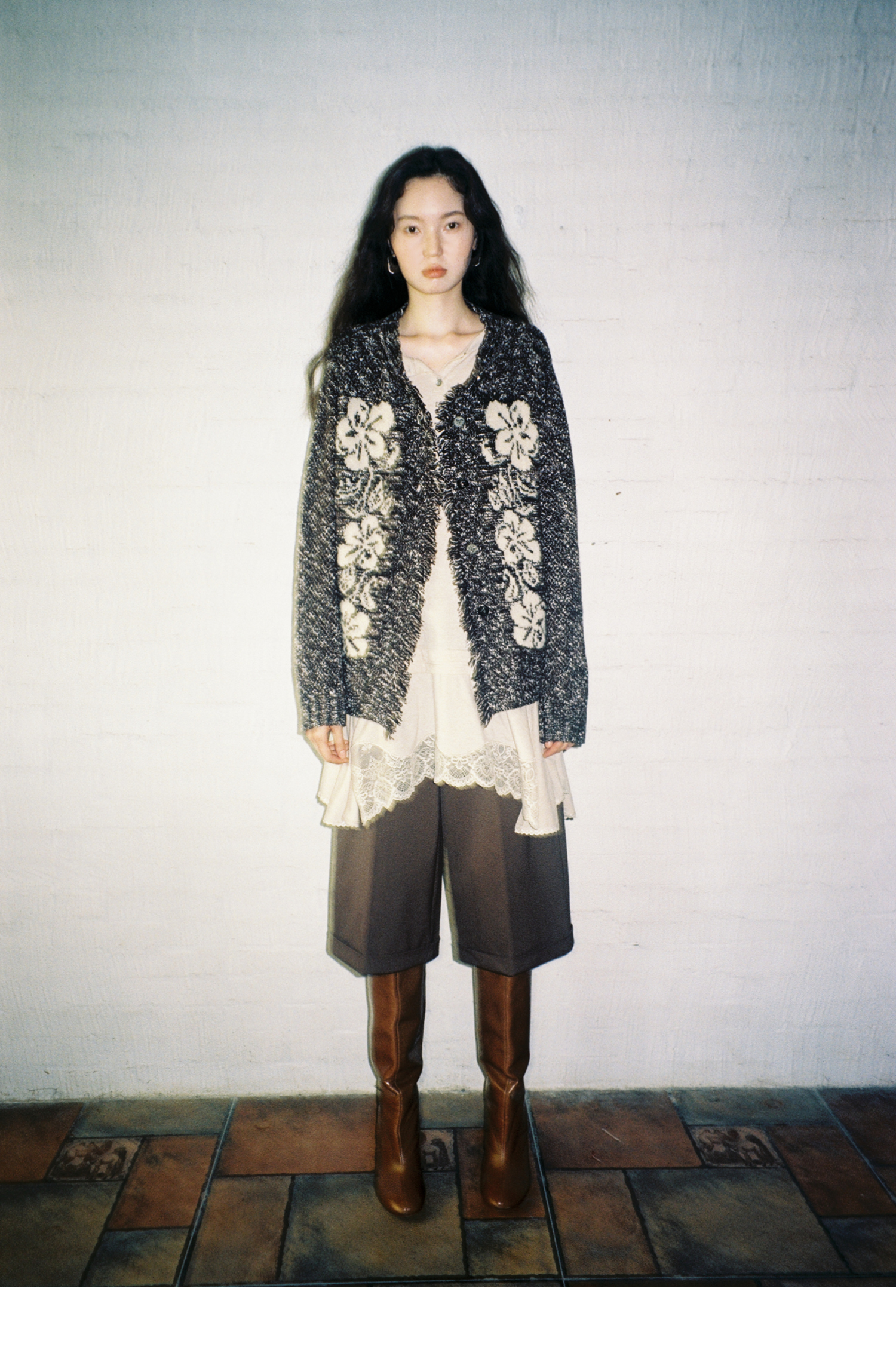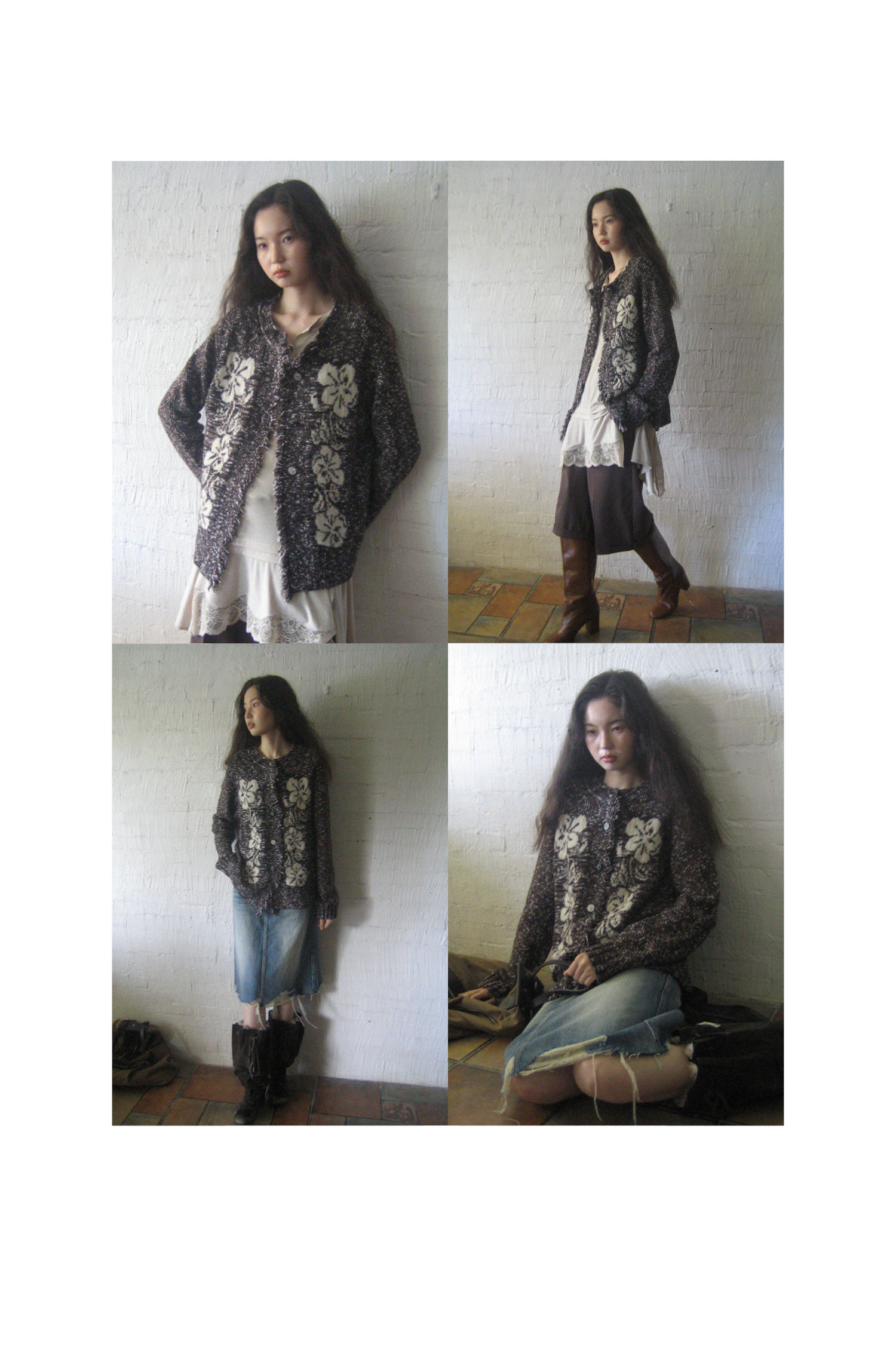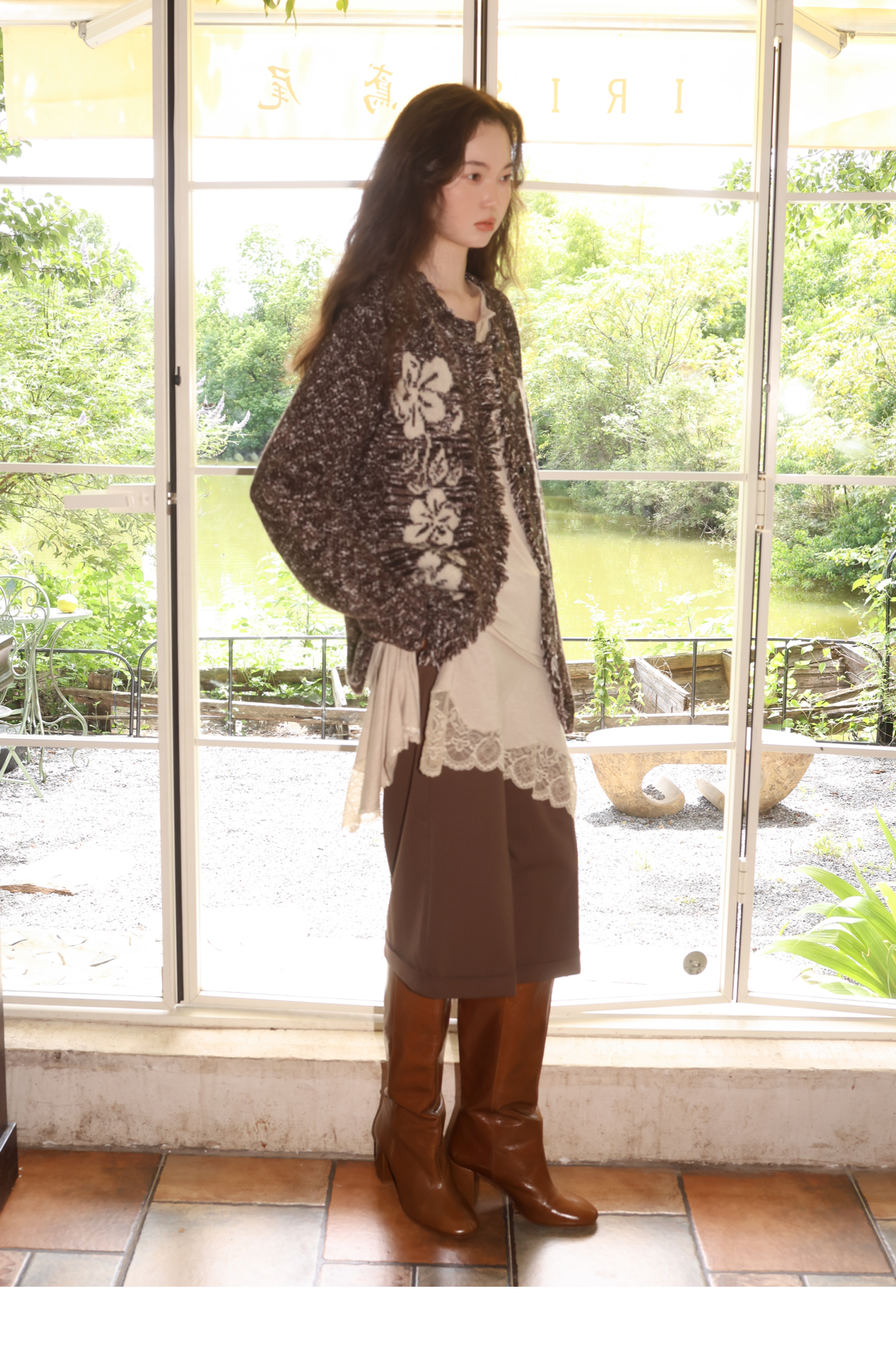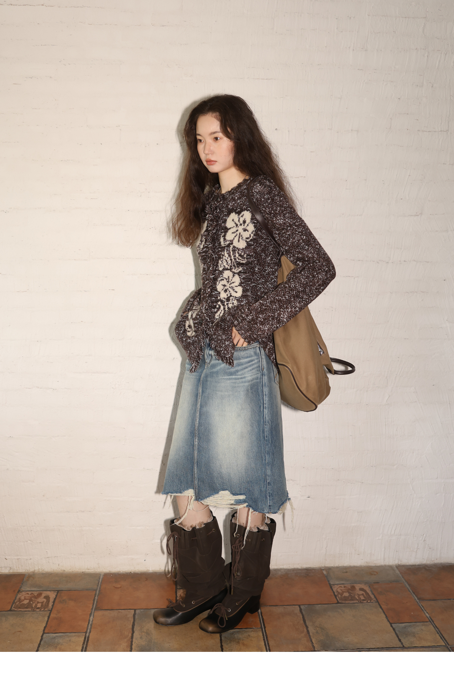 素舶 牦牛绒绵羊毛柔软细腻混色花朵提花撞色流苏小香针织开衫