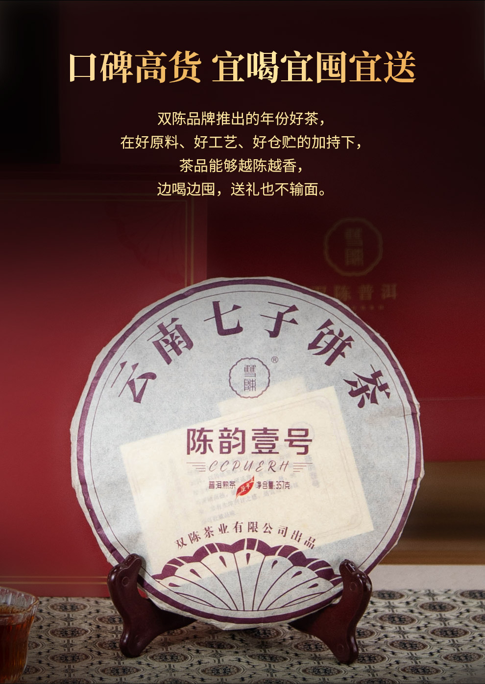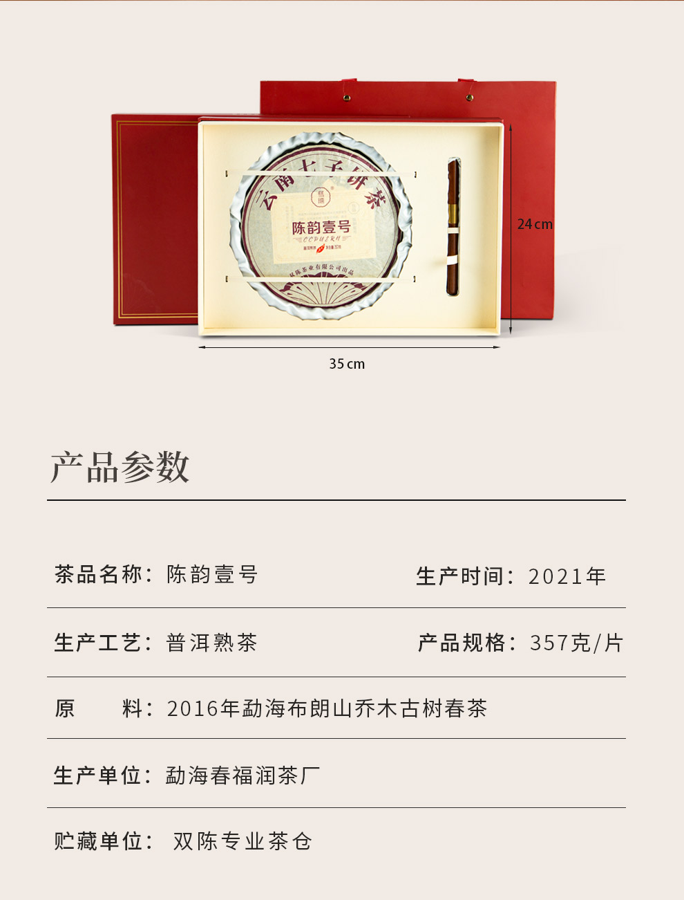 2021年陈韵壹号熟茶357g/片云南七子饼茶勐海古树茶2016年古树春茶压制