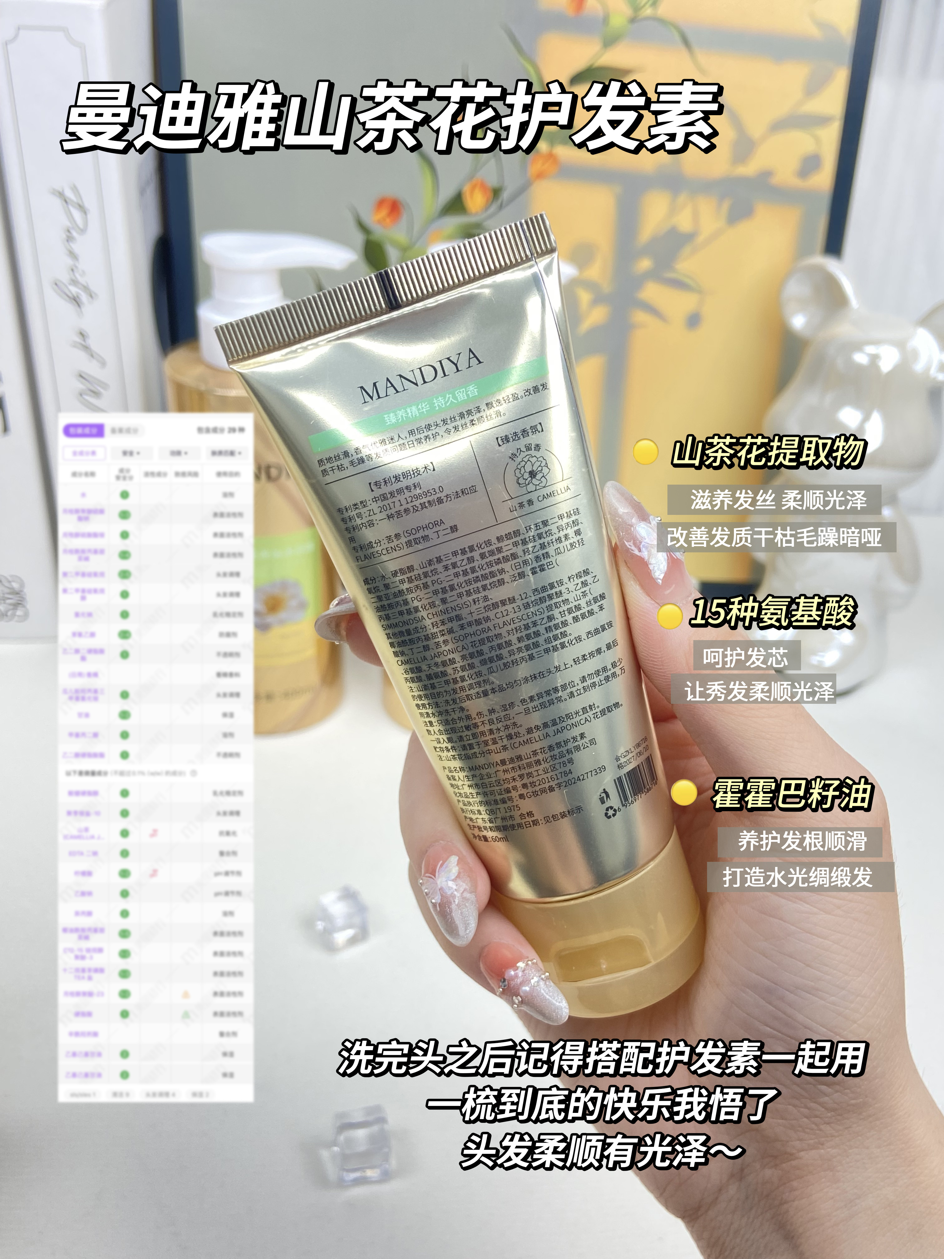 成分可靠加15种氨基酸成分➕霍霍巴籽油