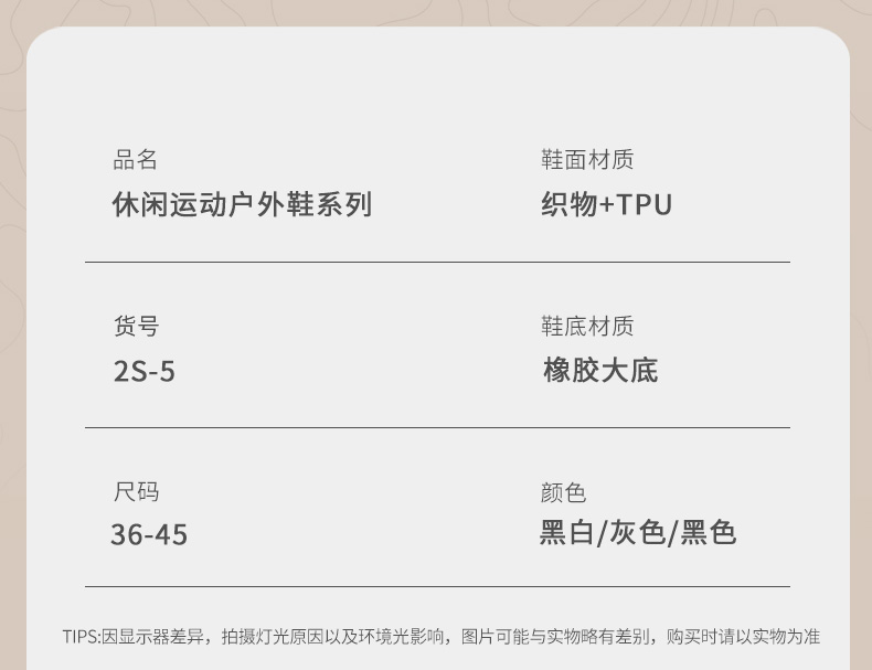 【品名】奥特莱斯联名龙狮戴尔户外运动鞋 透气 轻量 抓地 防滑 【规格】黑白、灰色、黑色 【尺码】38-44码 【产地】国内 【发货包装】独立包装 【发货地】福建 【发货快递】申通 【不发货区域】新疆、西藏、港澳台 【补邮费地区】内蒙古、宁夏、甘肃、青海+10元 【发货时效】48-72小时,周末节假日顺延 |