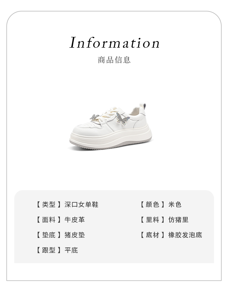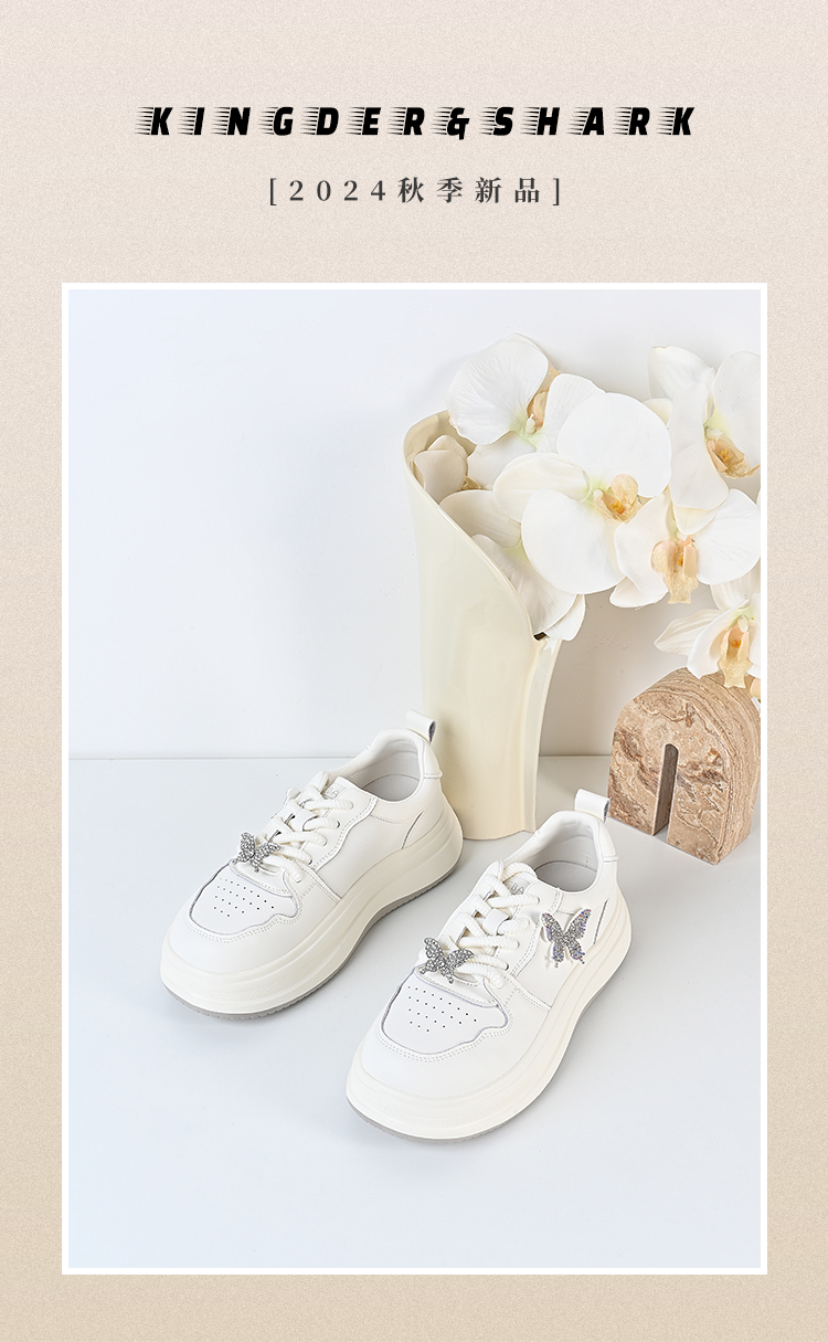 经典鲨2024年秋季新款韩版立体蝴蝶结装饰平底休闲小白鞋女KW141-D37031