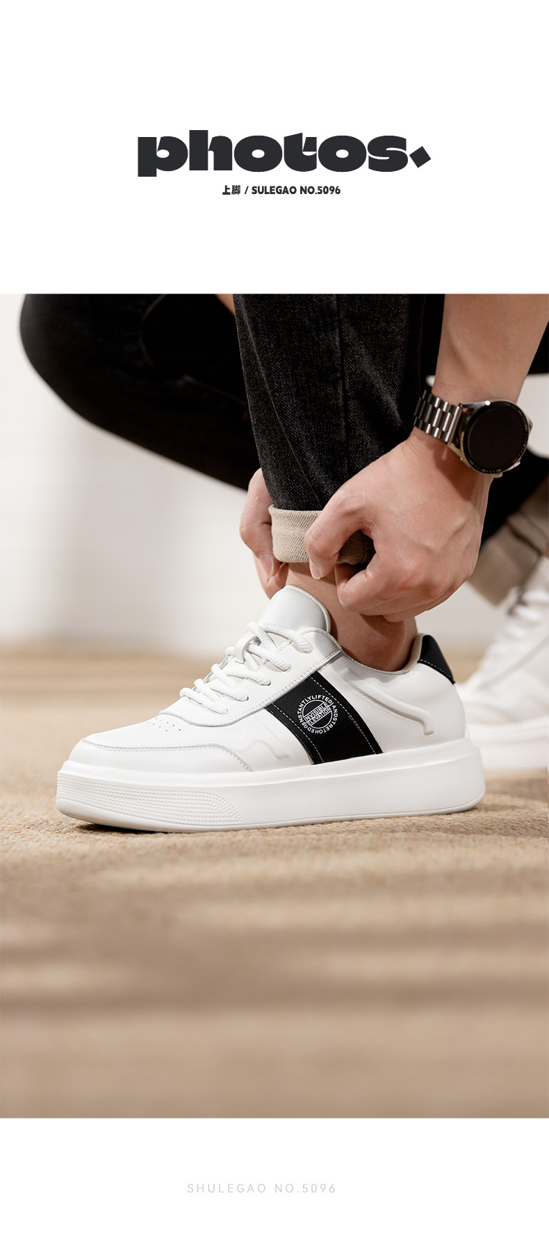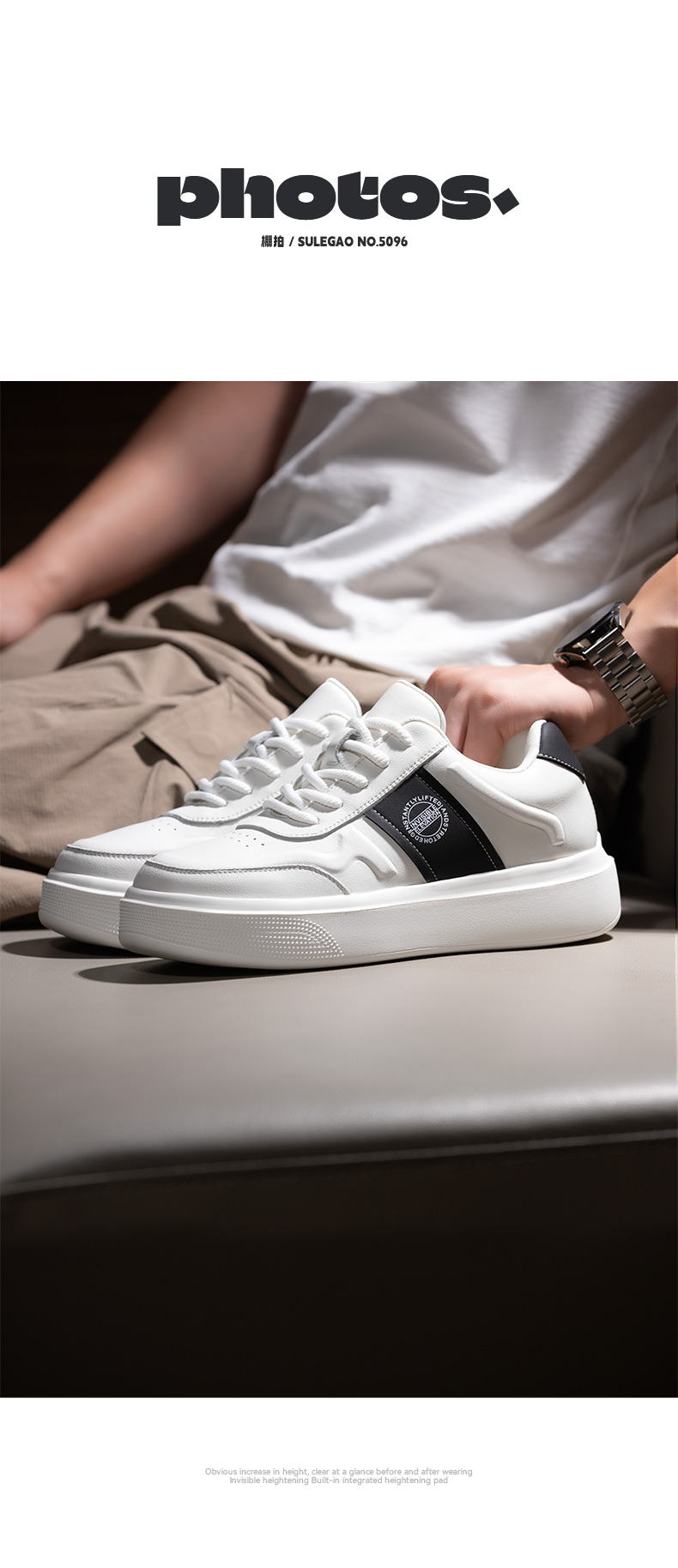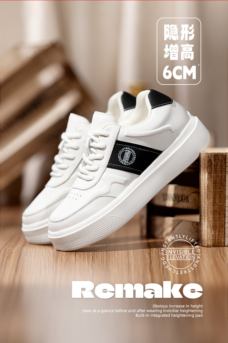 隐形增高鞋男6cm内增高男鞋男士休闲男板鞋时尚白色百搭小白鞋潮