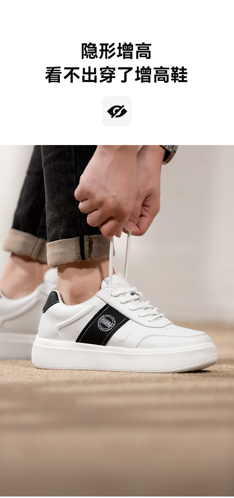 男士6cm隐形增高鞋男内增高男鞋小白鞋百搭休闲板鞋男时尚