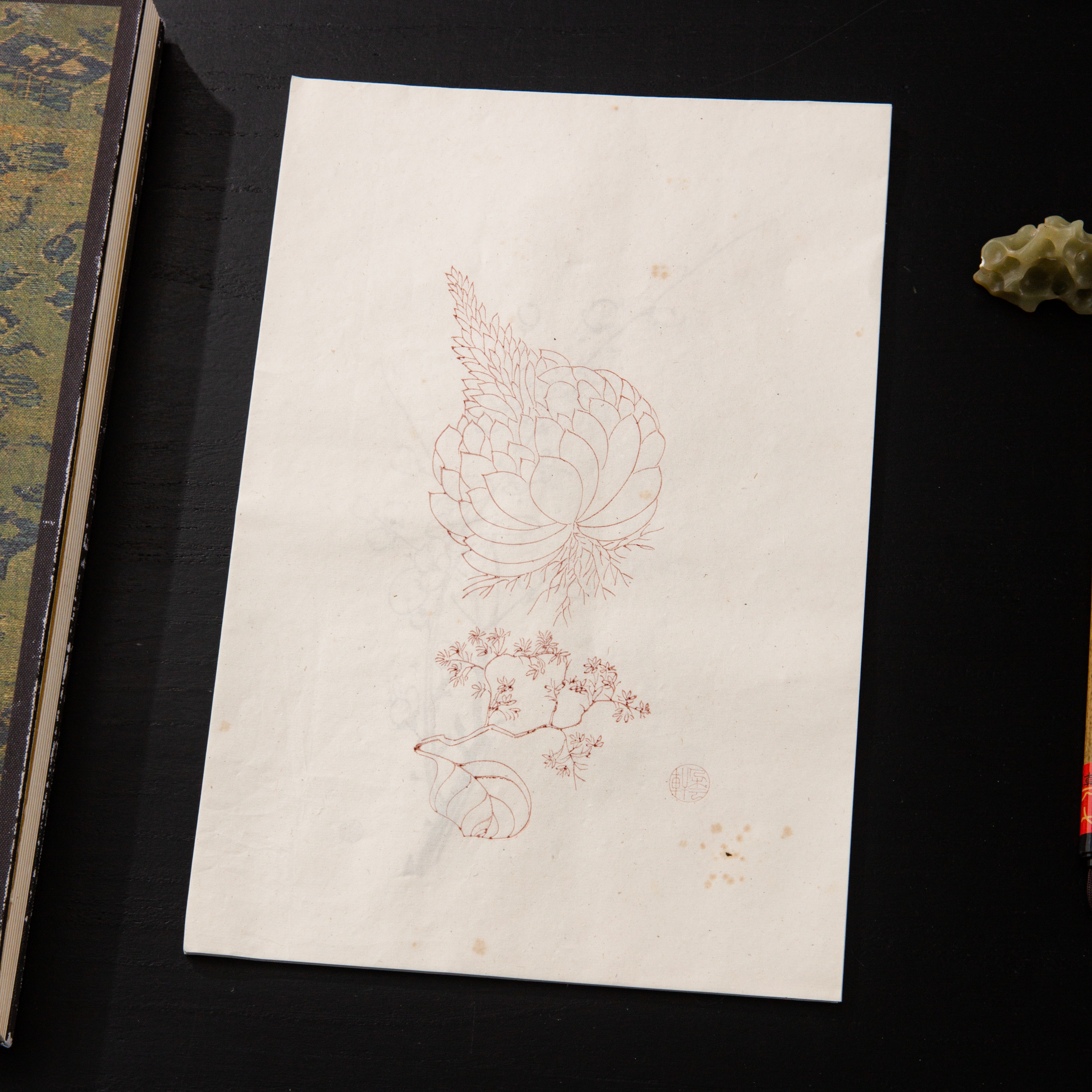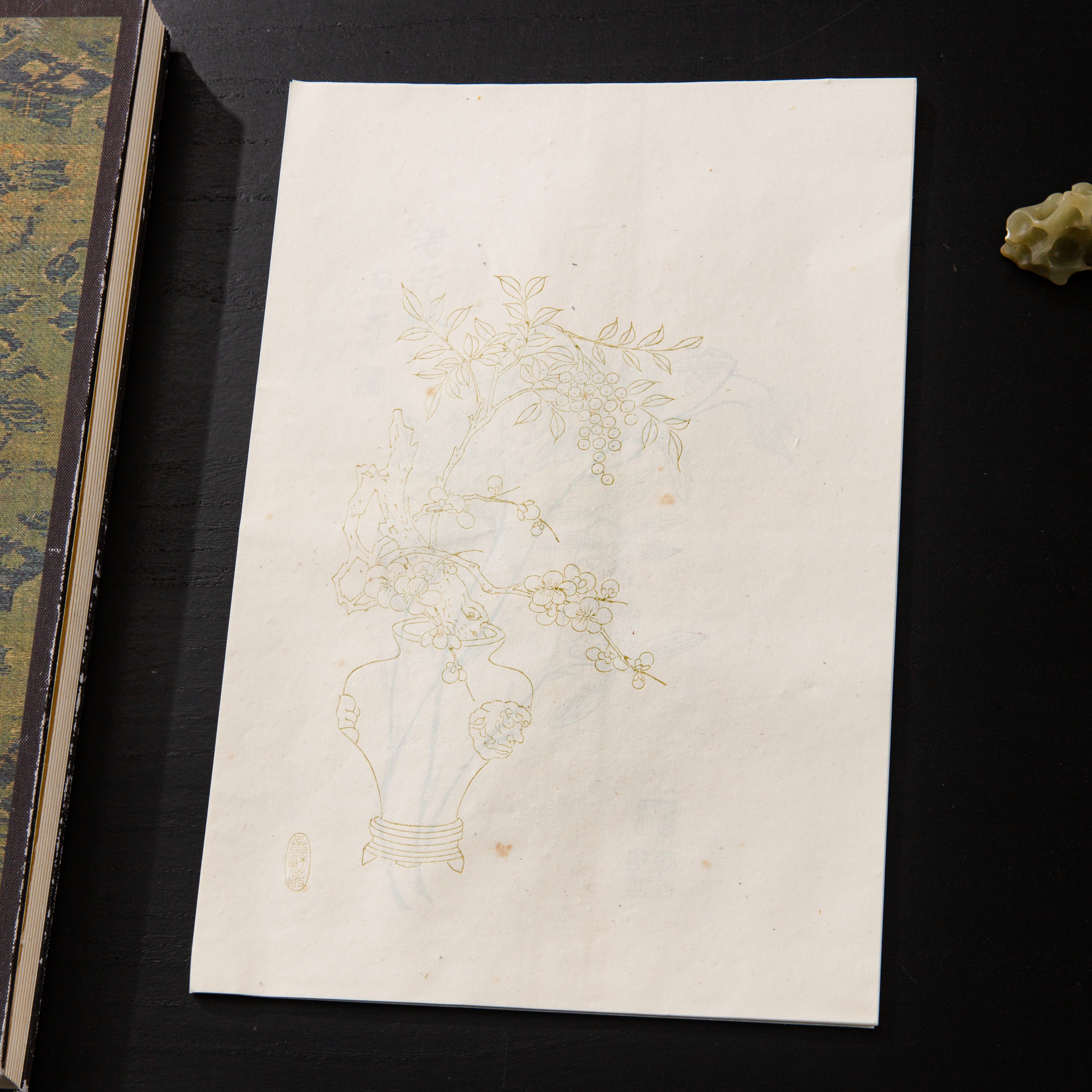 70年代《朵云轩木版水印信笺》,其构图文雅,雕版精细,水印颜色自然有韵味,原包装保存,品相完好,一包20个图案无重复。