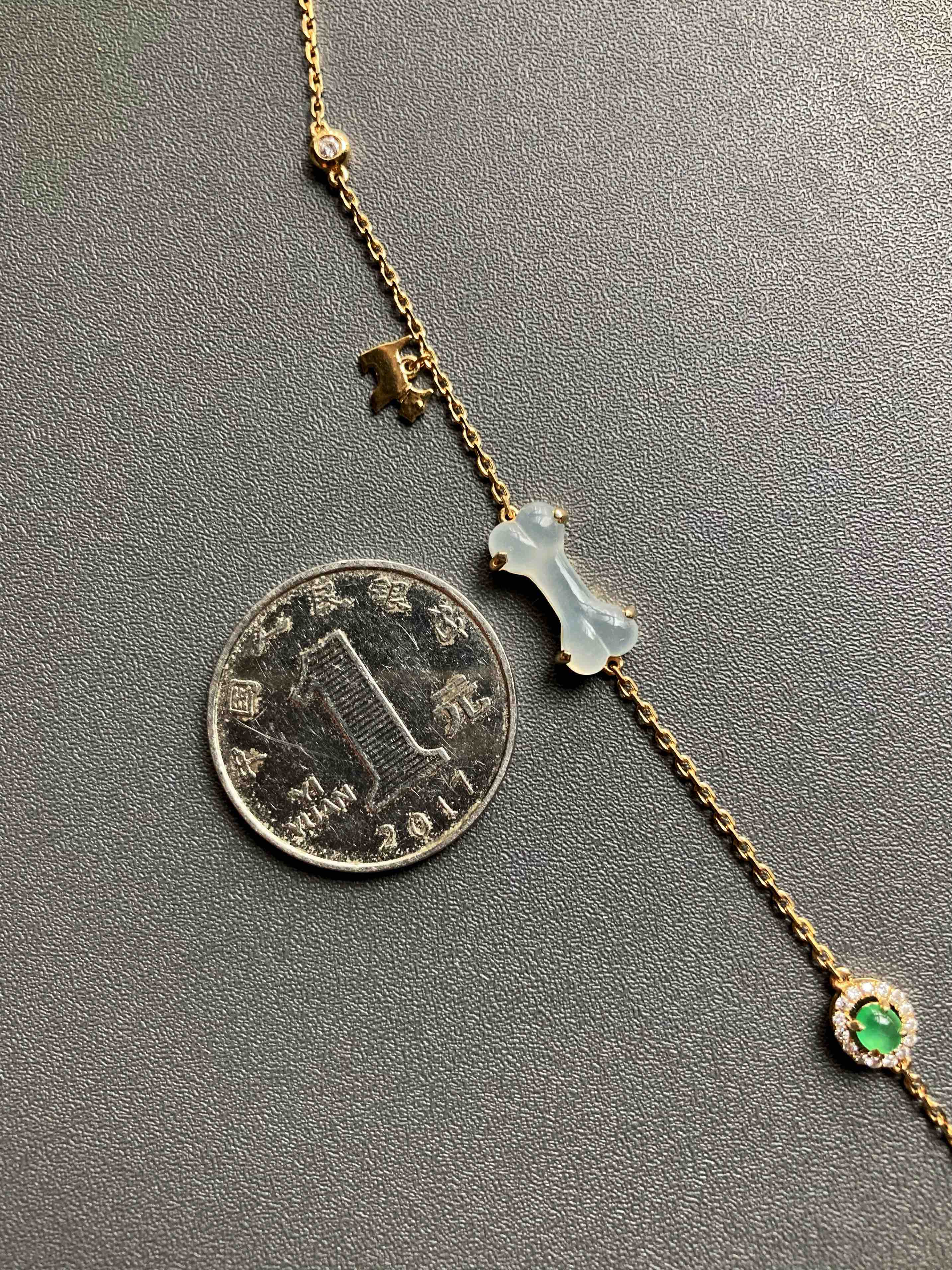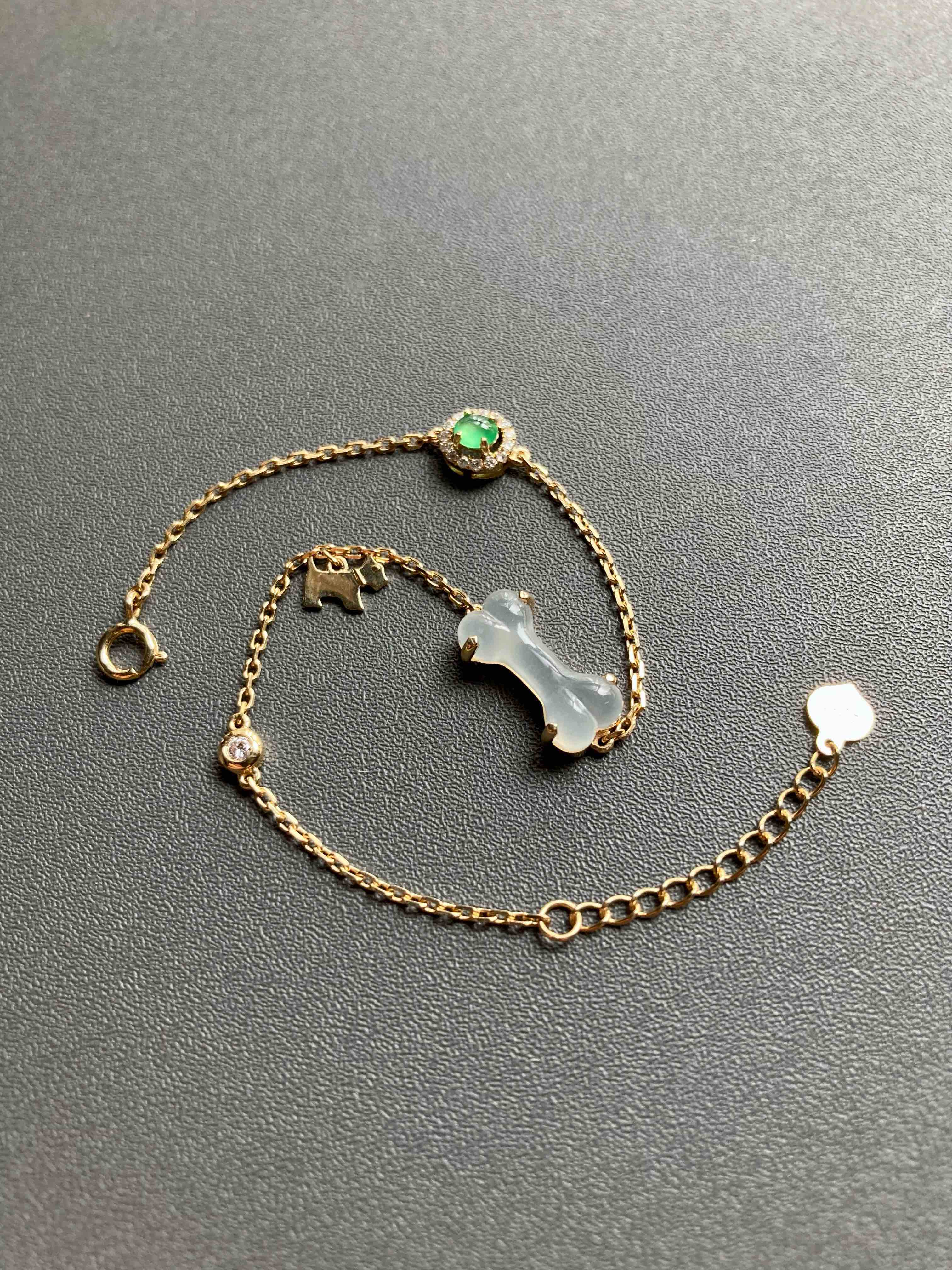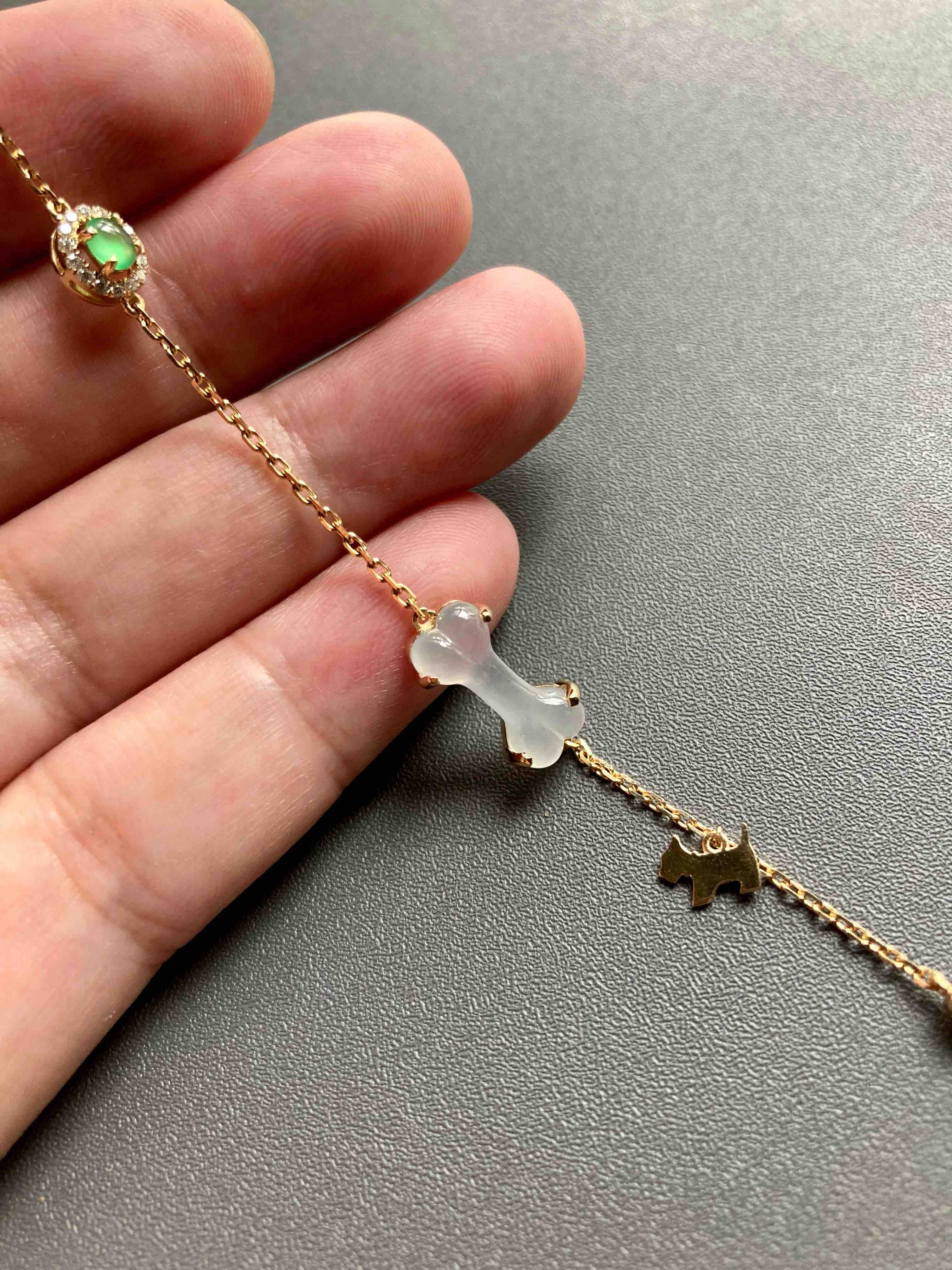 冰种翡翠狗狗手链18k黄金钻石镶嵌