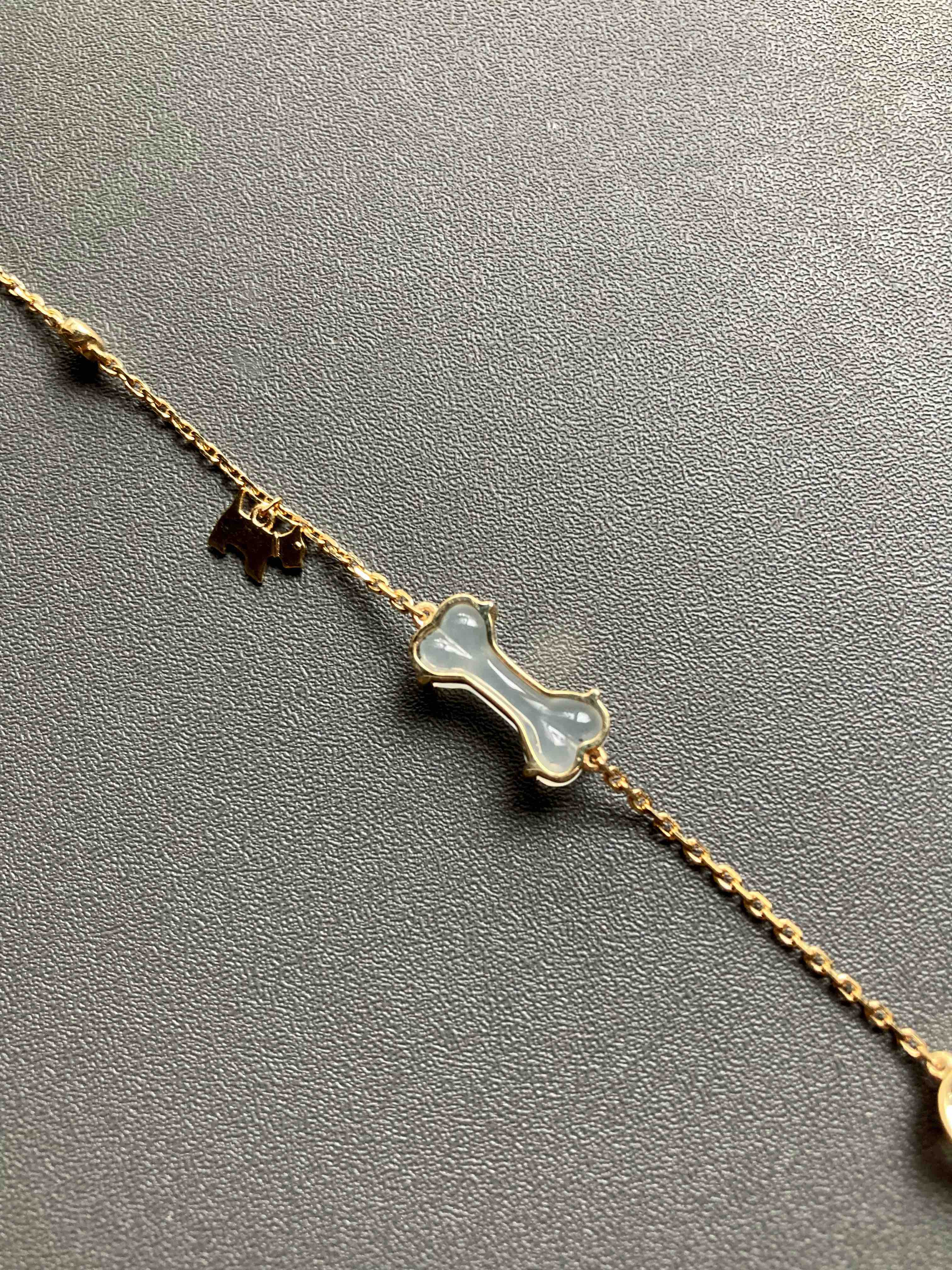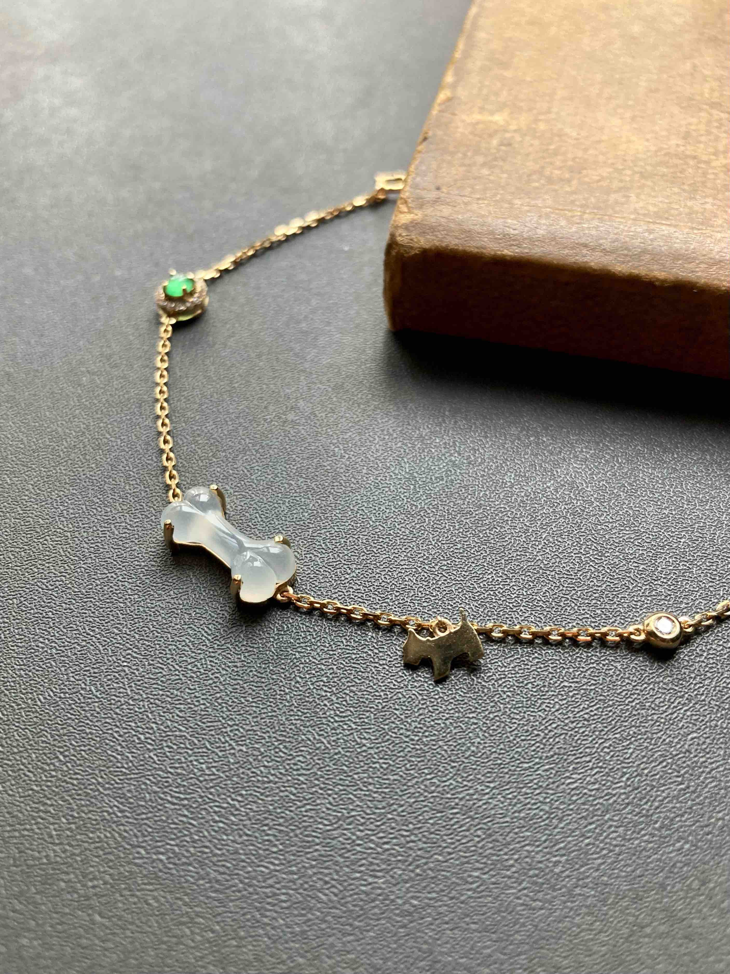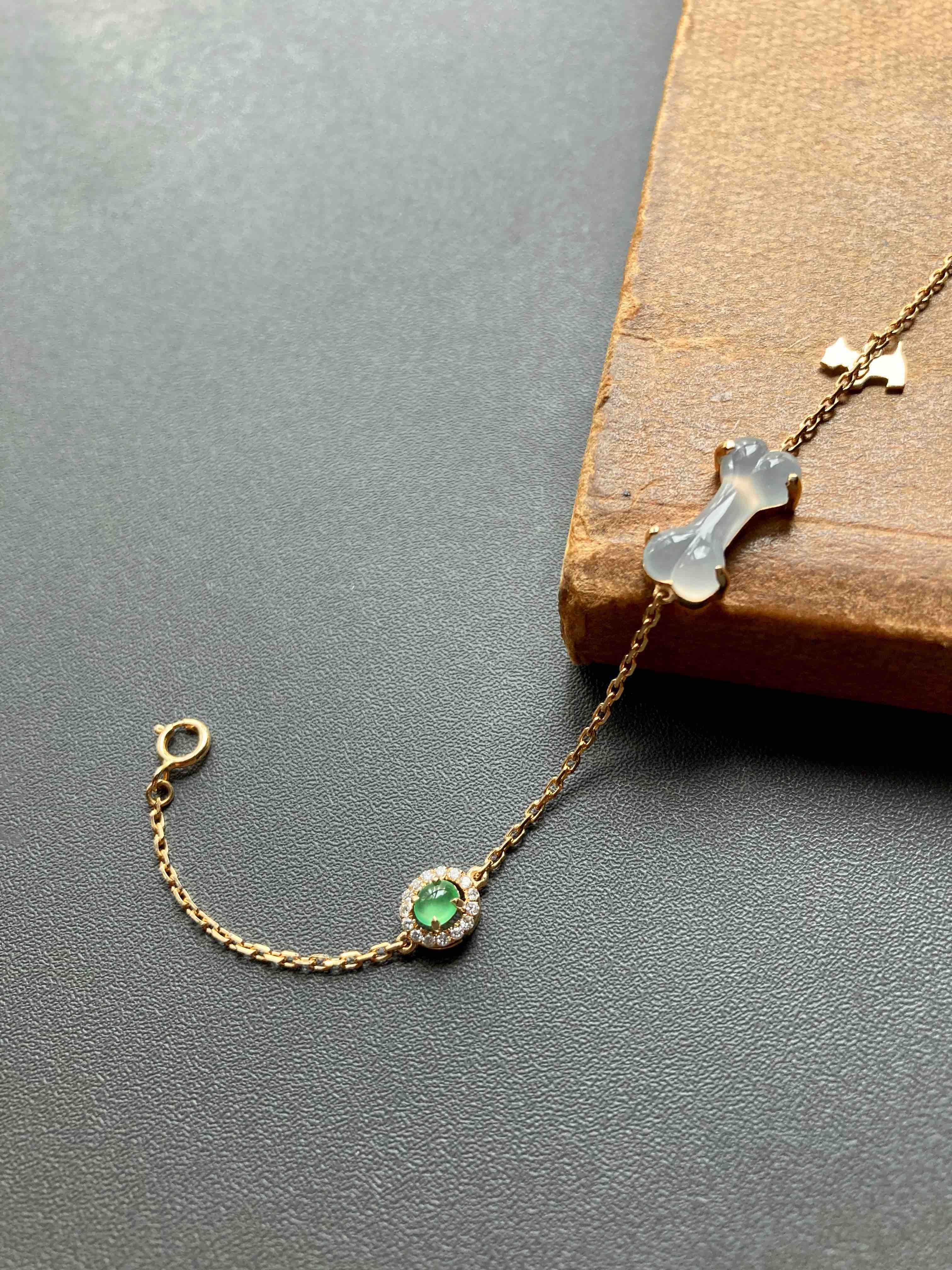 冰种翡翠狗狗手链18k黄金钻石镶嵌