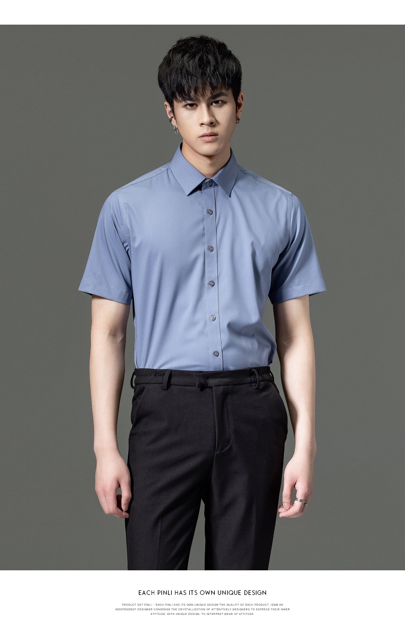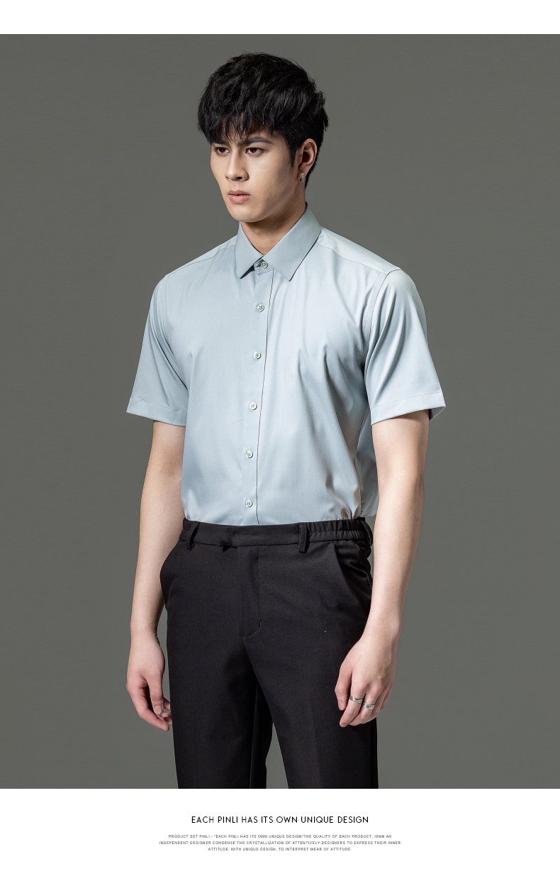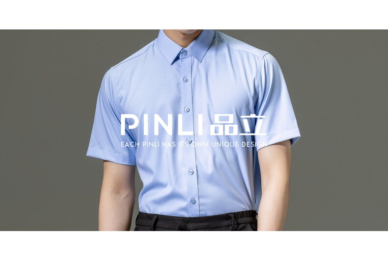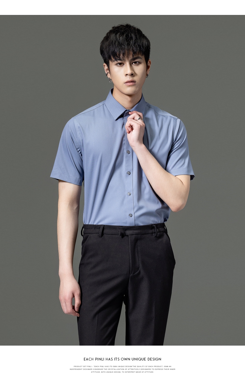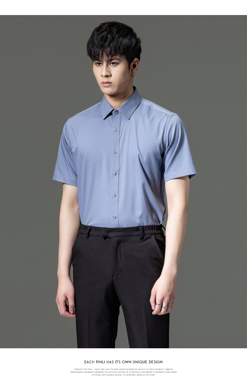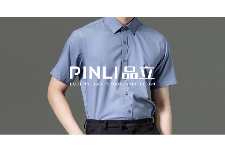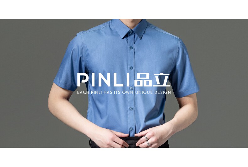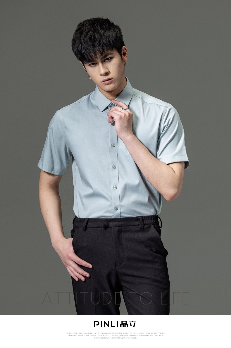 PINLI品立2023夏季新款纯色商务短袖衬衫竹纤维男士上衣休闲衬衣GD232113293——GDV232113293