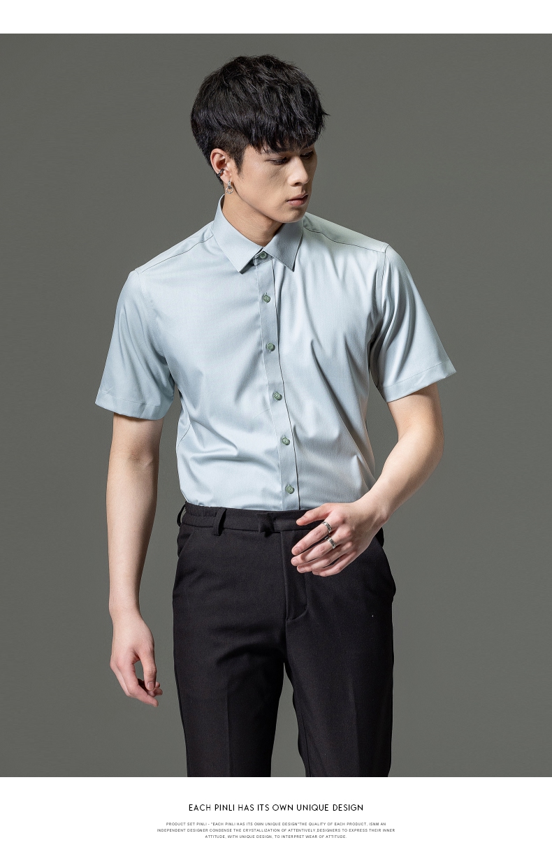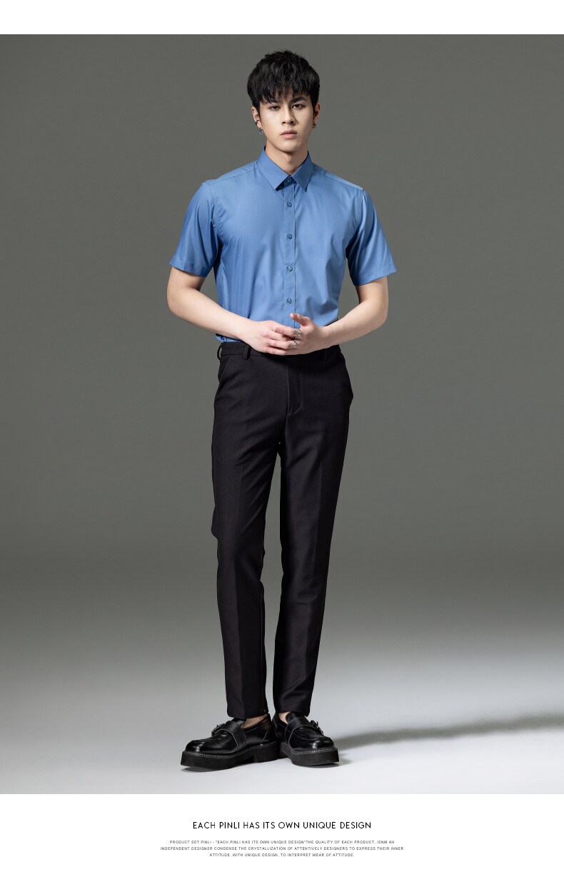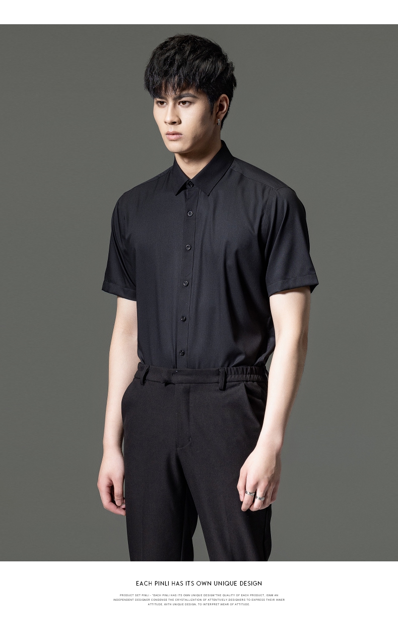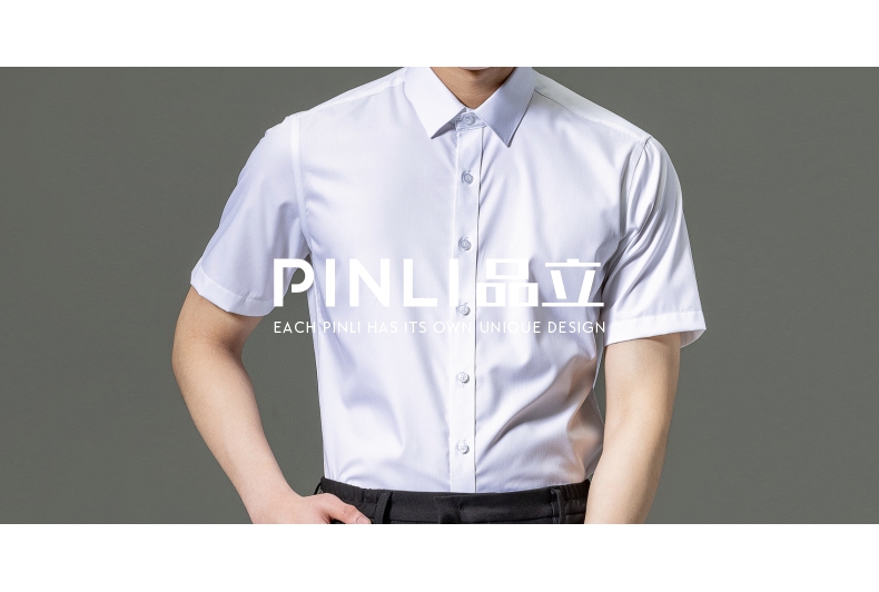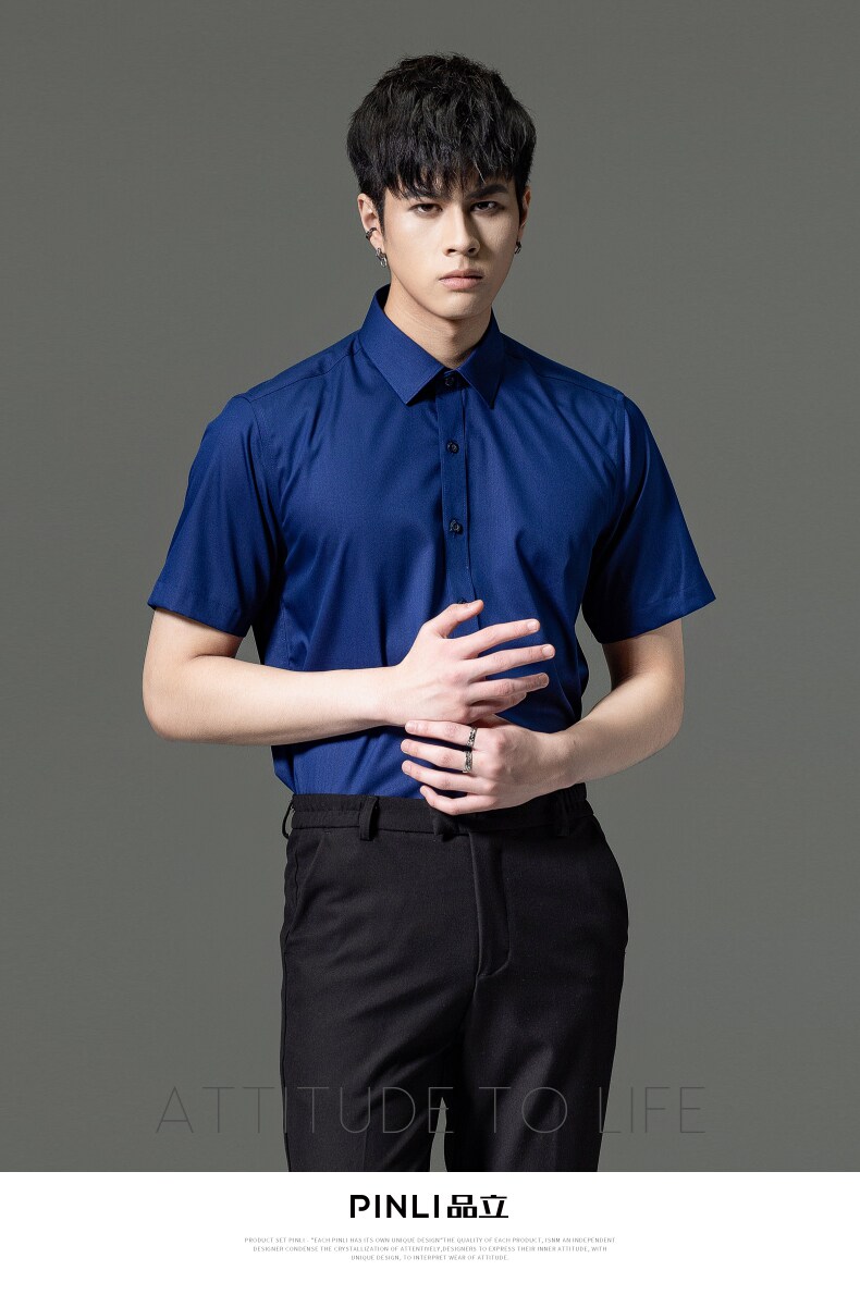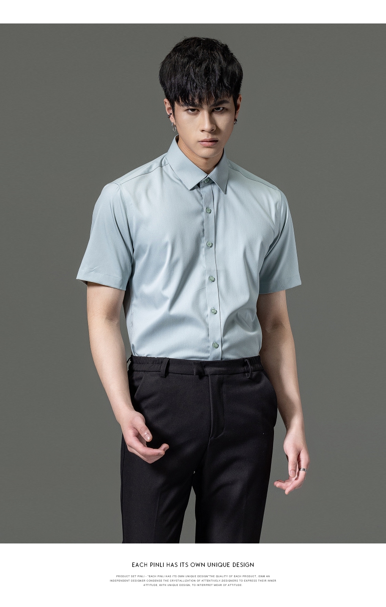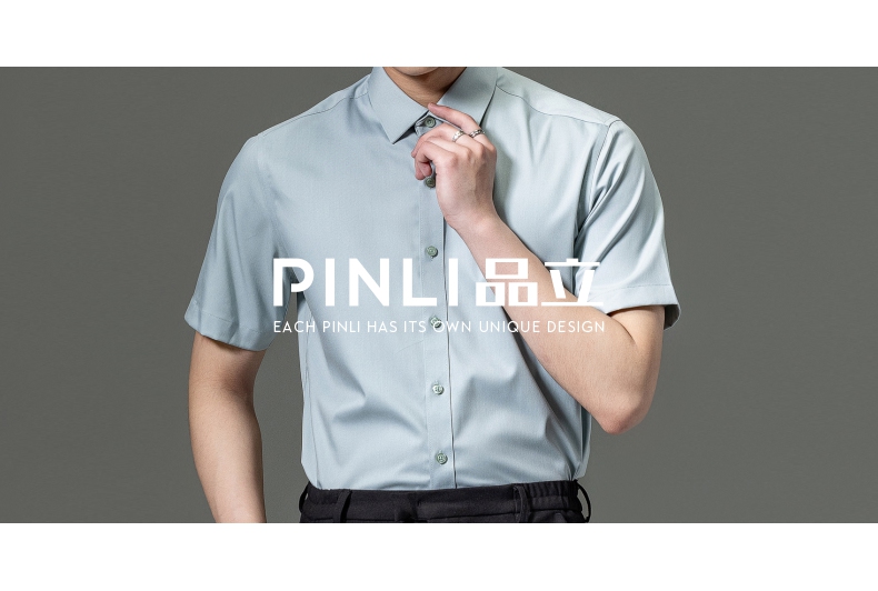 PINLI品立2023夏季新款纯色商务短袖衬衫竹纤维男士上衣休闲衬衣GD232113293——GDV232113293