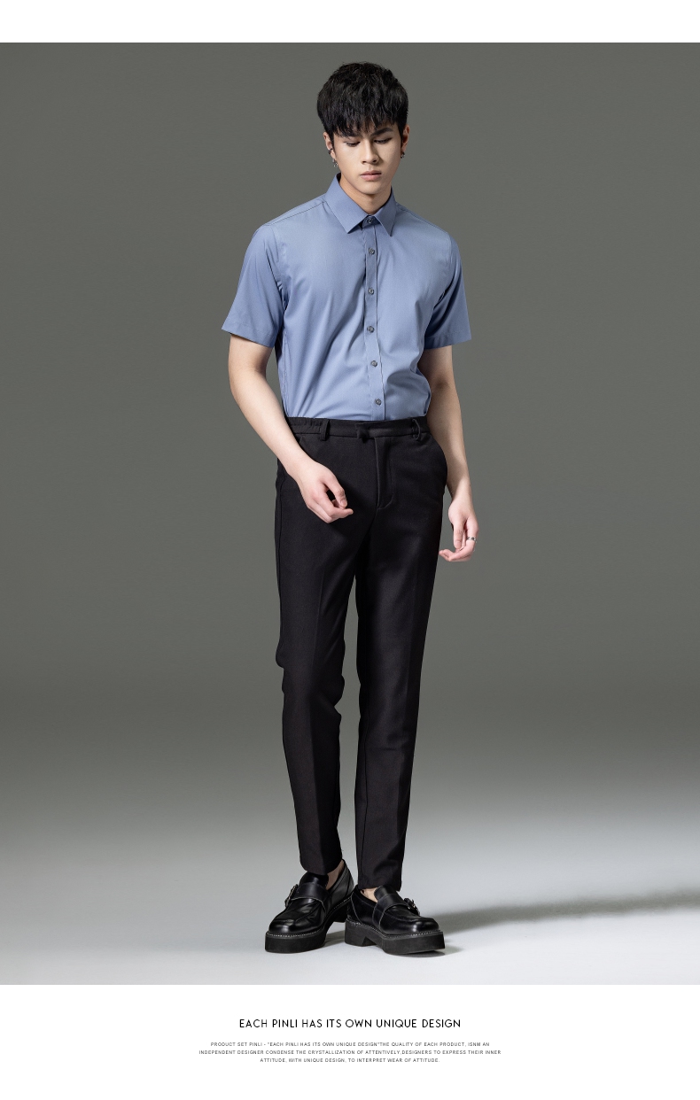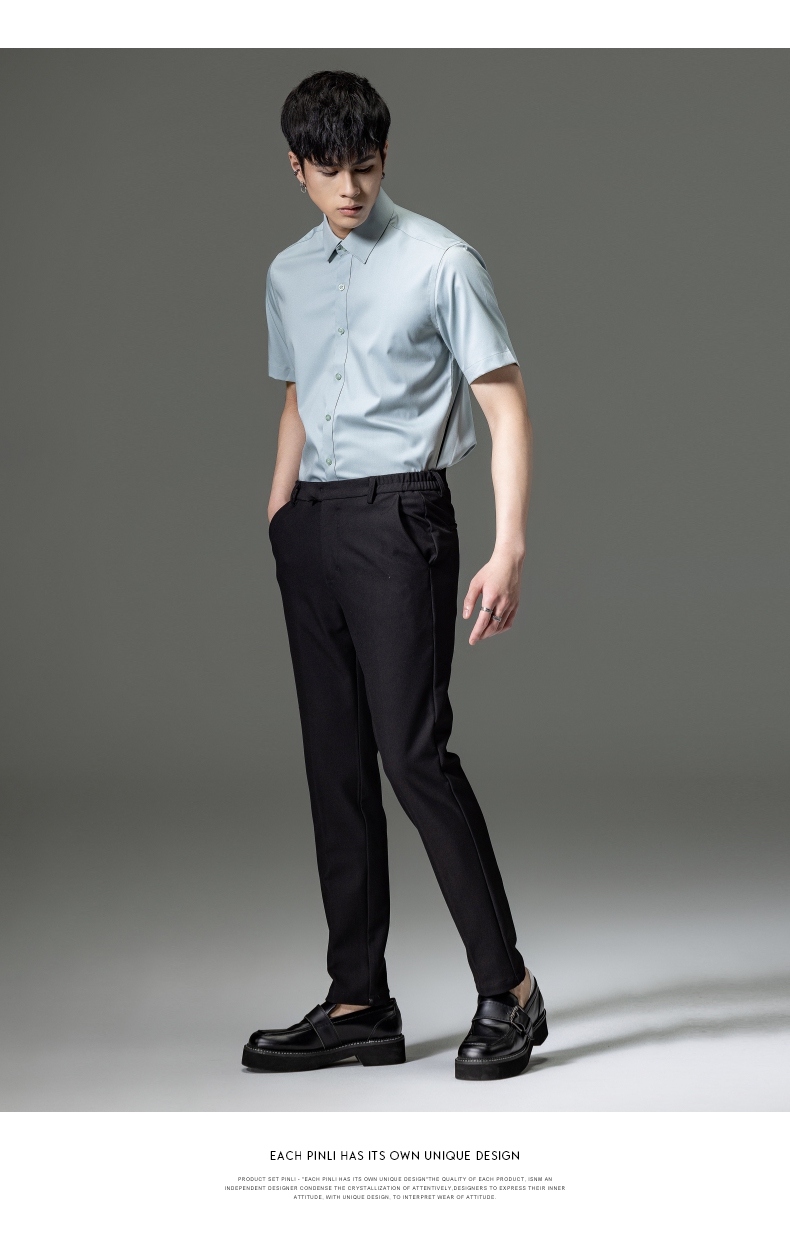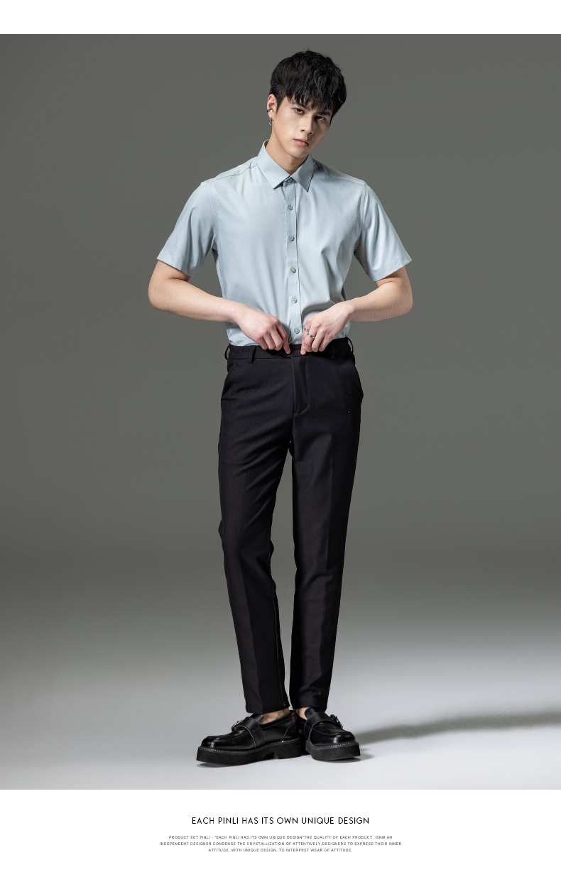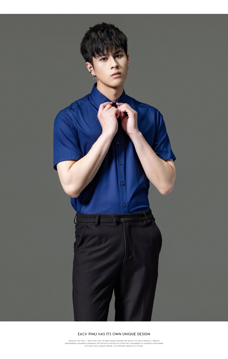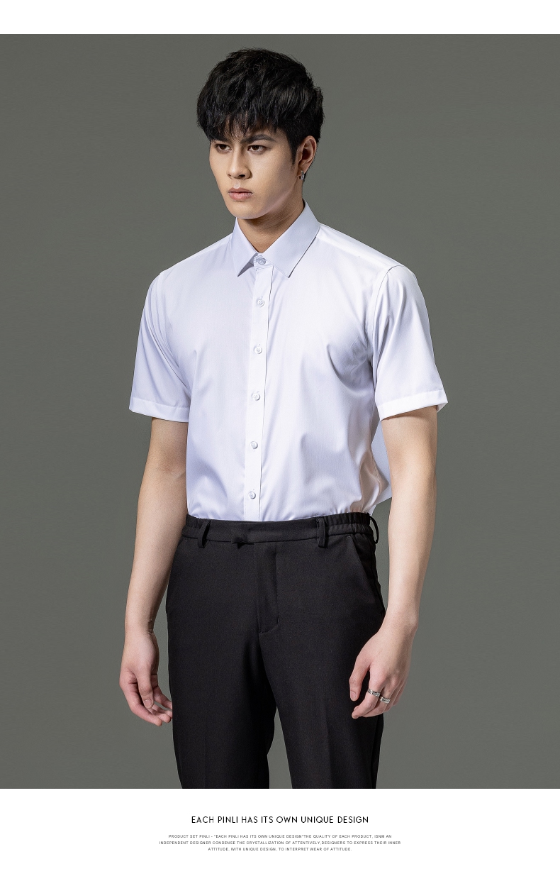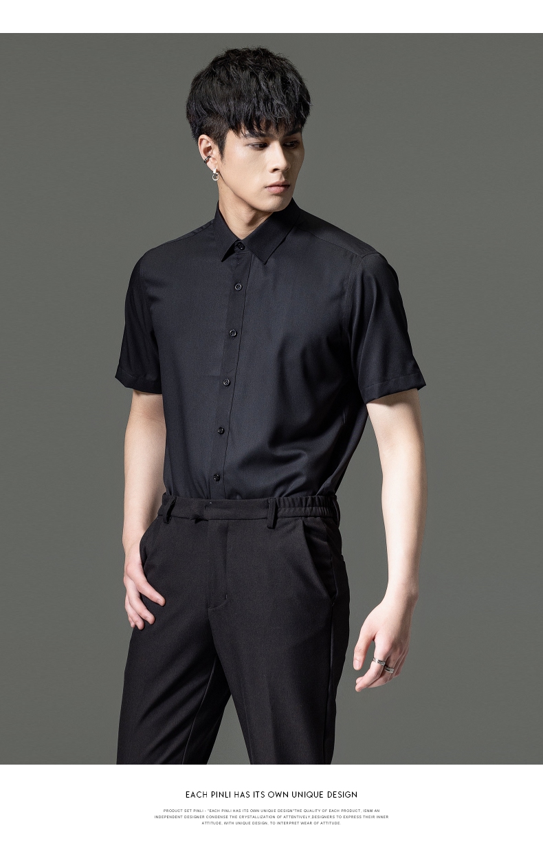 PINLI品立2023夏季新款纯色商务短袖衬衫竹纤维男士上衣休闲衬衣GD232113293——GDV232113293