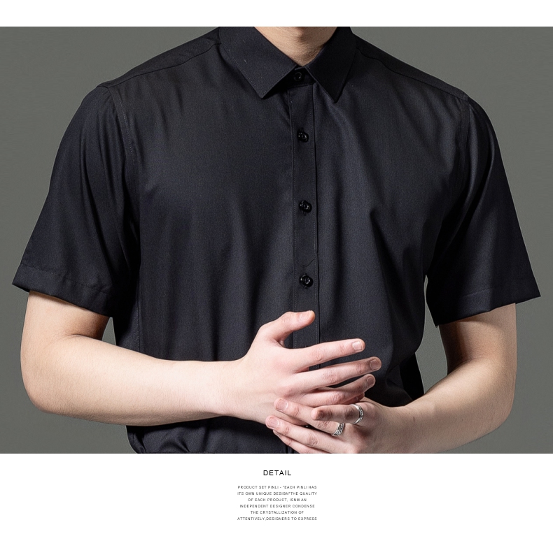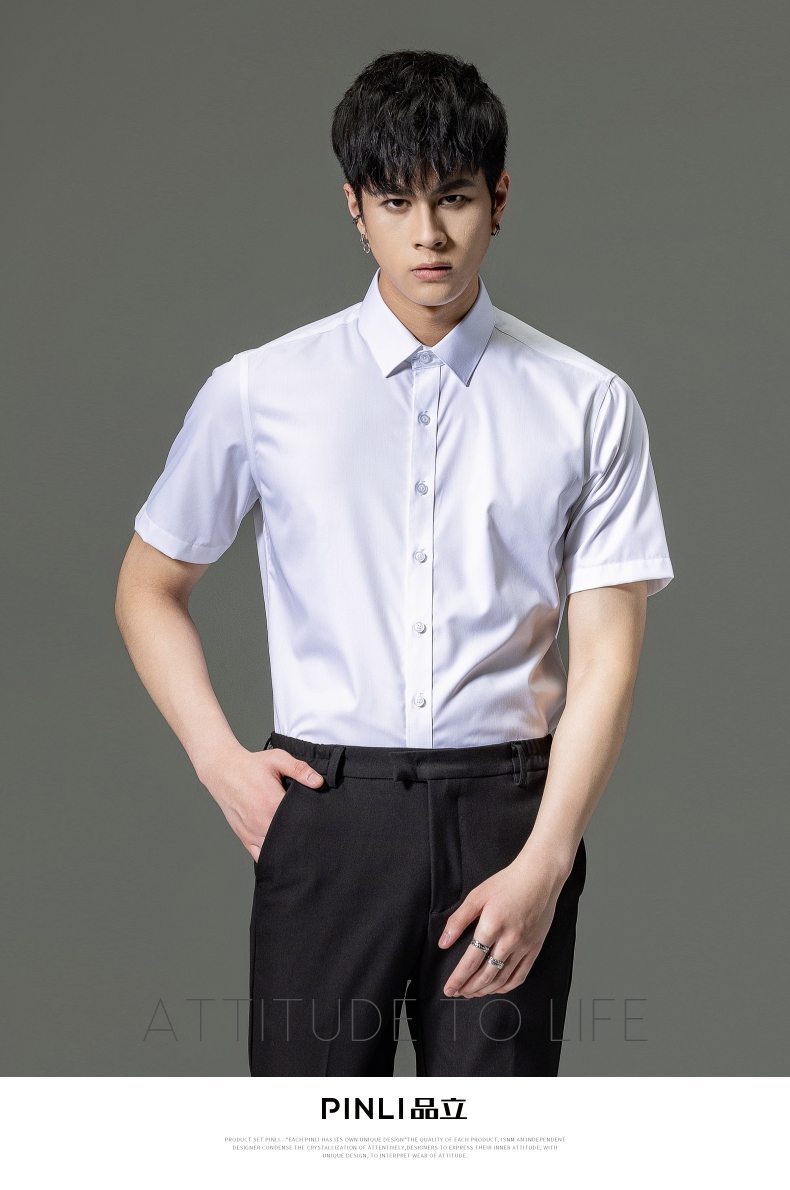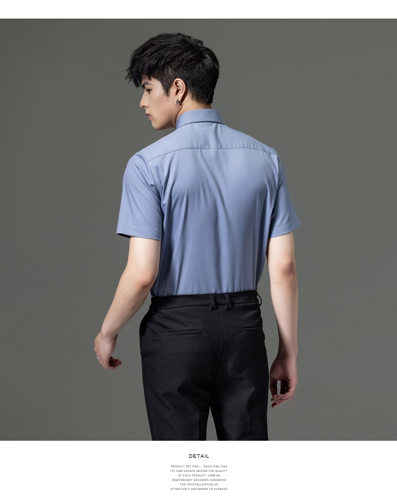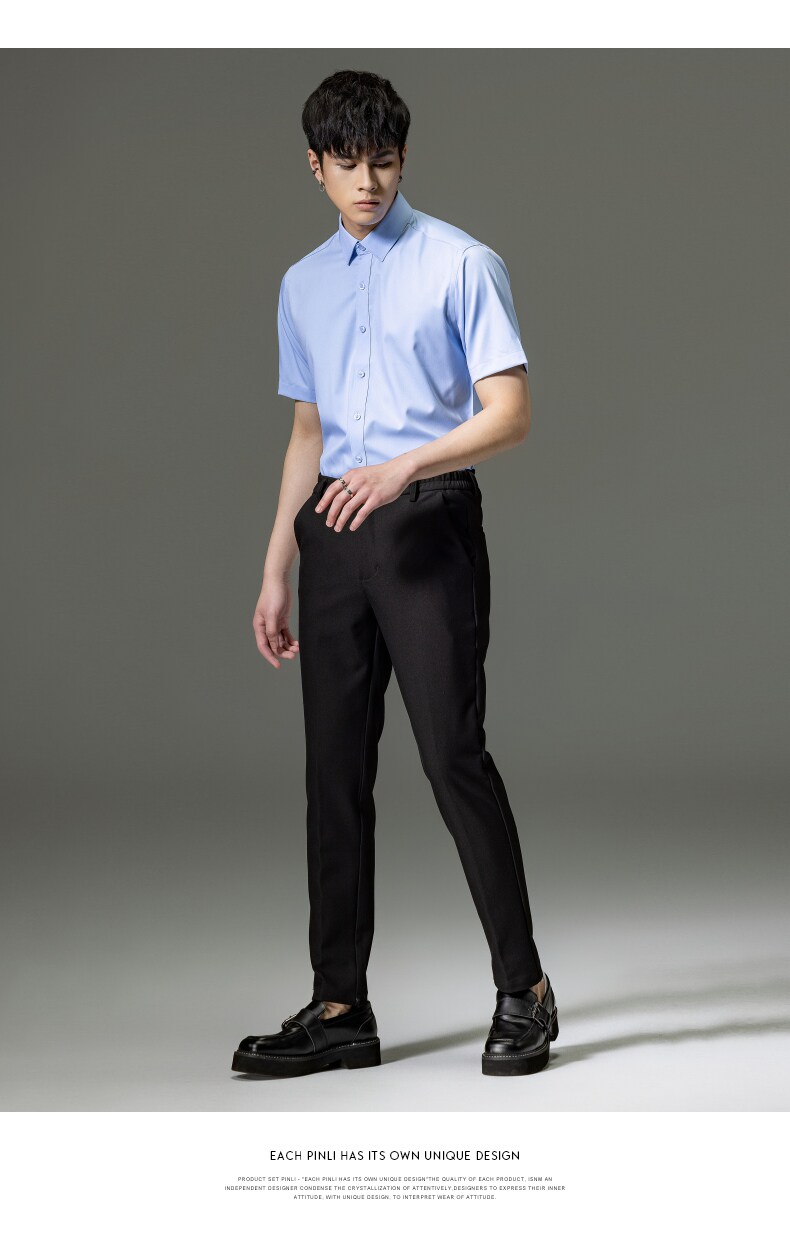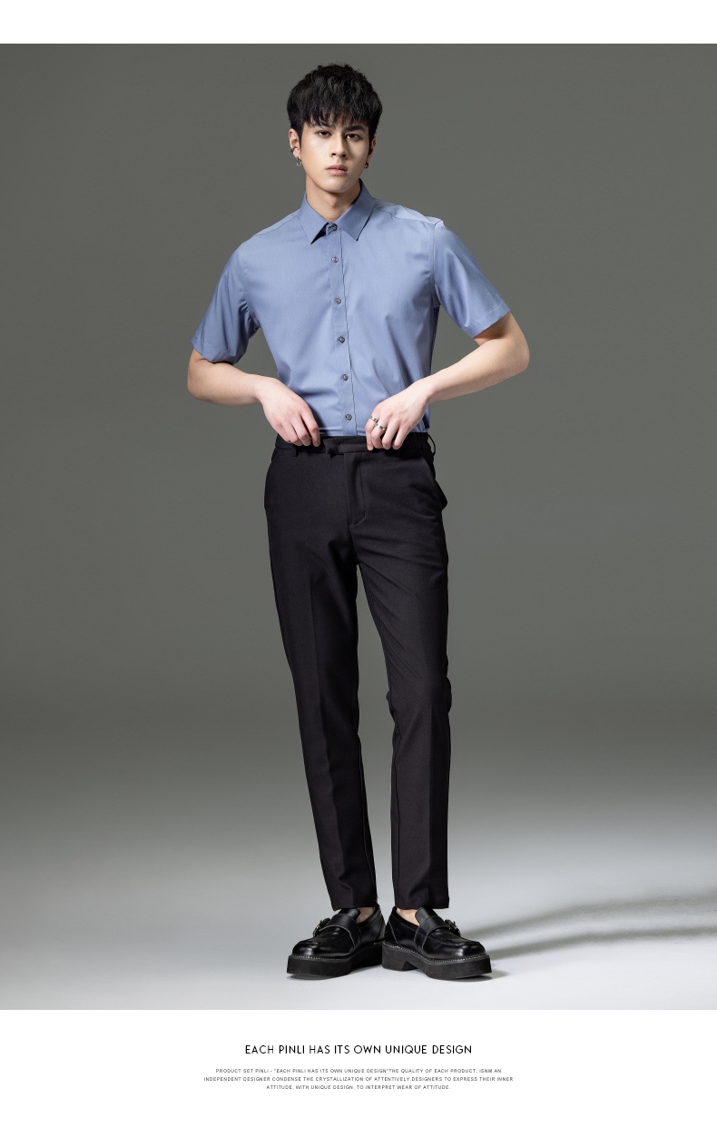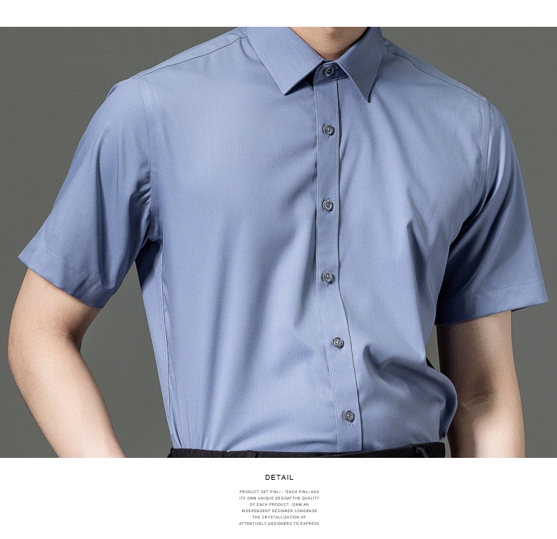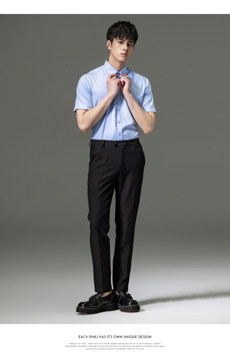 PINLI品立2023夏季新款纯色商务短袖衬衫竹纤维男士上衣休闲衬衣GD232113293——GDV232113293