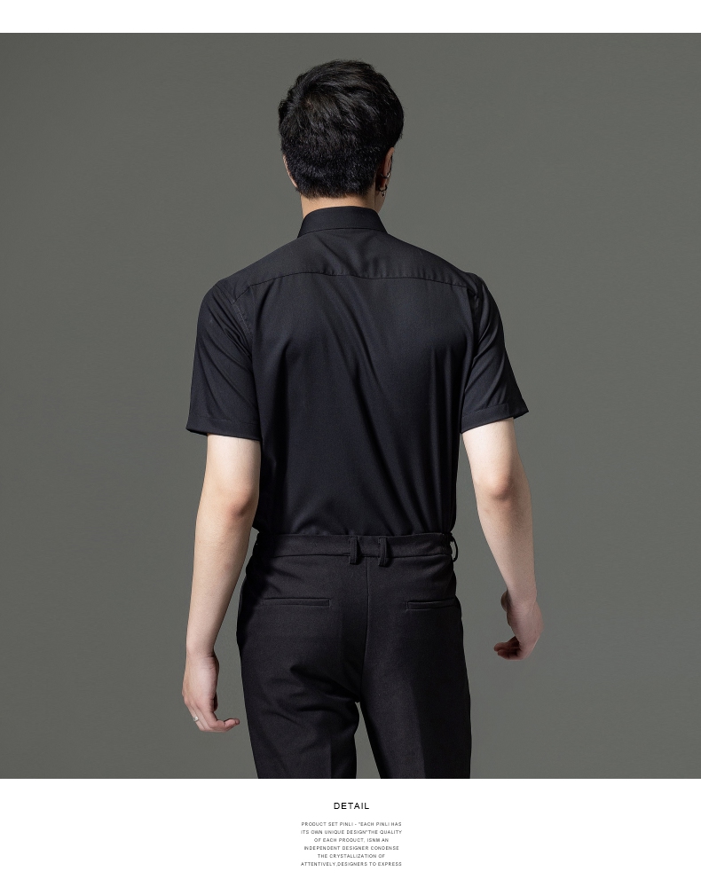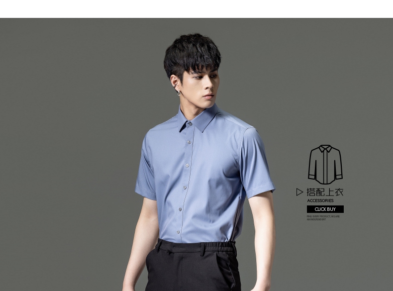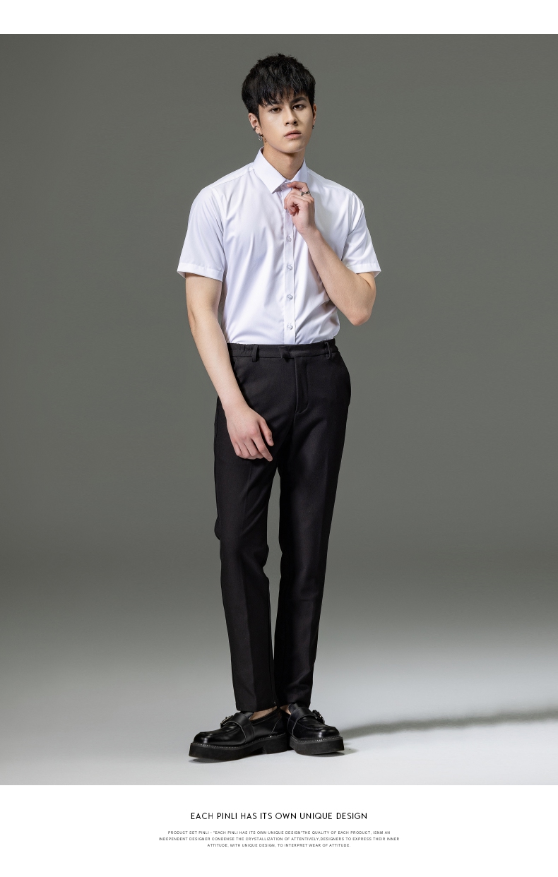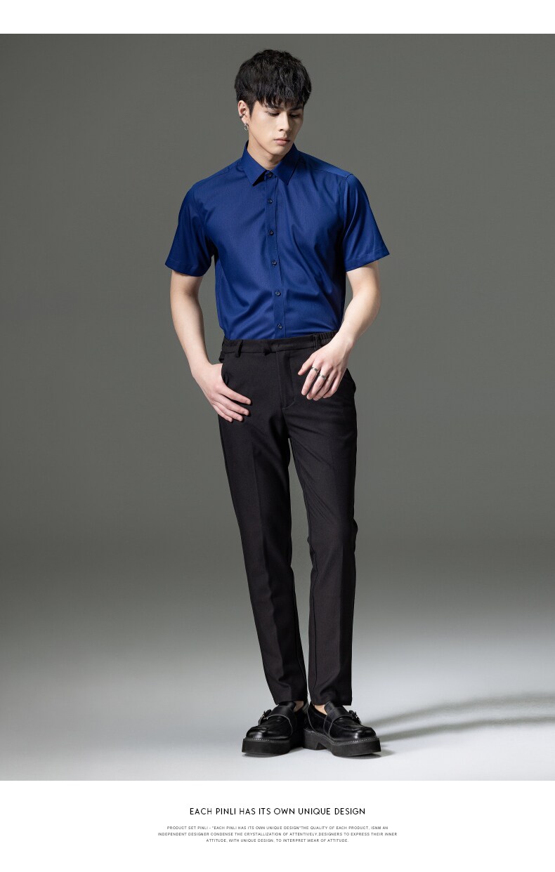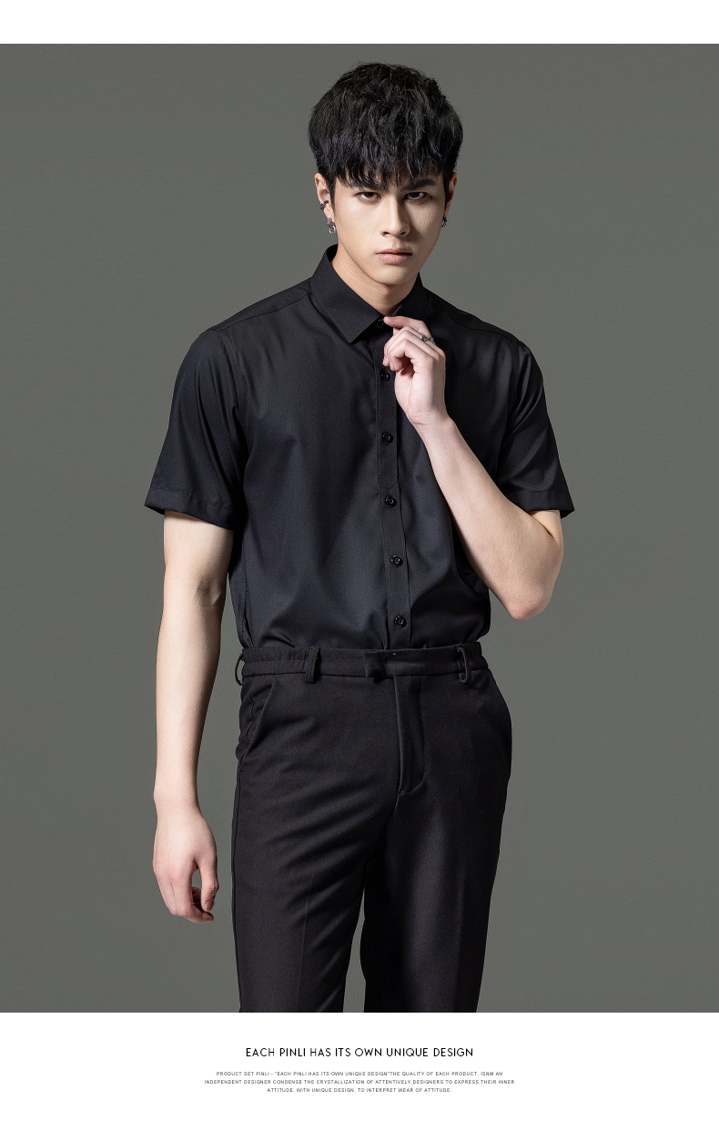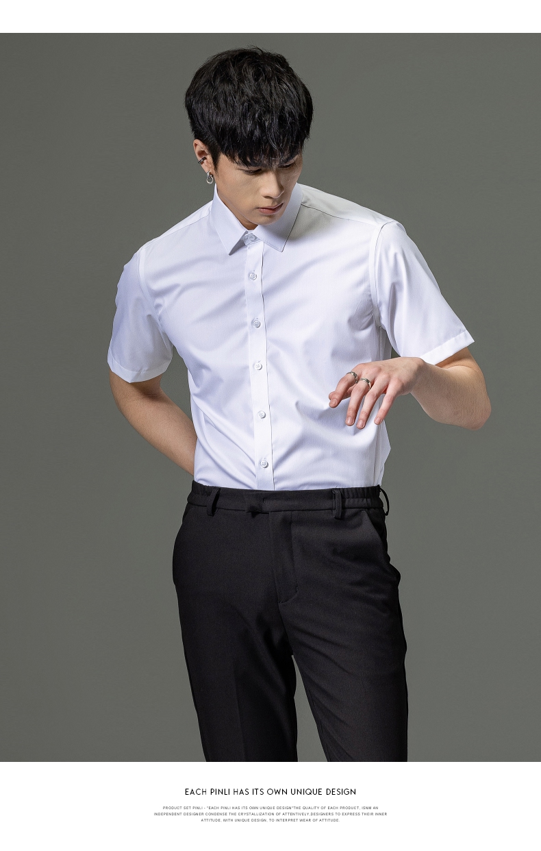 PINLI品立2023夏季新款纯色商务短袖衬衫竹纤维男士上衣休闲衬衣GD232113293——GDV232113293