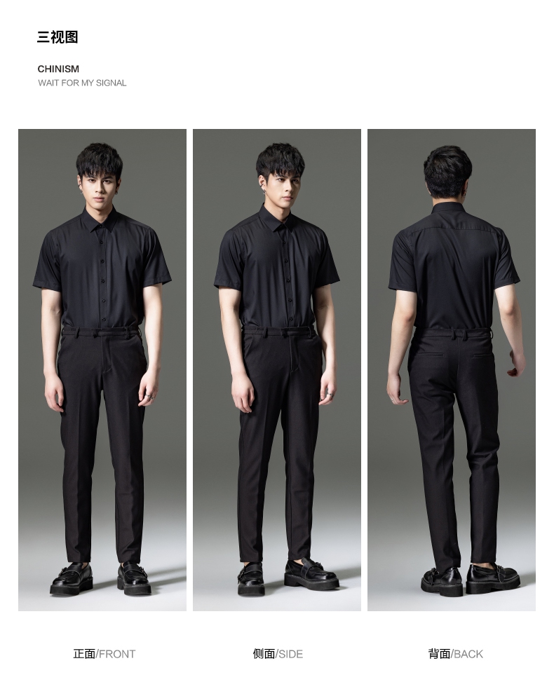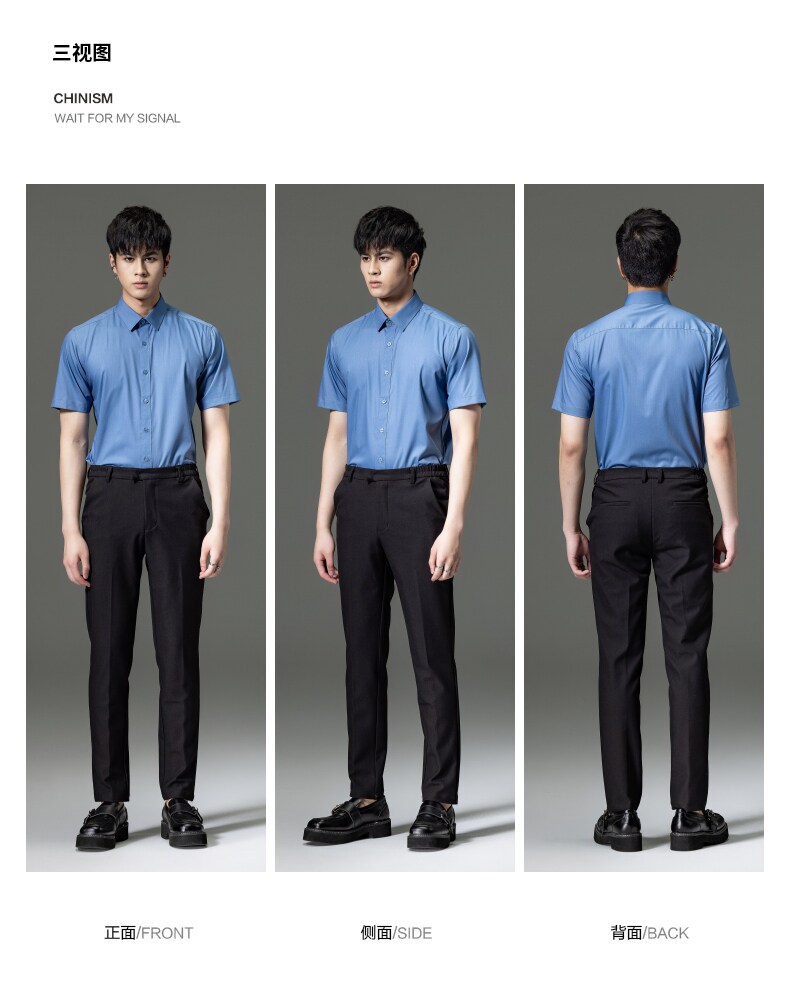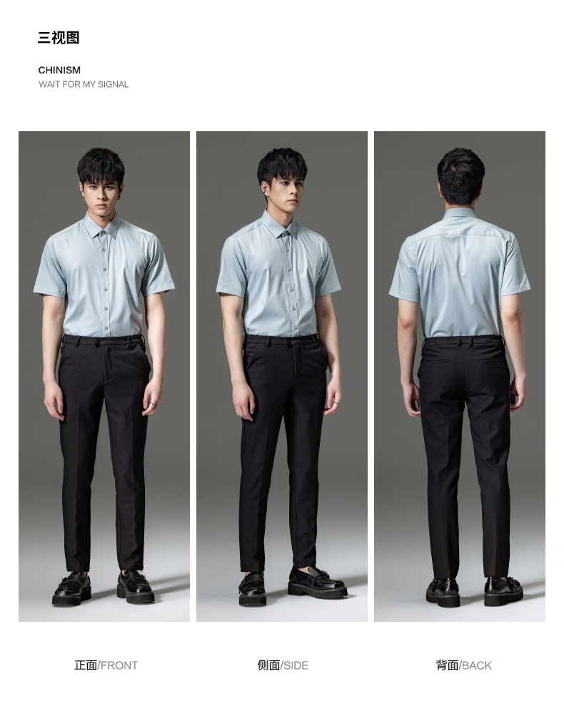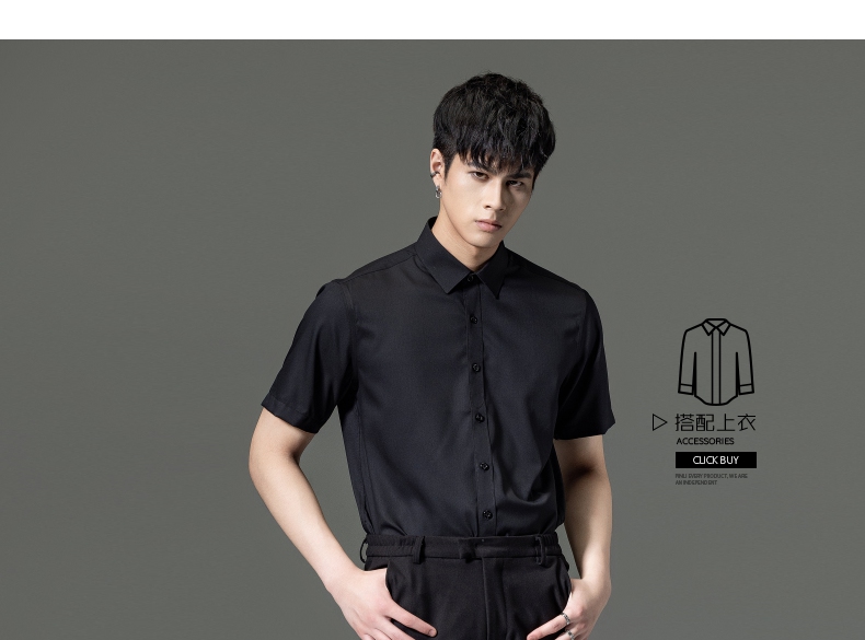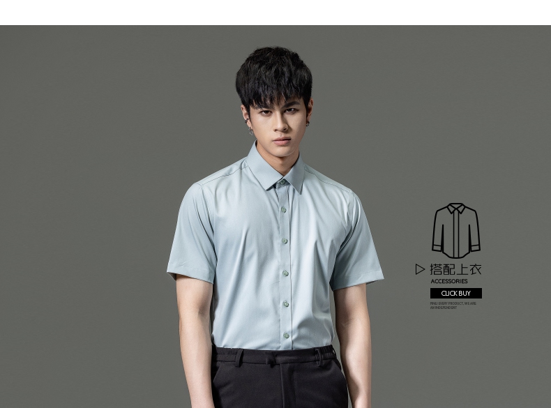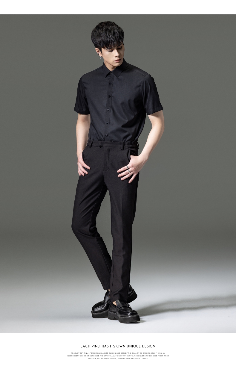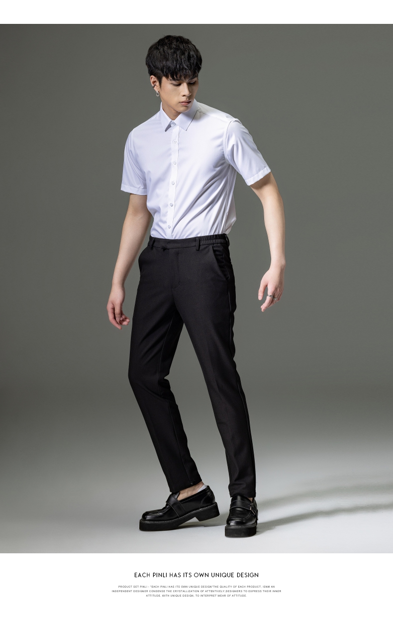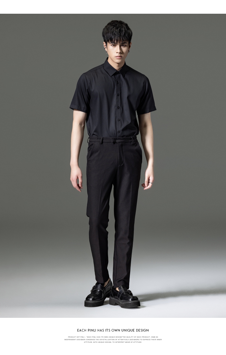 PINLI品立2023夏季新款纯色商务短袖衬衫竹纤维男士上衣休闲衬衣GD232113293——GDV232113293