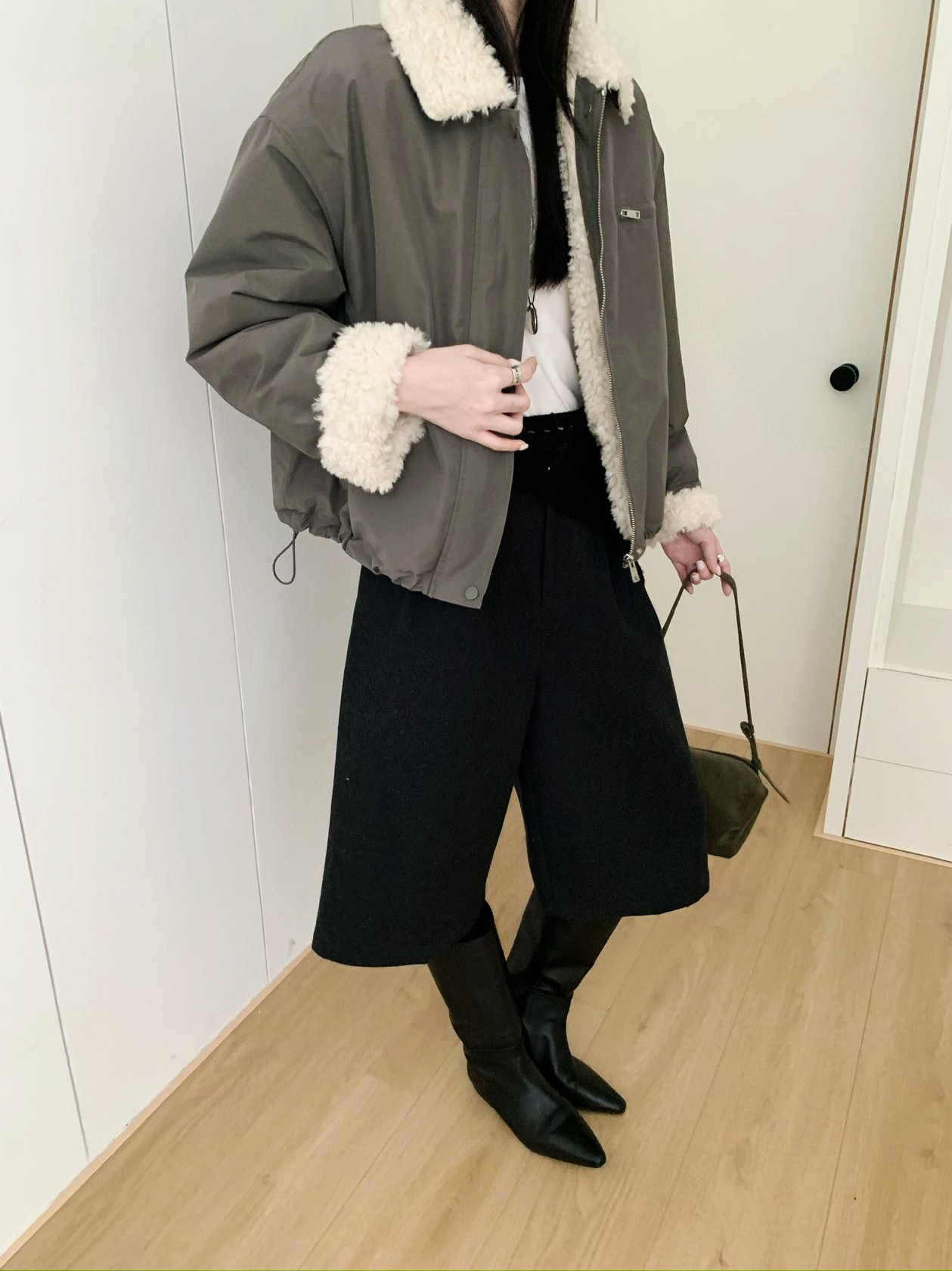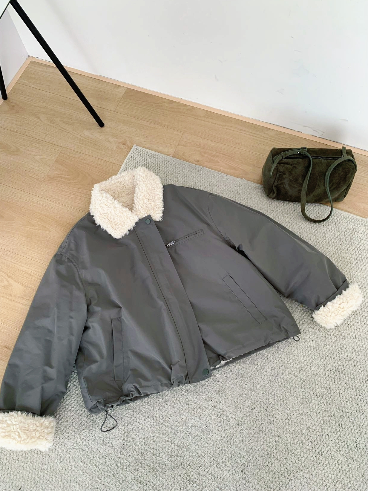 [特价]韩系翻领复古羊羔毛短款夹克外套2505027