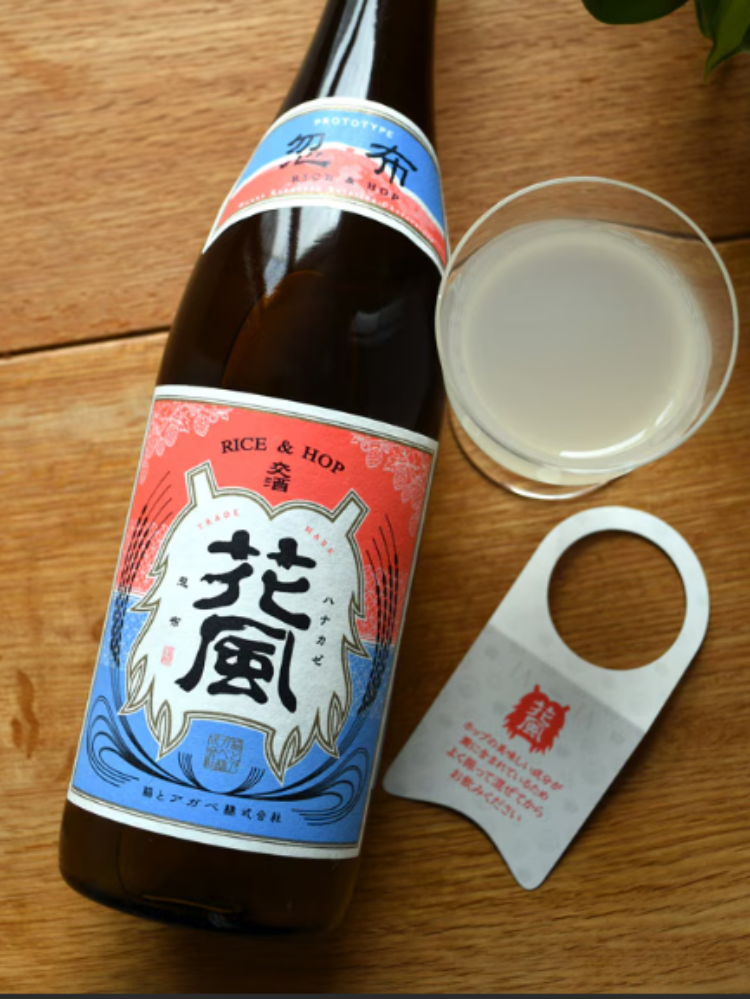 酒名中的「花」则取自啤酒花,「风」则代表所在男鹿地区的强劲海风,酒标设计也是请新政阳乃鸟的设计师绘制,底下白色图腾寓意“驱逐厄运邪祟,保佑平安健康”。