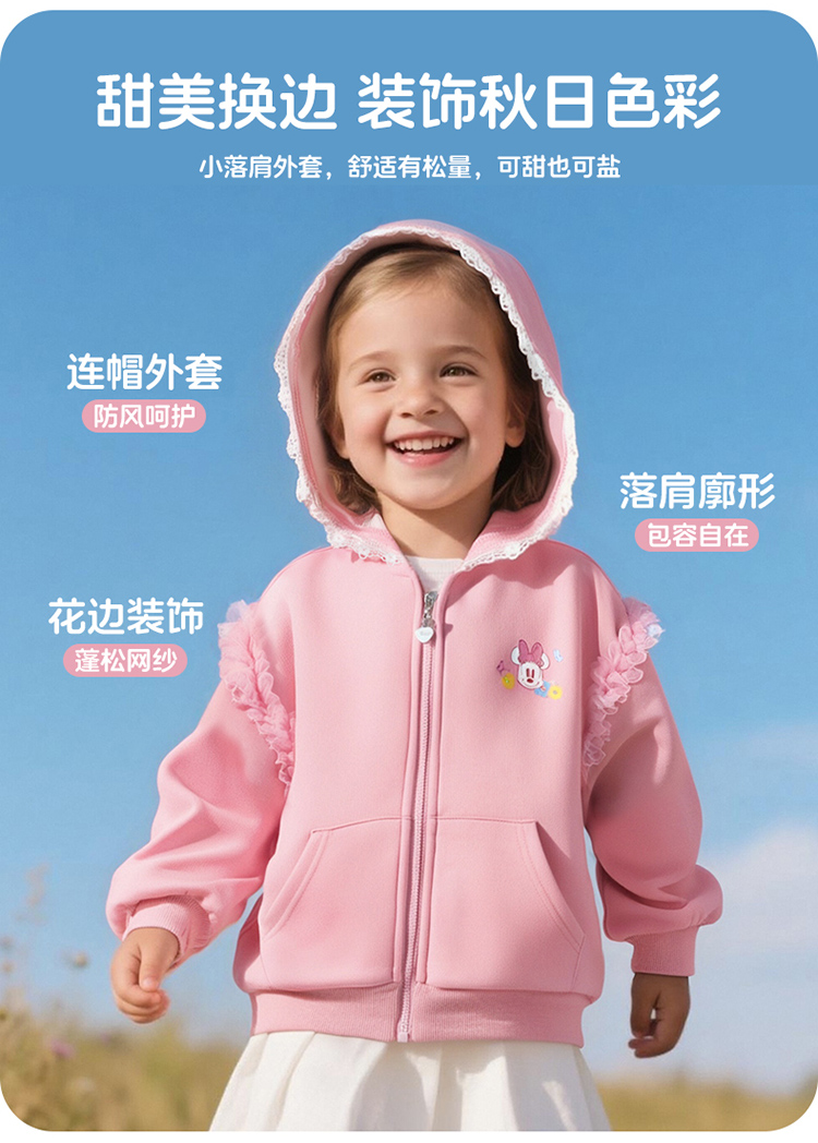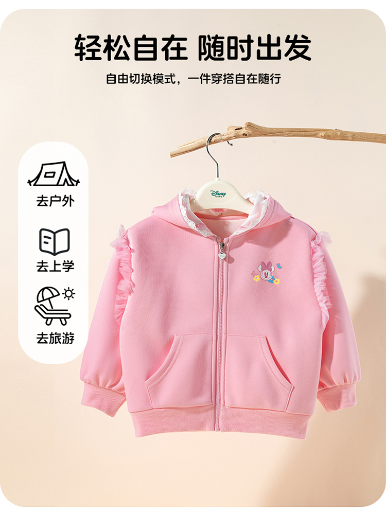 迪士尼宝宝童装秋季新款女童时尚休闲卡通舒适百搭外套ZD3ES027