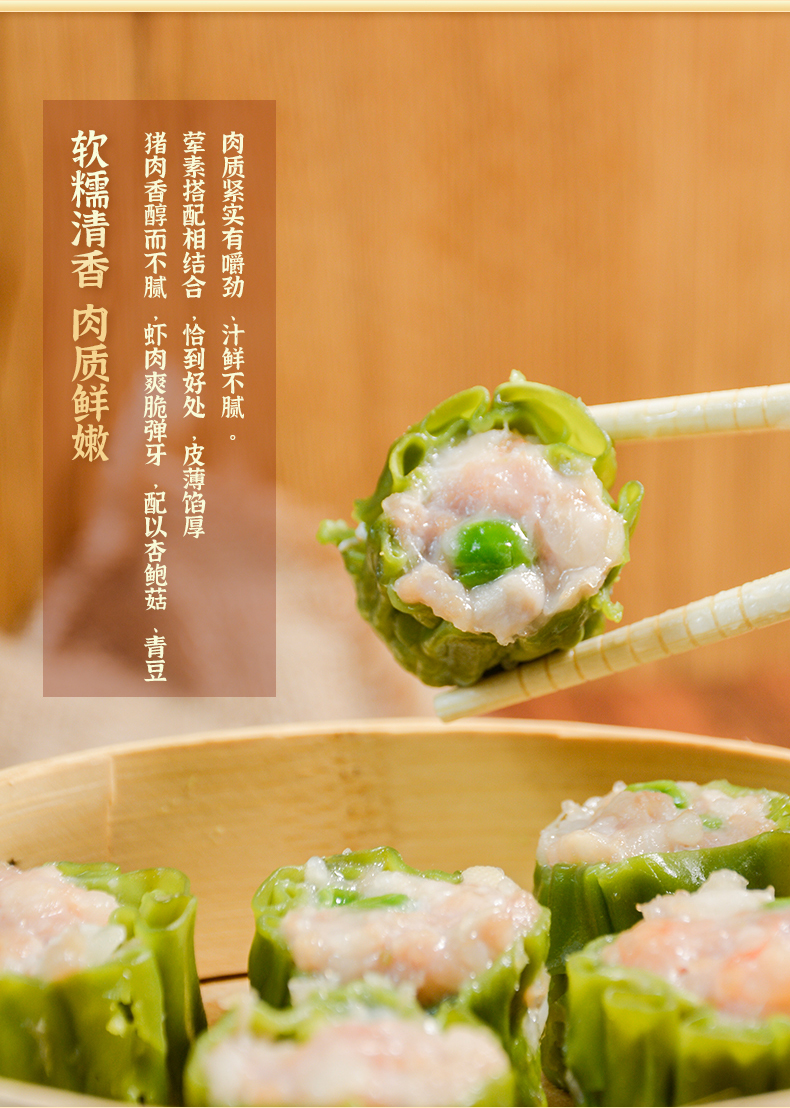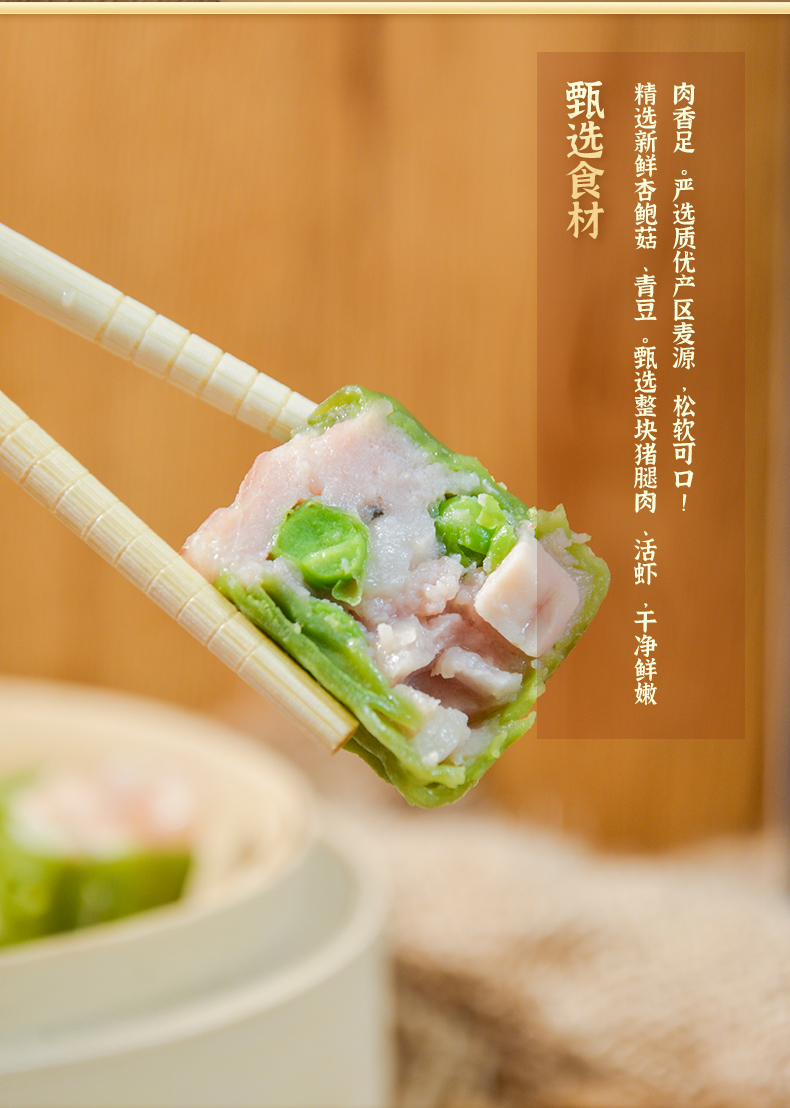 品名:虾仁青豆杏鲍菇干蒸烧麦
