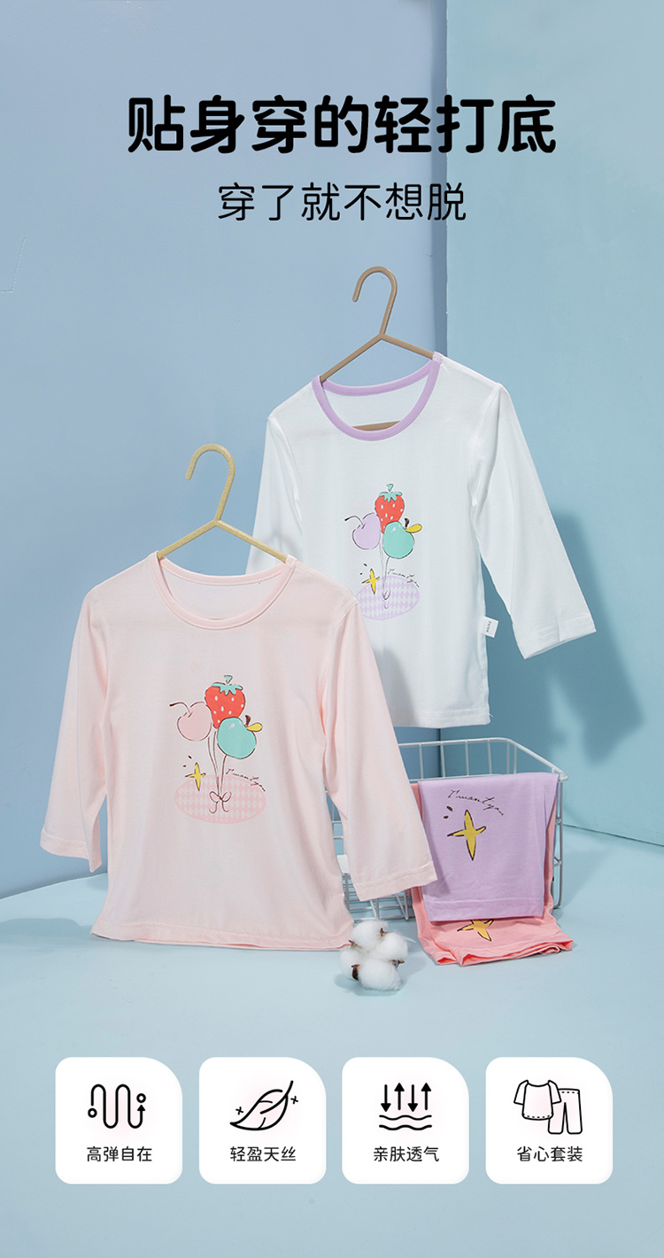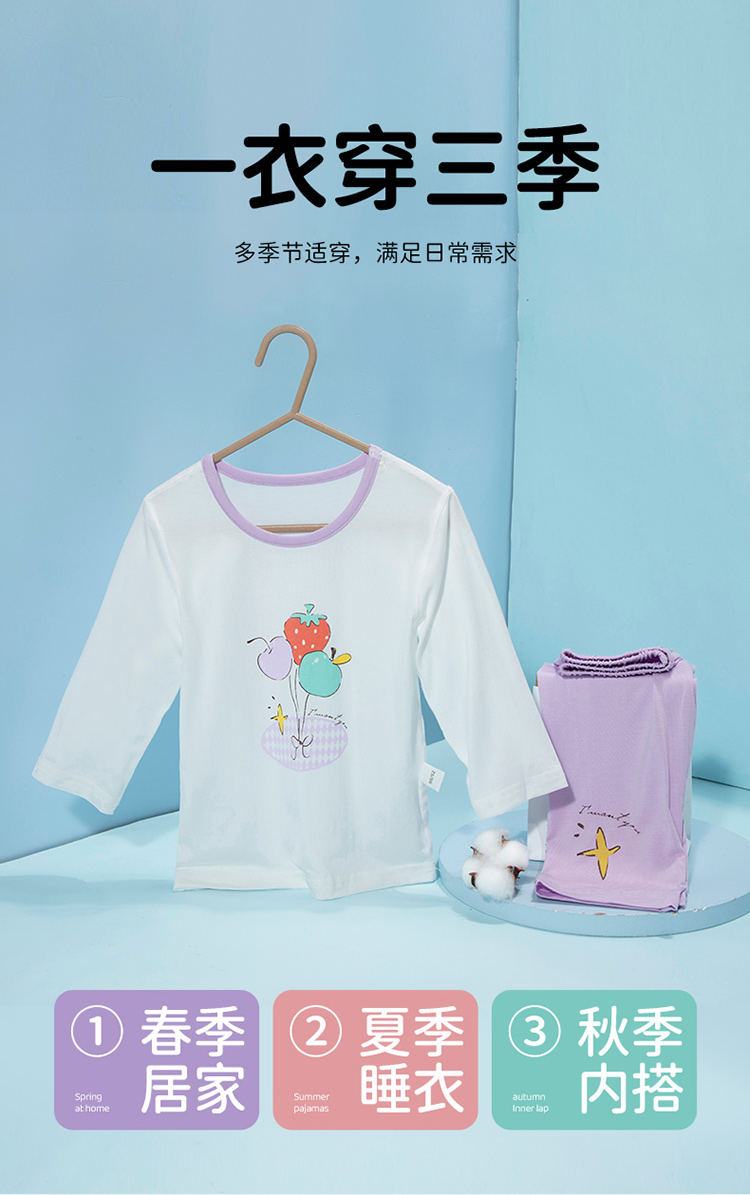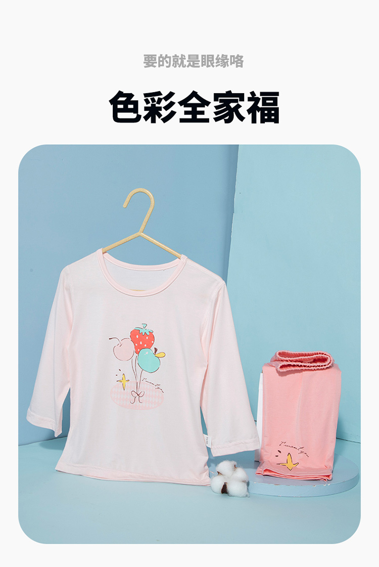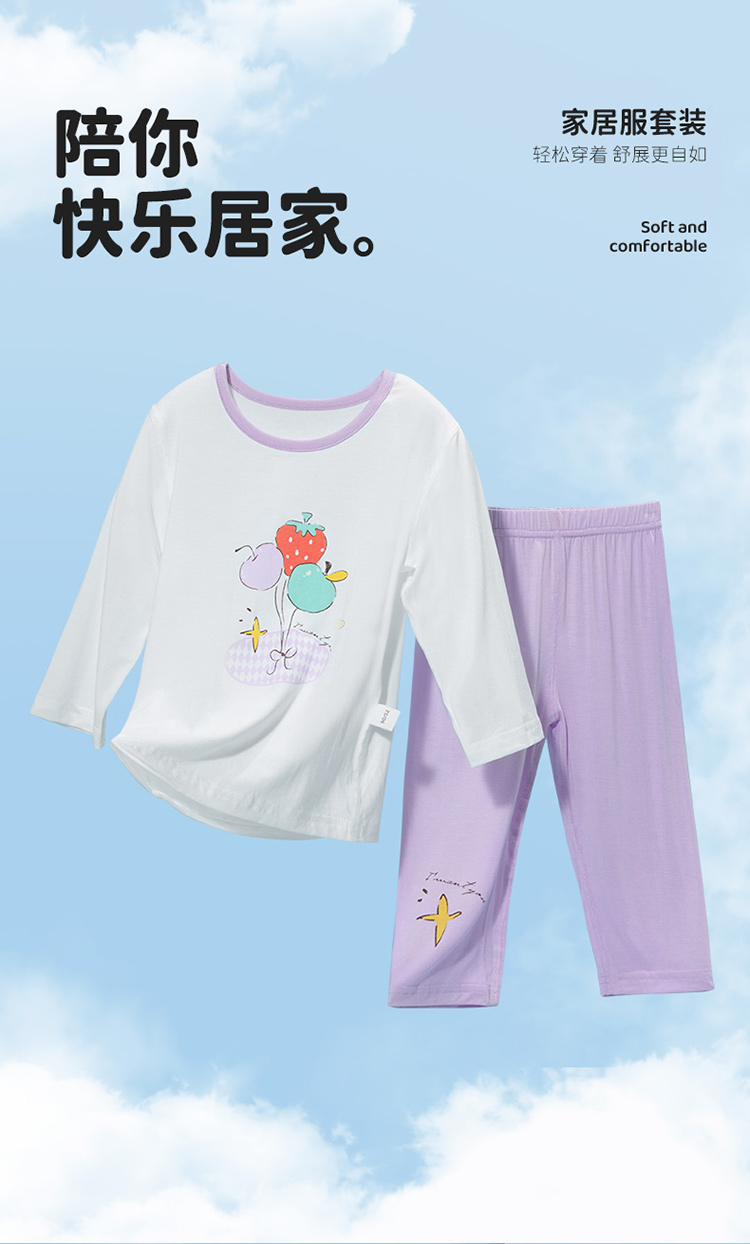 贝贝怡童装儿童凉感睡衣女童2024新款夏季薄款家居服长袖秋衣套装ZB2DT016