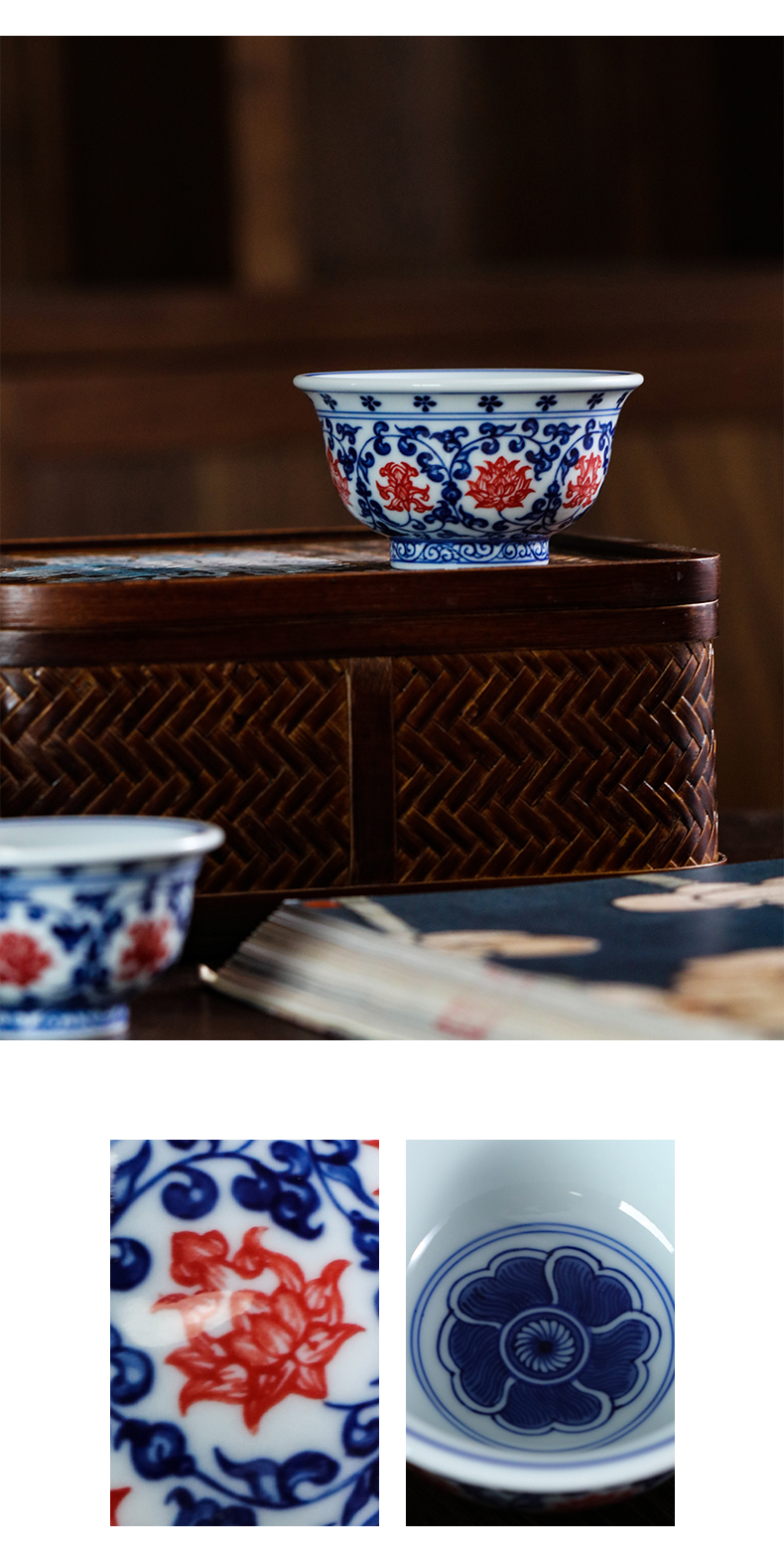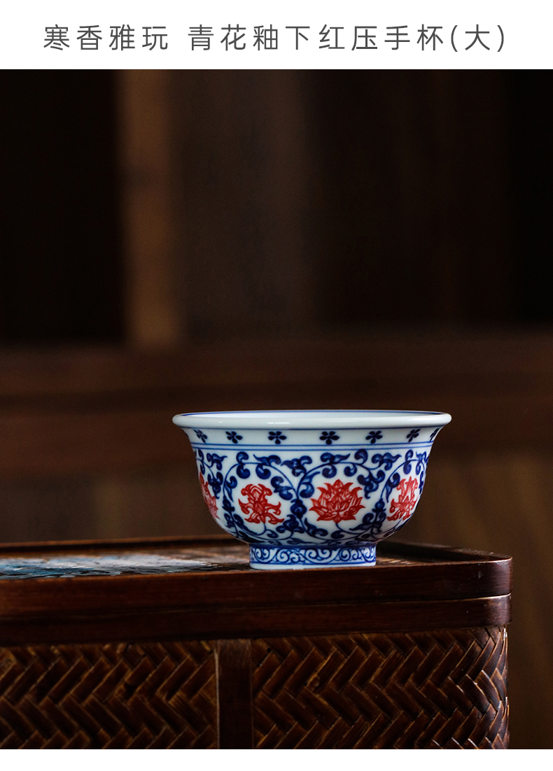 问鼎寒香雅玩青花釉下红压手杯(大)