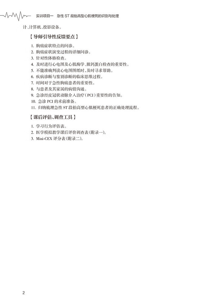 本书以心内科临床教学中心内科急症的识别和处理的为重点,以《住院医师规范化培训大纲》及大纲指定教材《实用内科学》为依据,密切结合临床实际,通过集体备课、分组编写、集中讨论、专家审核等方式设计编写。 本书共包括急性胸痛、恶性心律失常、急性房颤、高血压急症、心包填塞、急性左心衰的病情识别与处理等八个临床模拟案例,涵盖了心内科临床中常见的急危重症;每个案例包括教学目标、教学对象、教学方法、教学时长、学员知识储备、主要教学设备及物品、导师引导讨论反馈要点、课后评估等内容,还配套设计了流程示意图、标准化病人剧本、学生学习行为评估表等,保证每次教学活动规范化、同质化,可作为各类医学院校附属医院及各教学医院教师参考用书。