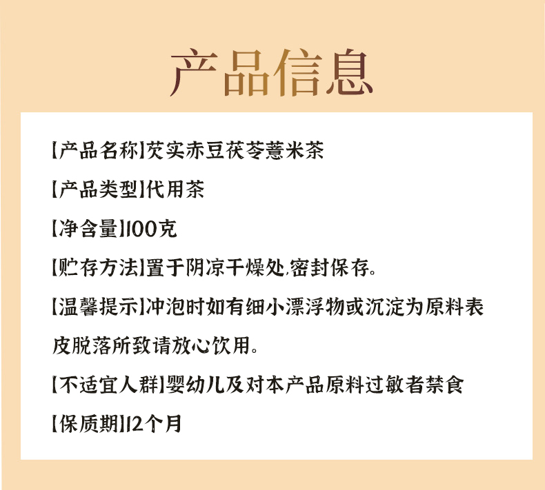 【品名】【超值4袋装】御良芙 芡实赤豆茯苓薏米茶 三蒸三晒一翻炒 100g*4袋 【规格】100g*4袋 【产地】国内 【保质期】12个月 【发货包装】独立包装 【发货地】安徽 【发货快递】普通快递随机发 【不发货区域】新疆、西藏、港澳台 【发货时效】48-72小时,周末节假日顺延 |