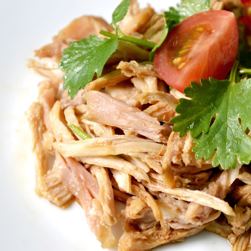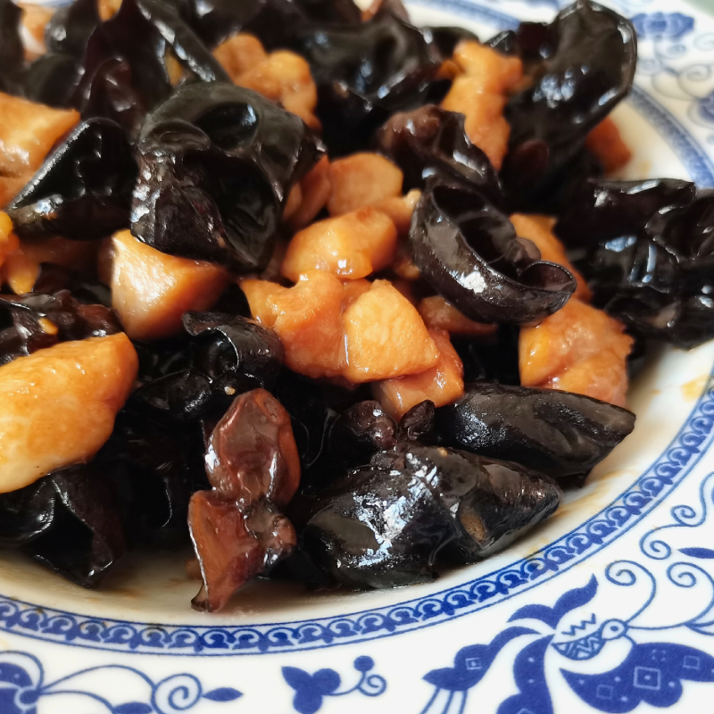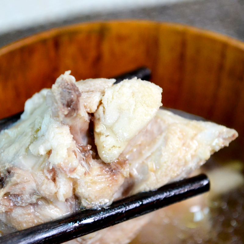 尝一口肉,鸡肉肉质韧滑有弹性,紧而不柴,鲜香味美。