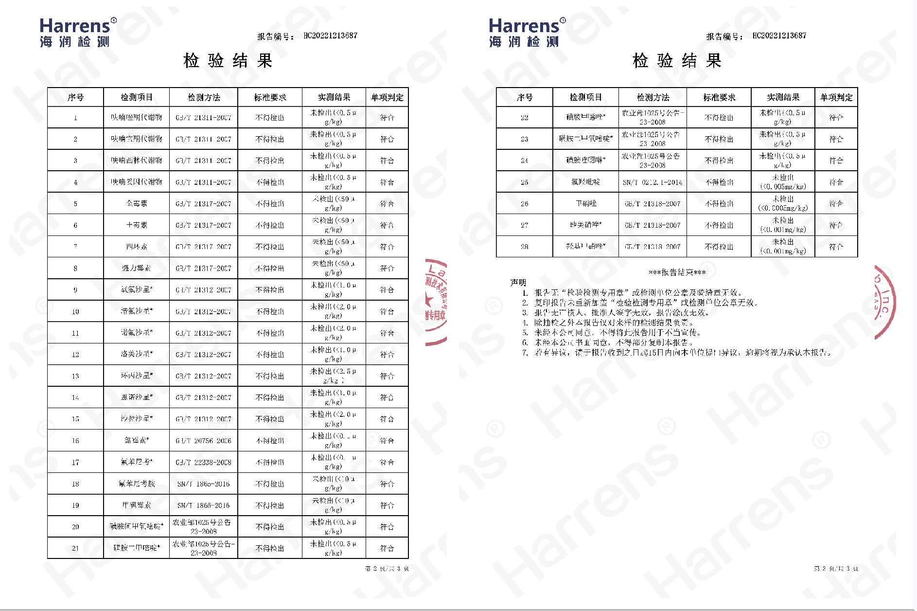 经第三方检测,28项常见兽药如硝基呋喃类、四环素类等均为未检出。