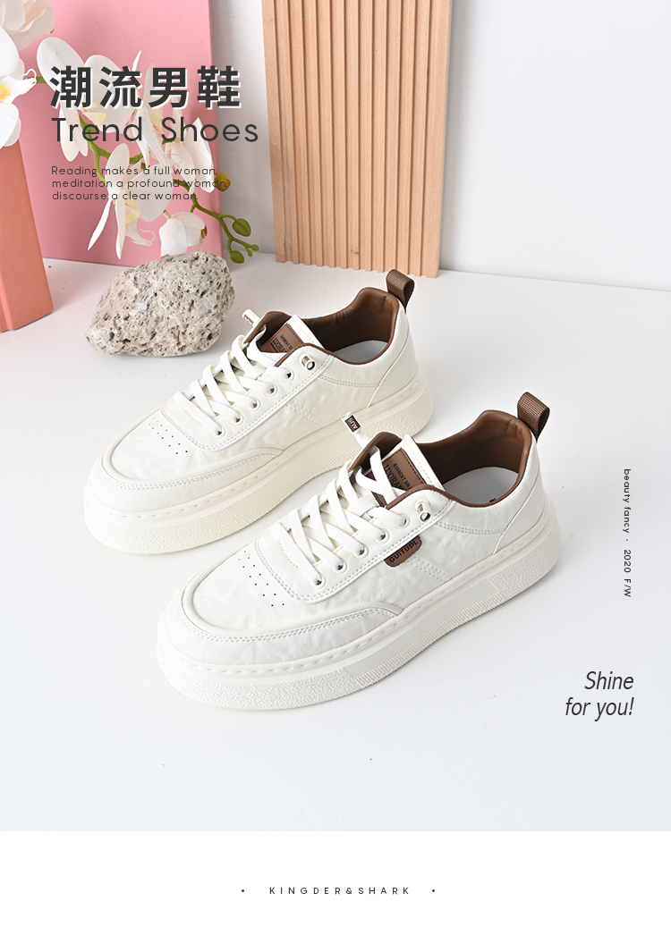 经典鲨2024年秋季新款韩版系带男士平底休闲鞋小白鞋KF17-D33011
