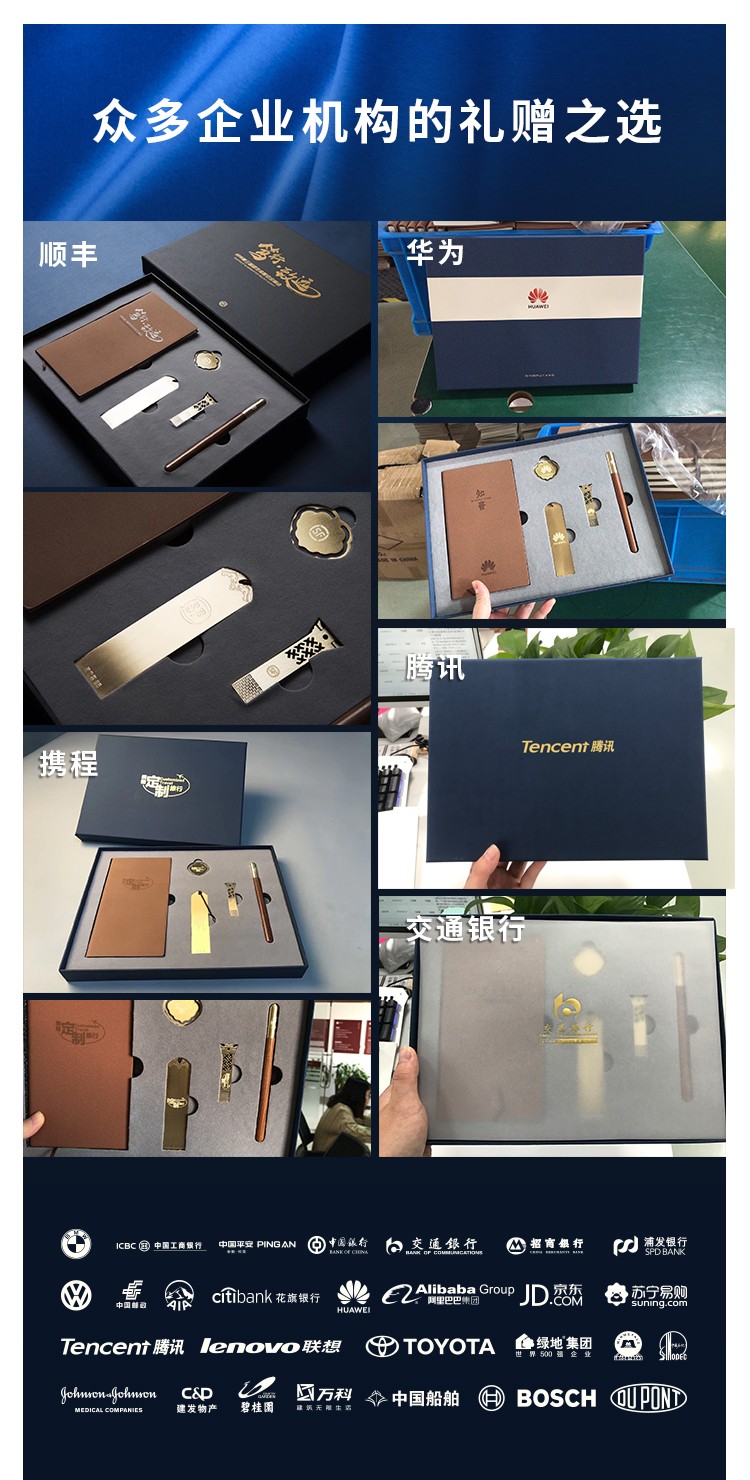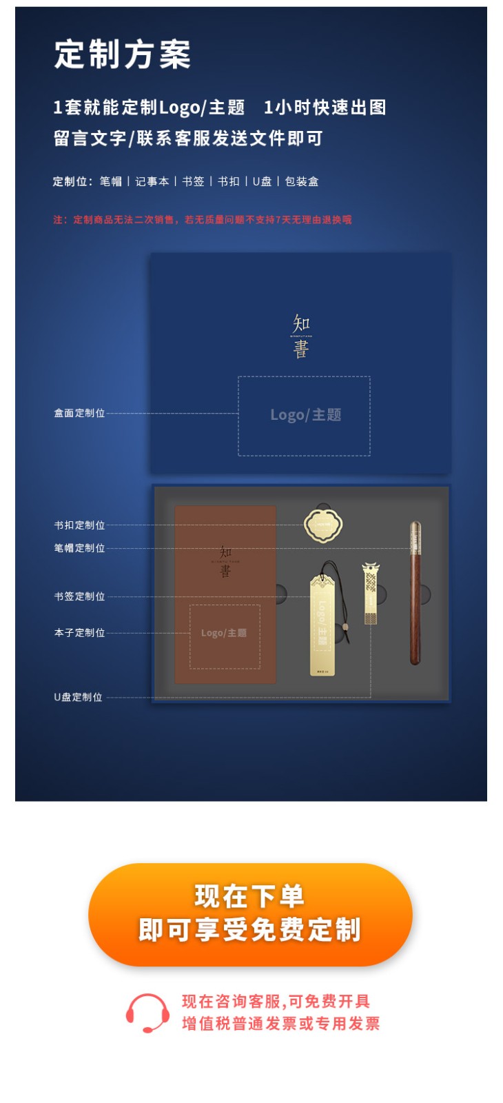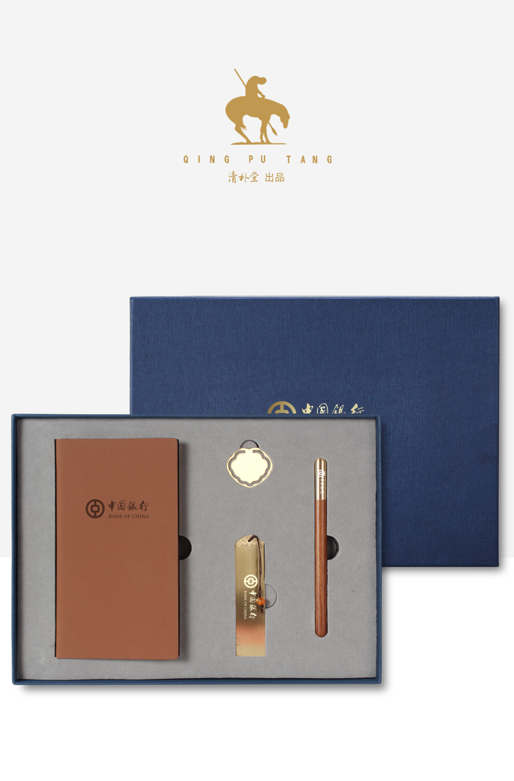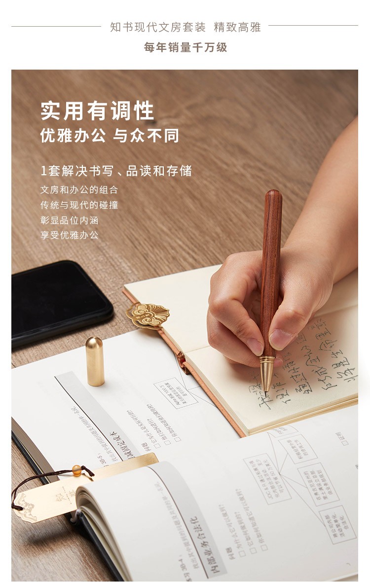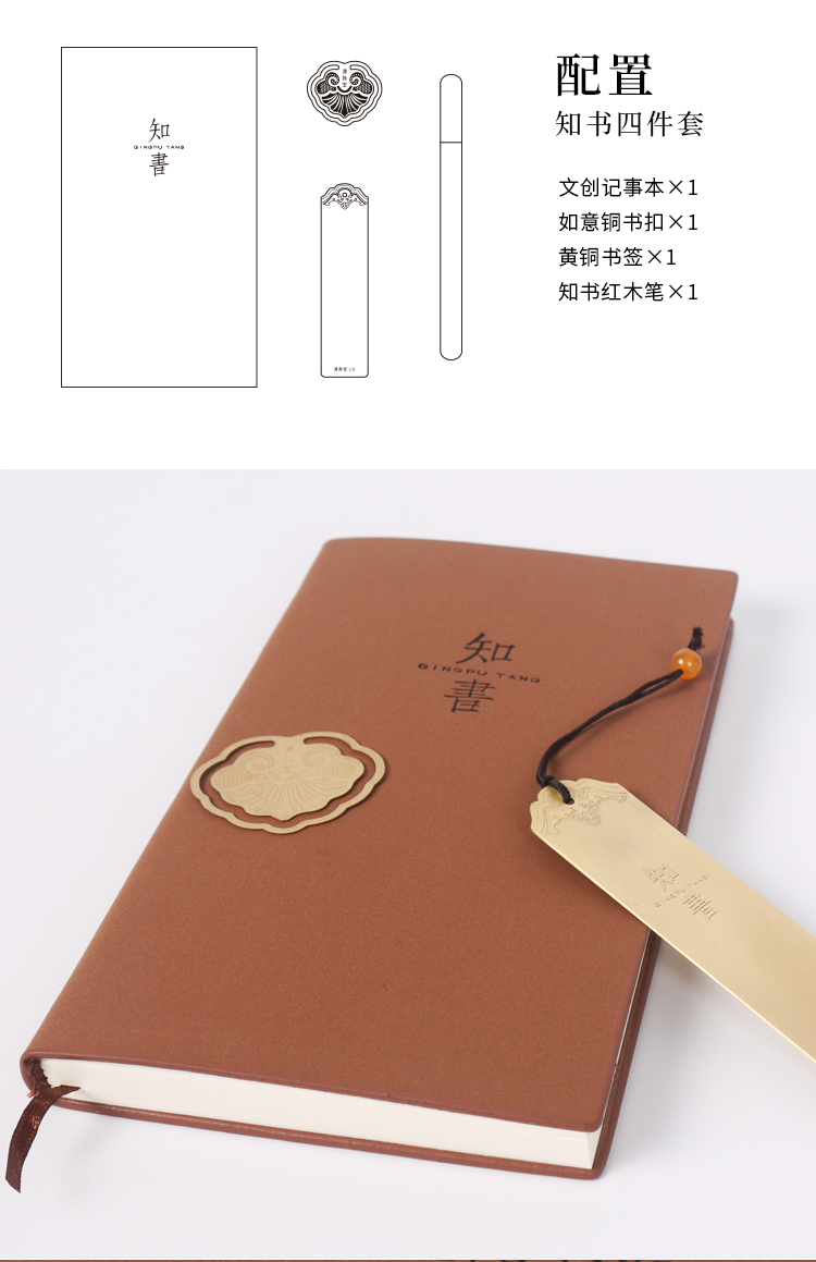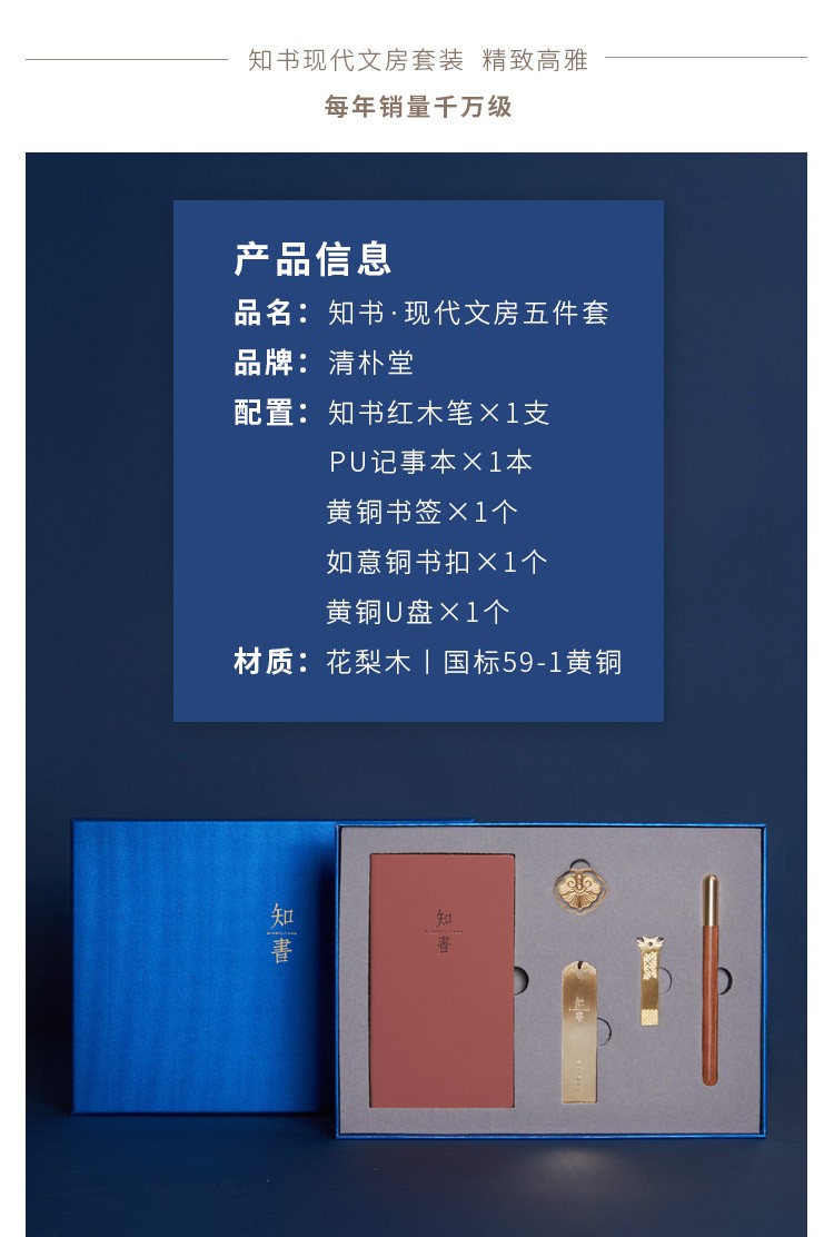 清朴堂 知书套装商务礼盒 实木笔刻字文化创意笔记本铜书签书扣U盘办公会务礼品 两件套