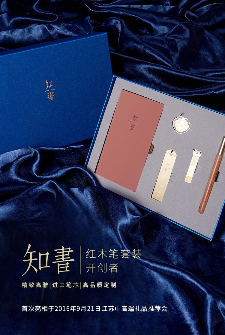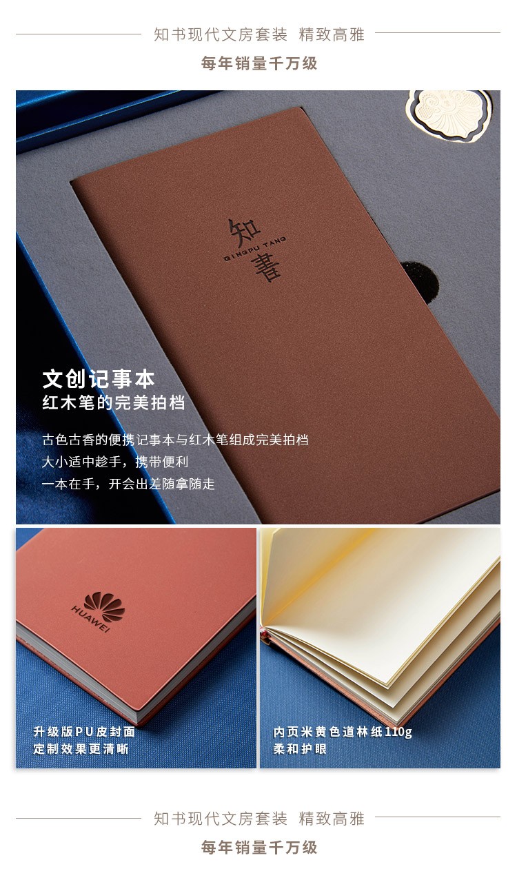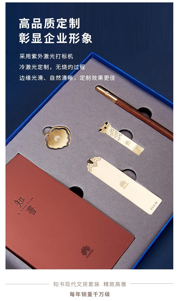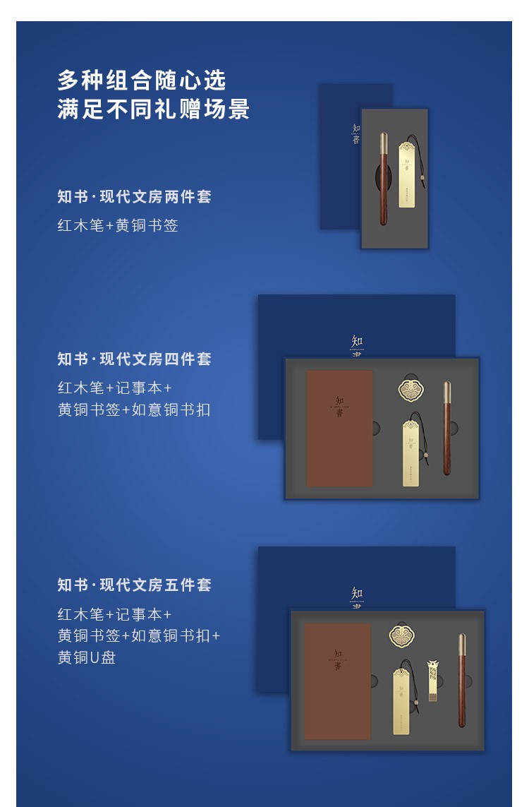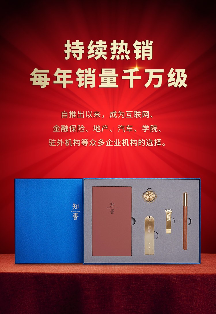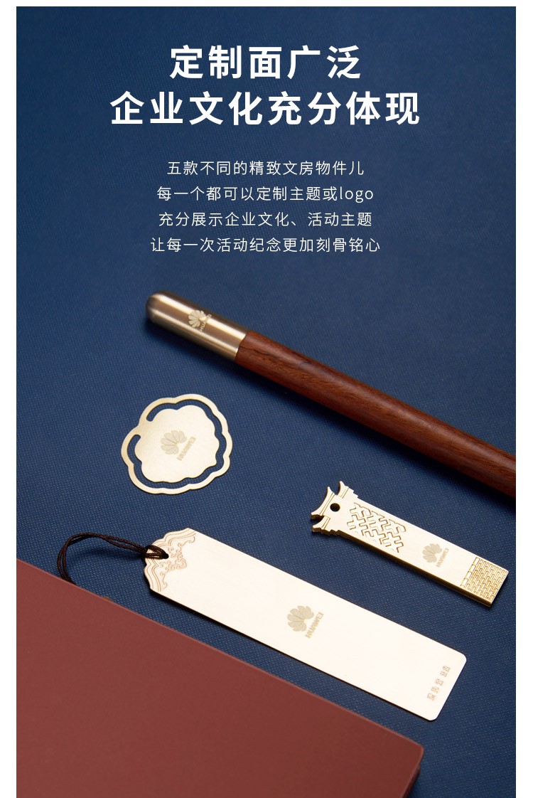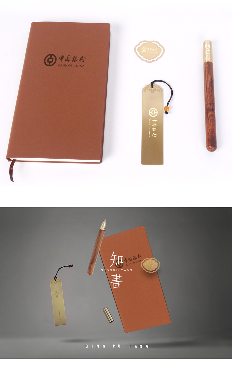清朴堂 知书套装商务礼盒 实木笔刻字文化创意笔记本铜书签书扣U盘办公会务礼品 两件套