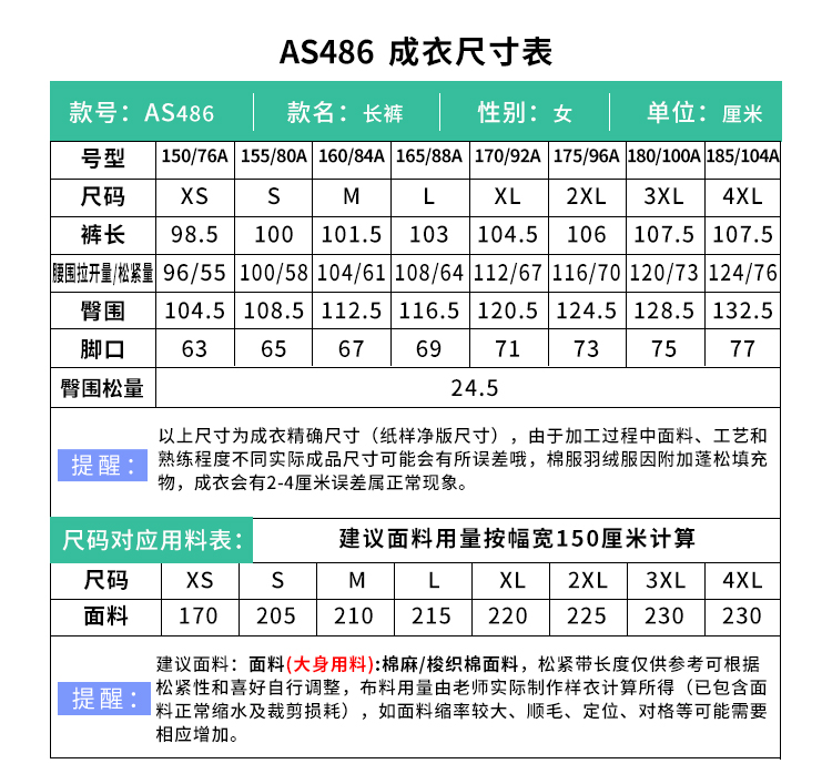 裁缝学苑AS486休闲阔腿裤纸样女装新款高腰宽松直筒阔腿裤子样板