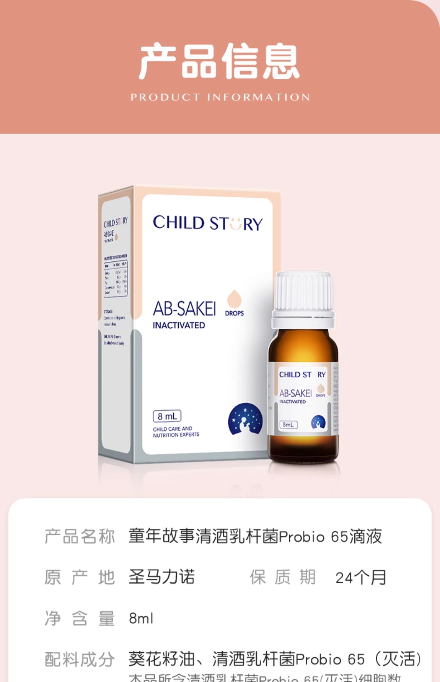 9楼母婴生活馆 4瓶送1瓶 童年故事馥优珍益生菌儿童清酒乳杆菌Probio65滴液8mL 吊牌价:298元 活动价:298元1瓶 1192元4瓶送1瓶