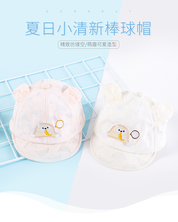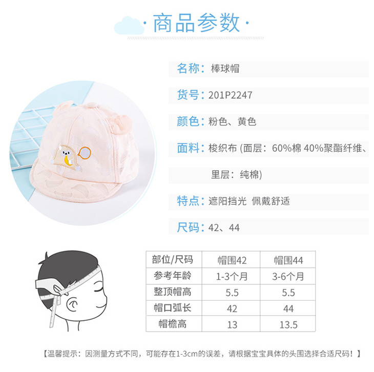 贝贝怡男女宝宝外出遮阳挡光帽子夏季新款吸汗透气儿童卡通鸭舌帽201P2247