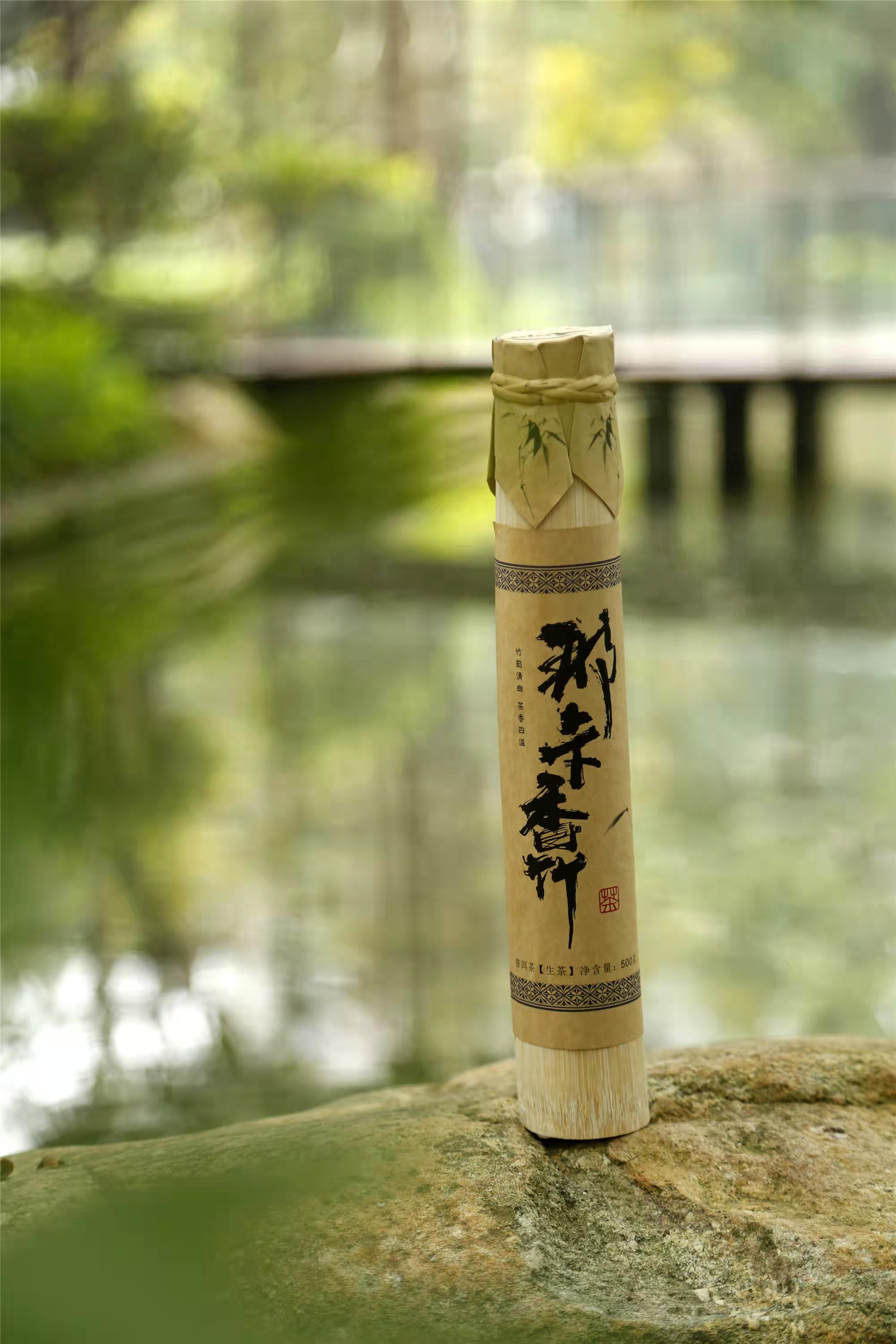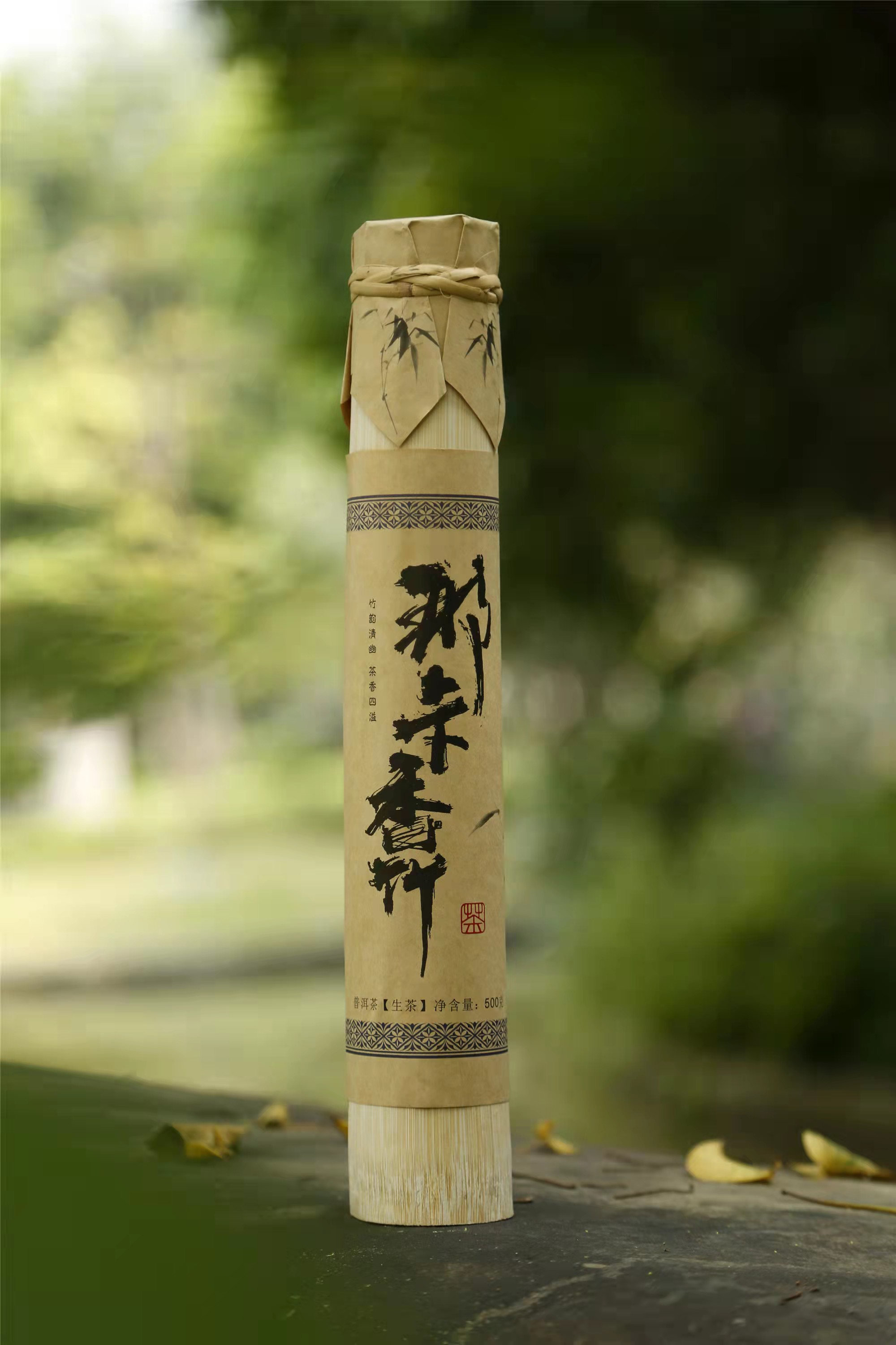 那卡香竹(2019)精选一年生野生甜香竹,截取粗细大小适中的节段,锯开之后,以竹节为底,自然成器,盛那卡古树茶。
