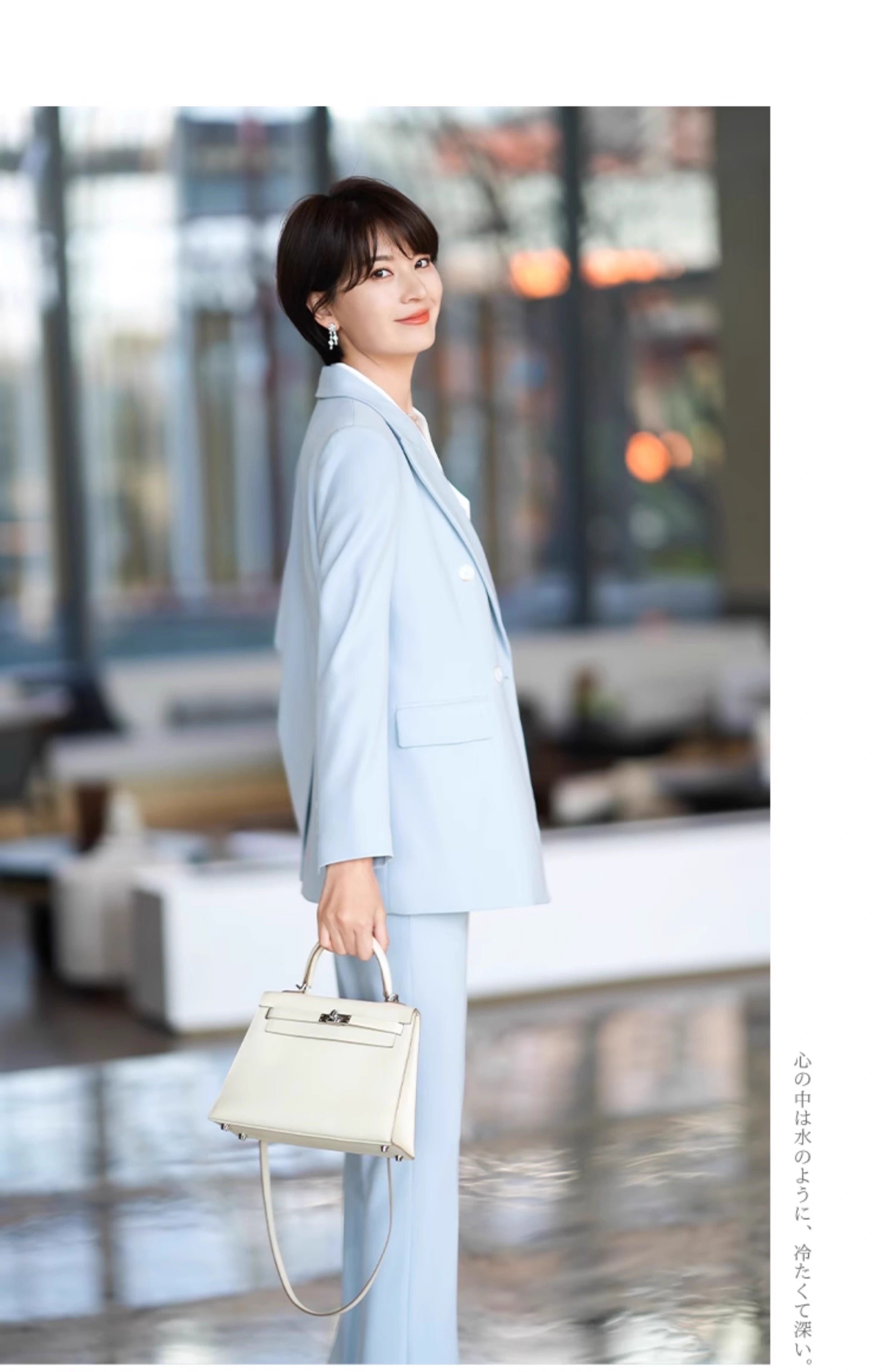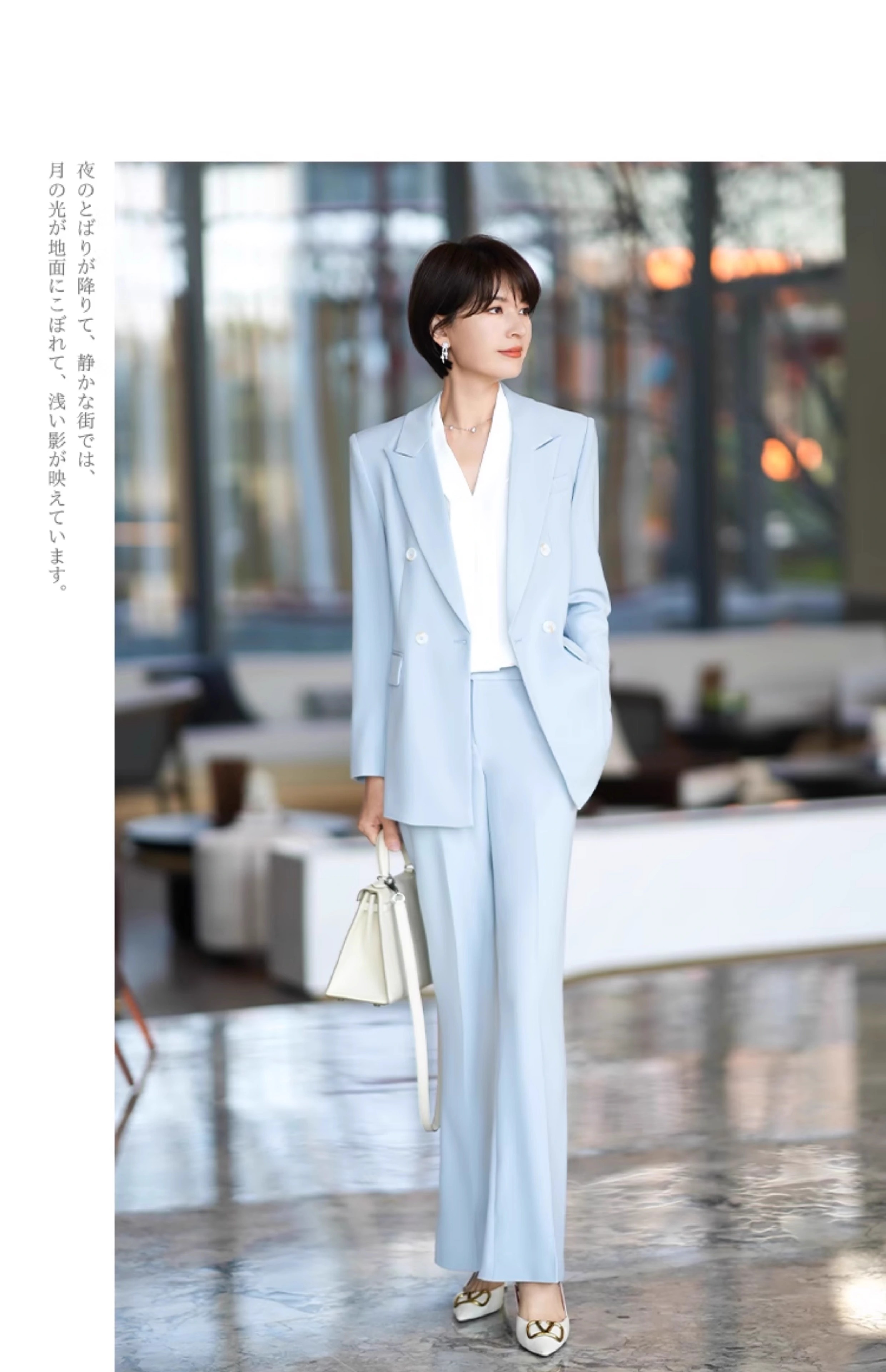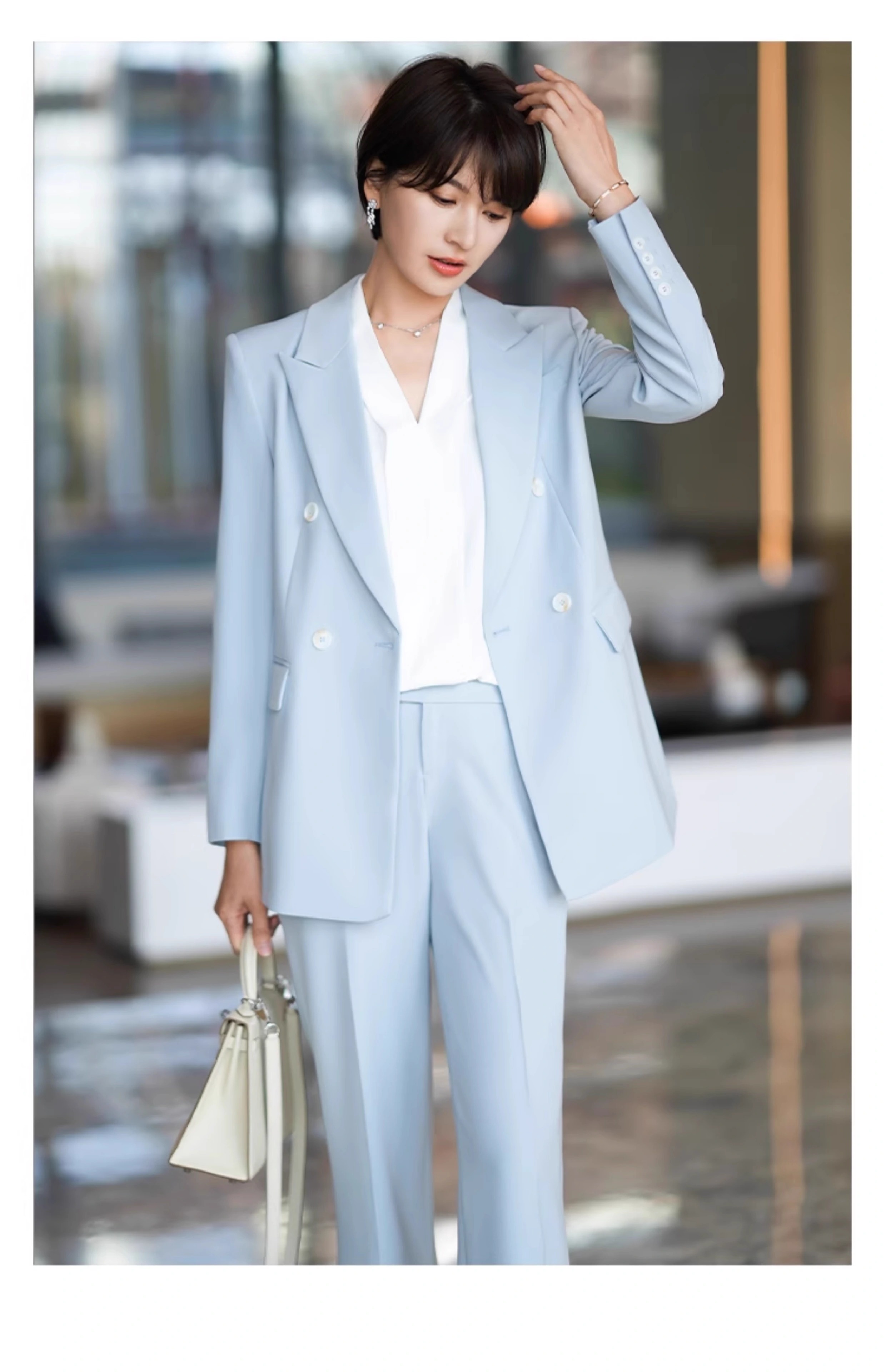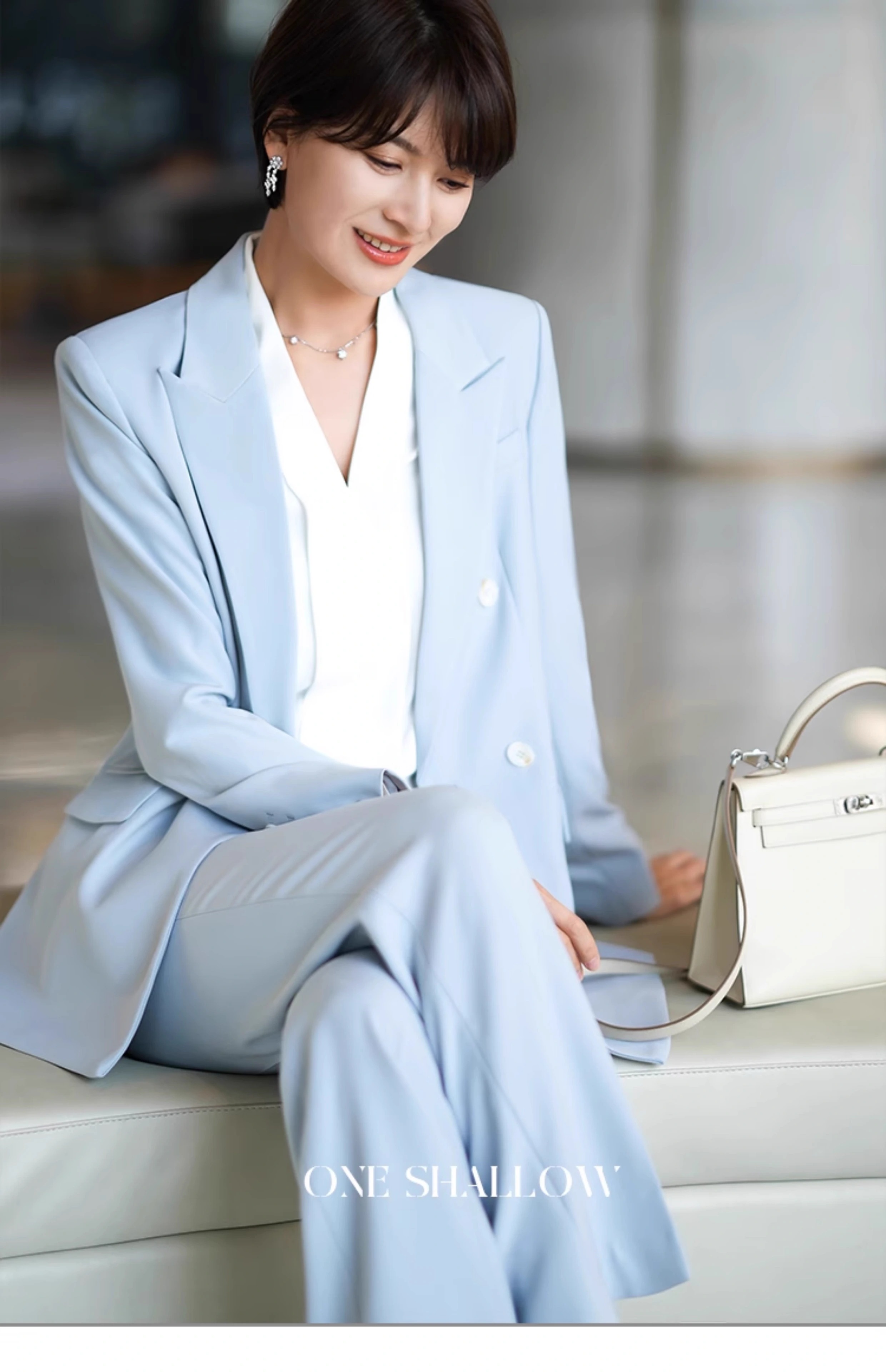 时尚蓝色职业西服套裤新款阔腿裤西装正装