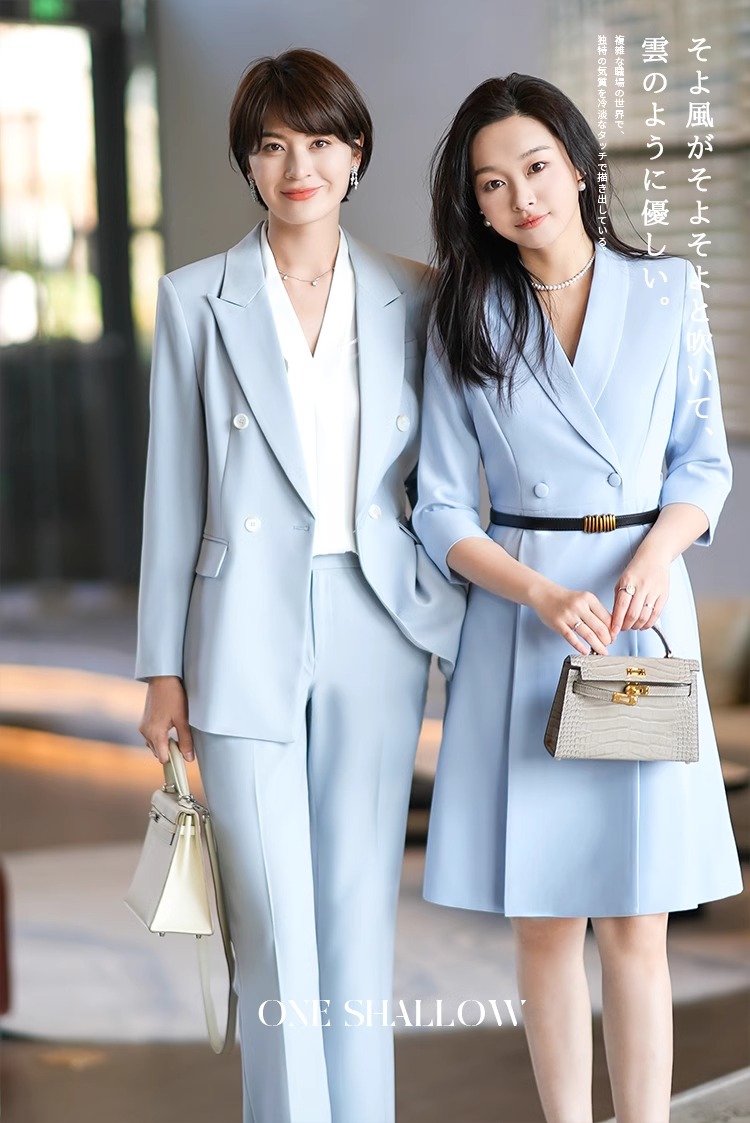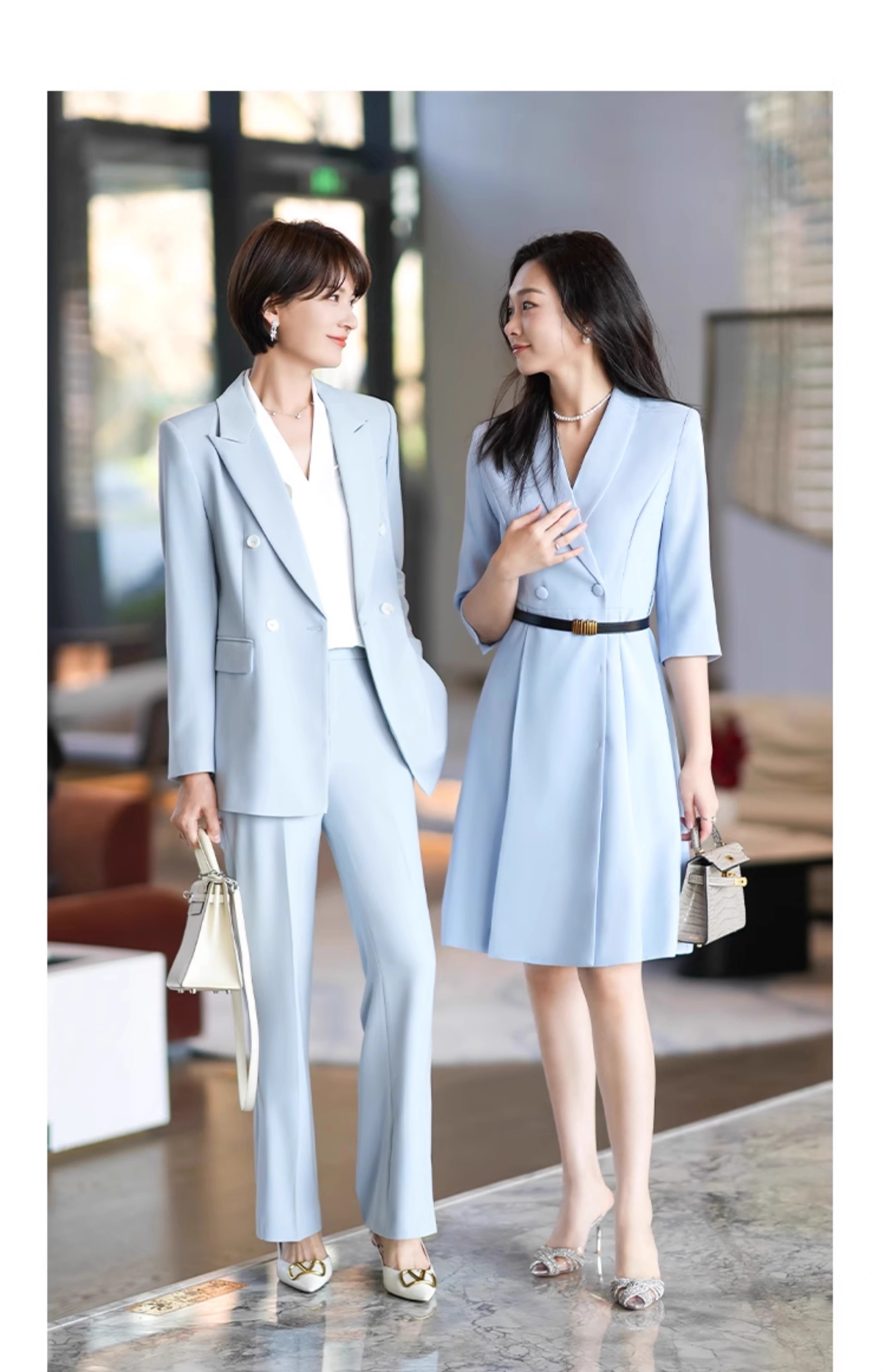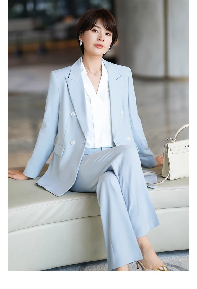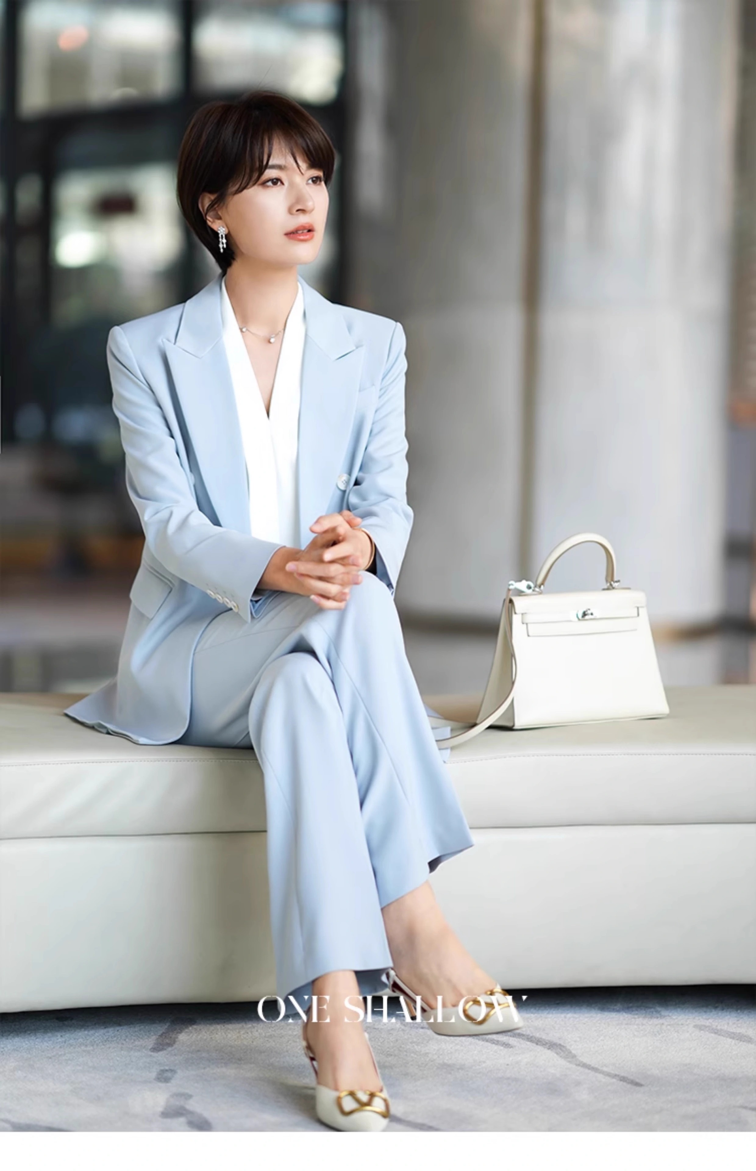 时尚蓝色职业西服套裤新款阔腿裤西装正装