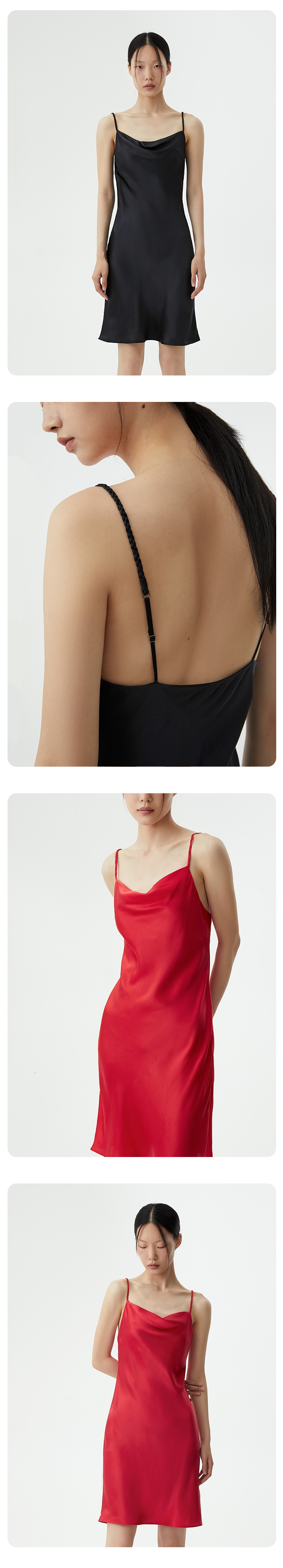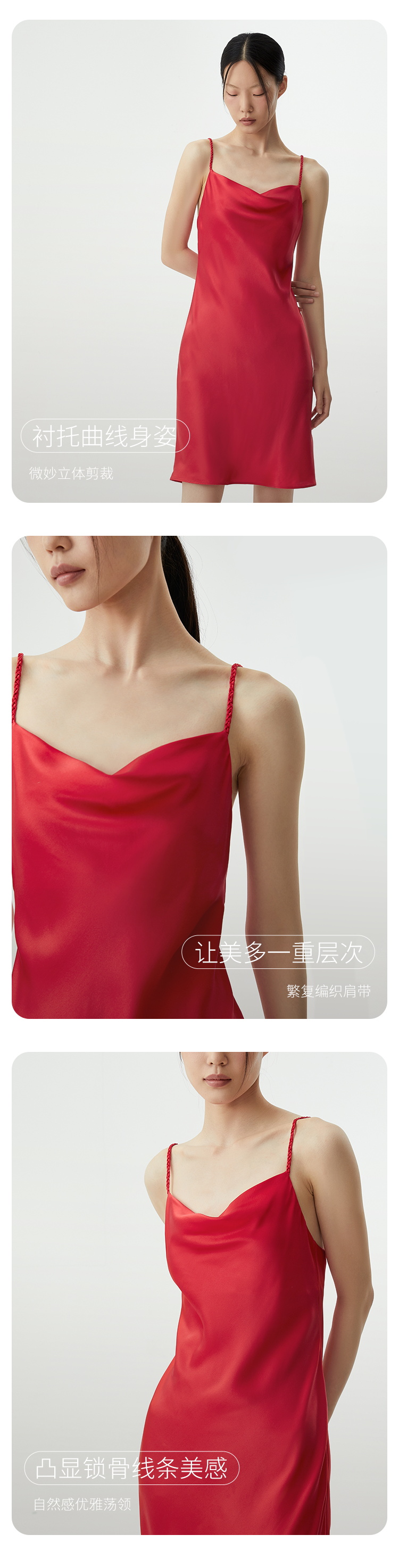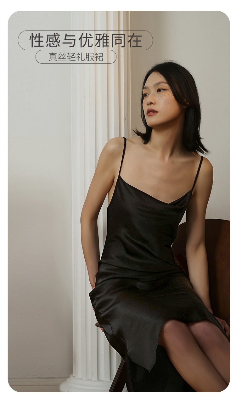 桑罗荡领吊带性感编织肩带礼服连衣裙睡裙