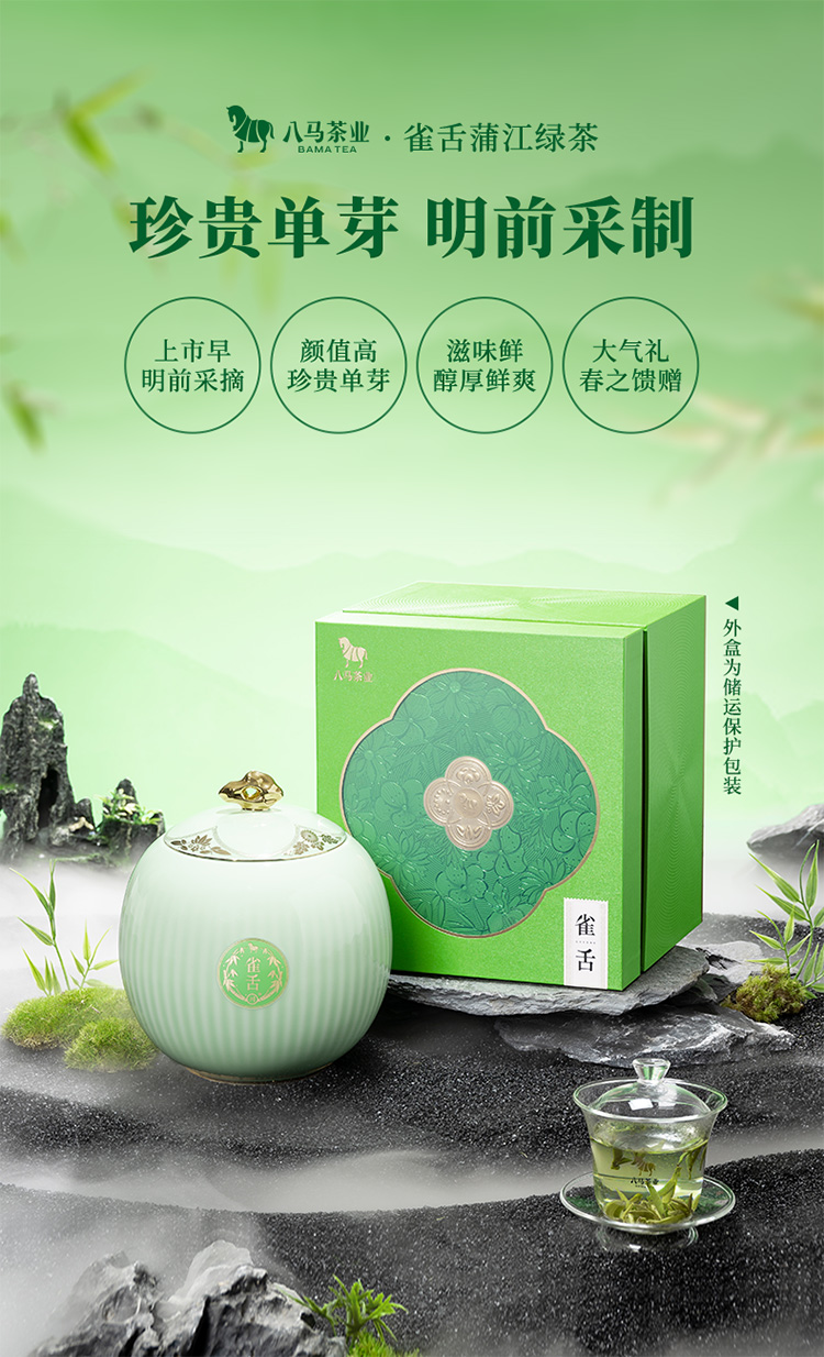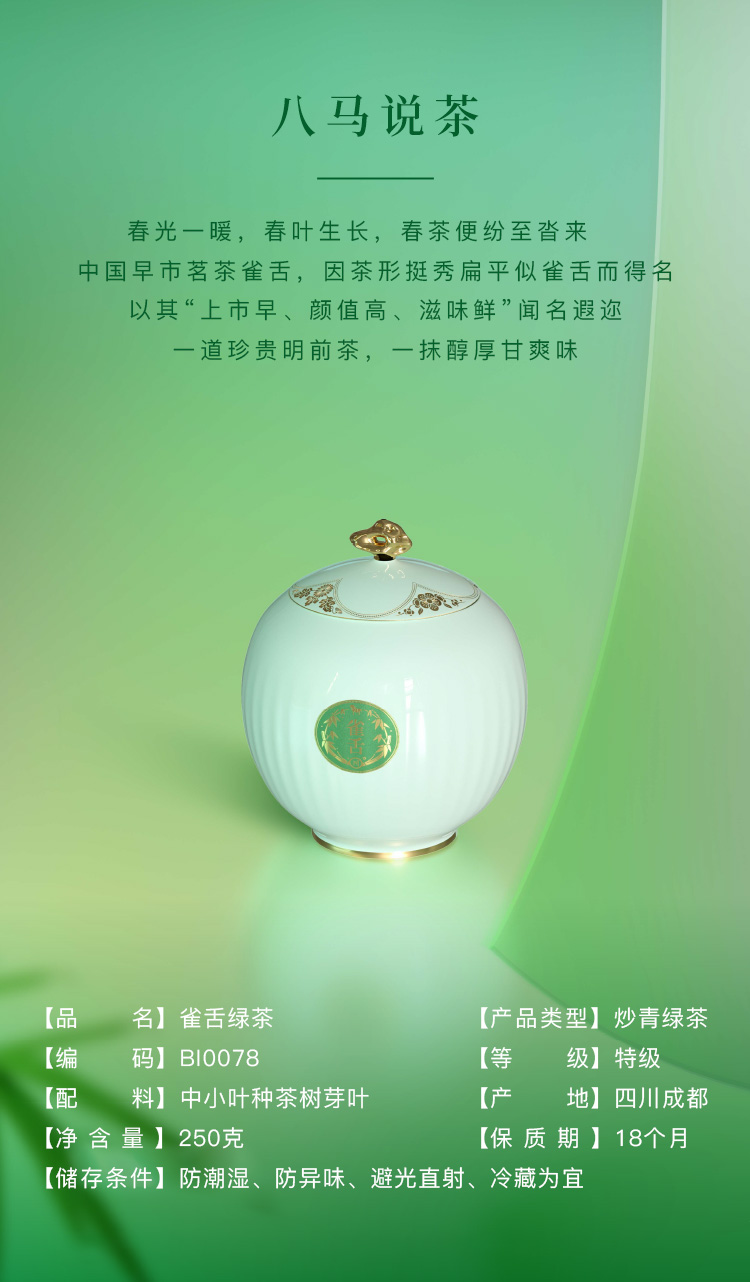 【2026年春茶】八马茶业丨雀舌绿茶瓷罐礼盒装茶叶250g