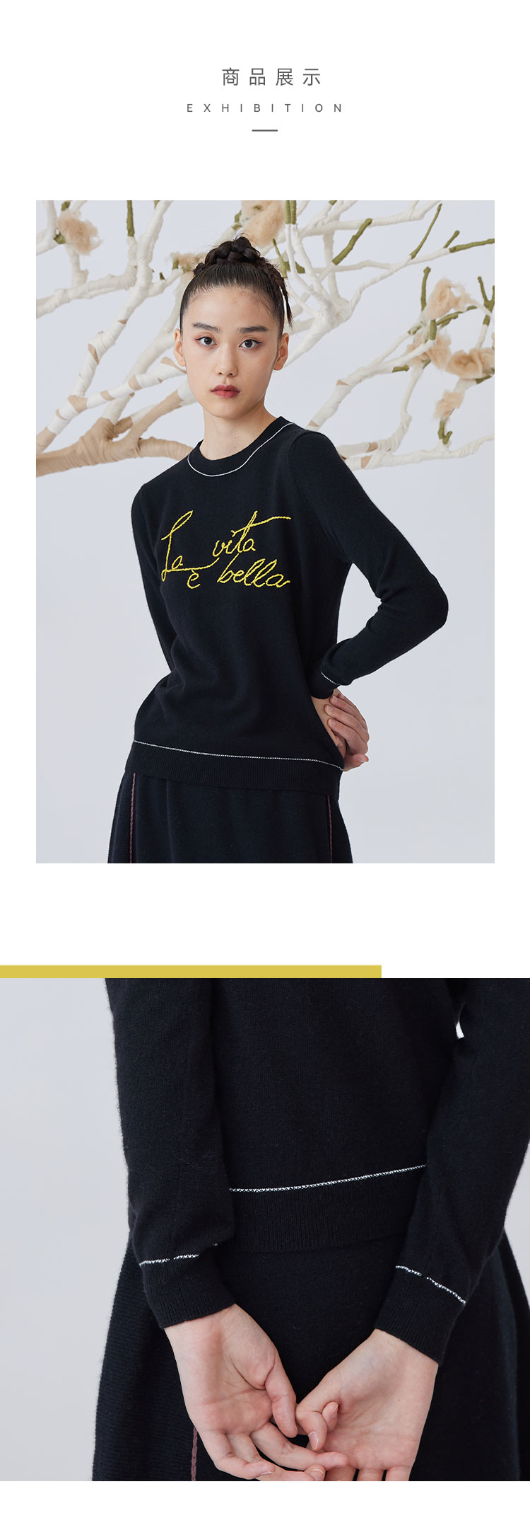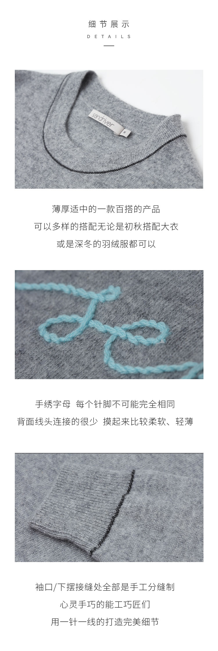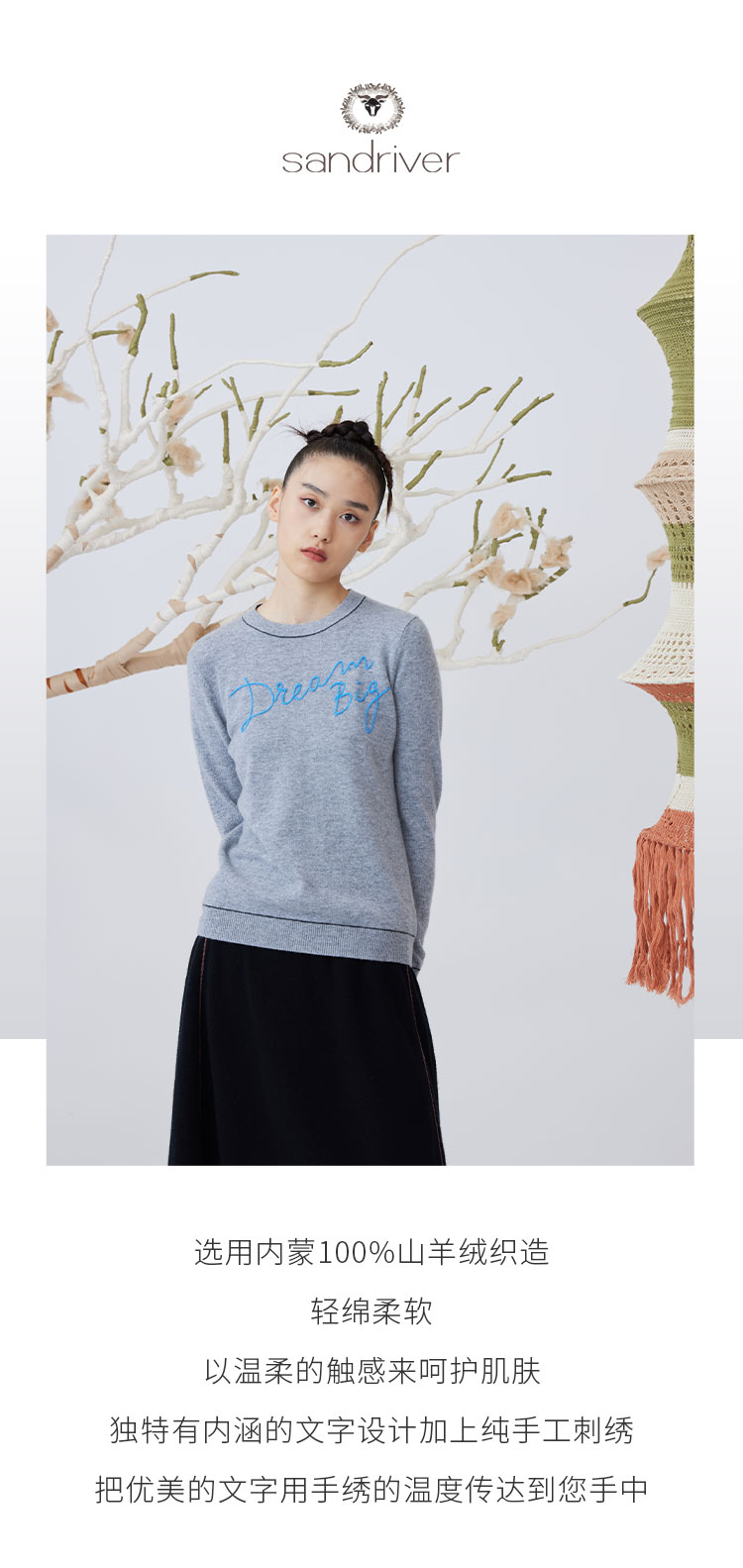 手工绣花圆领羊绒针织女套衫 SJF92W205A