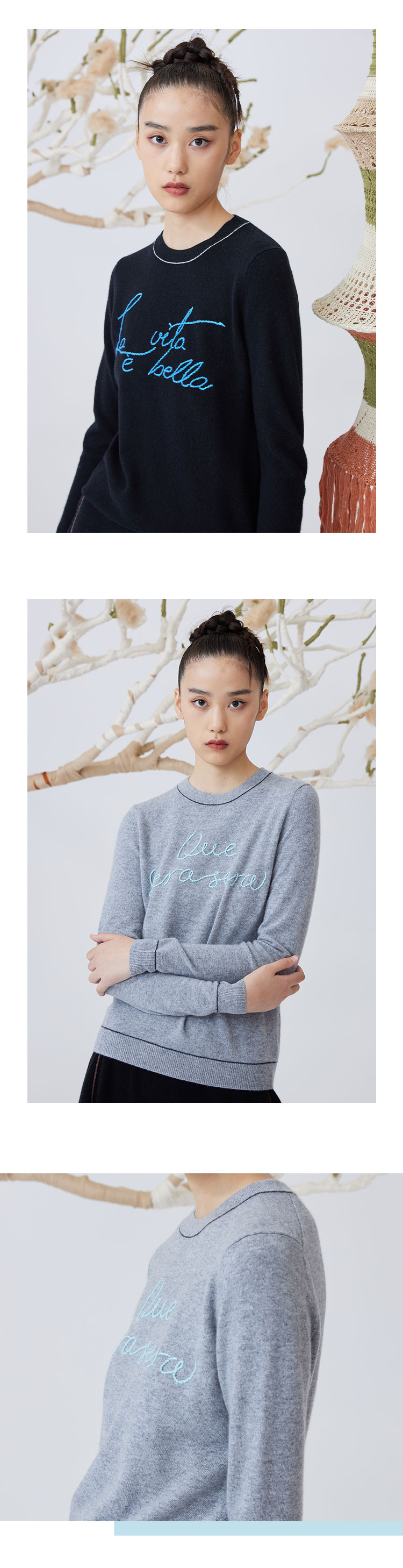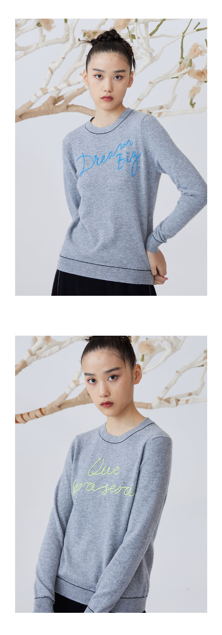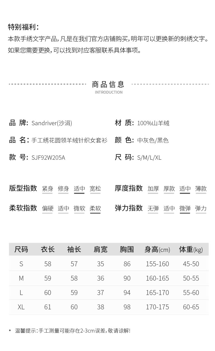 手工绣花圆领羊绒针织女套衫 SJF92W205A