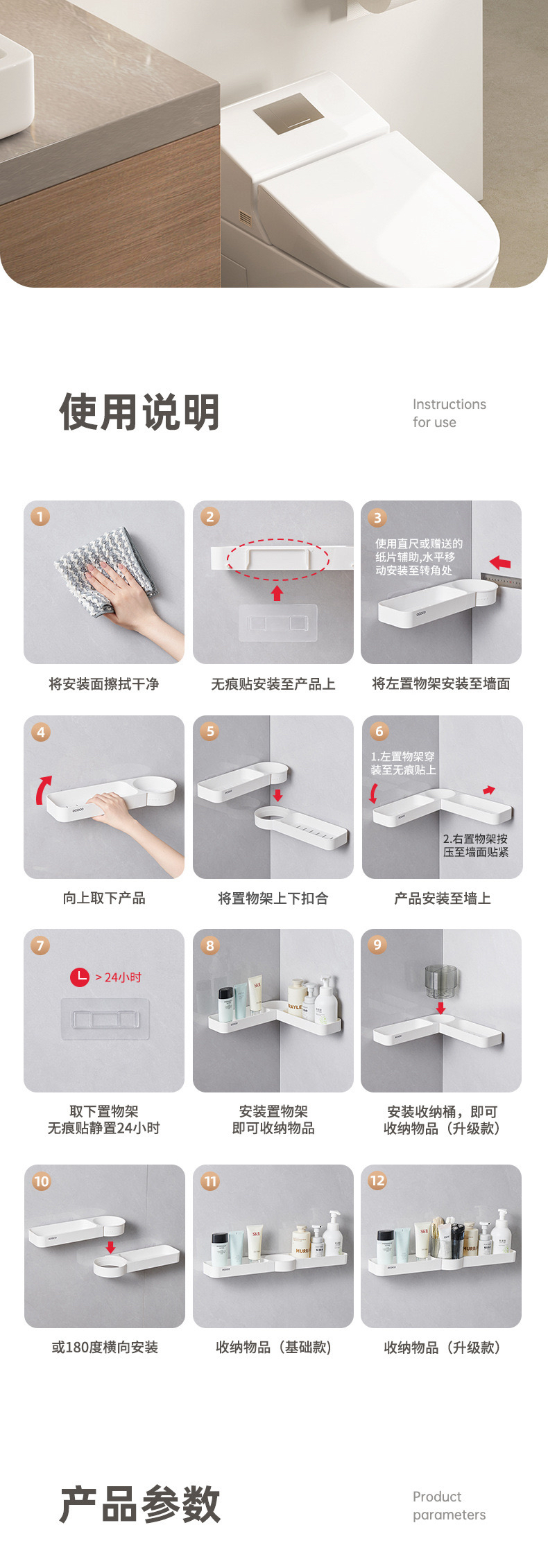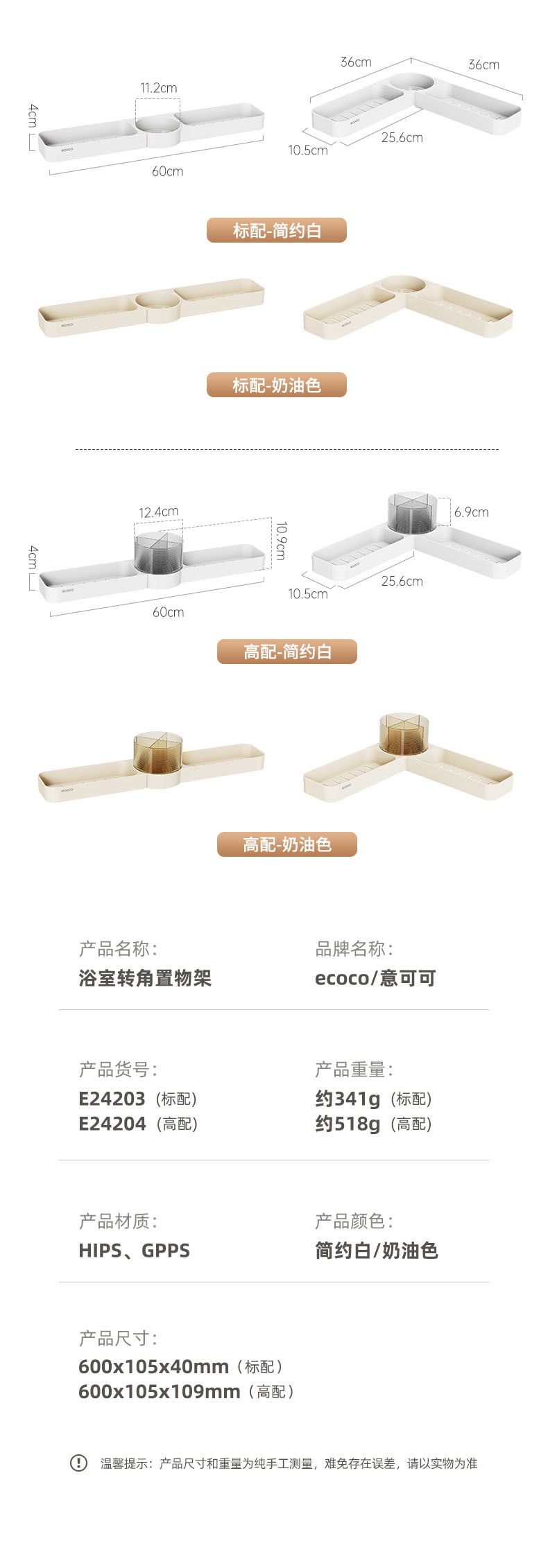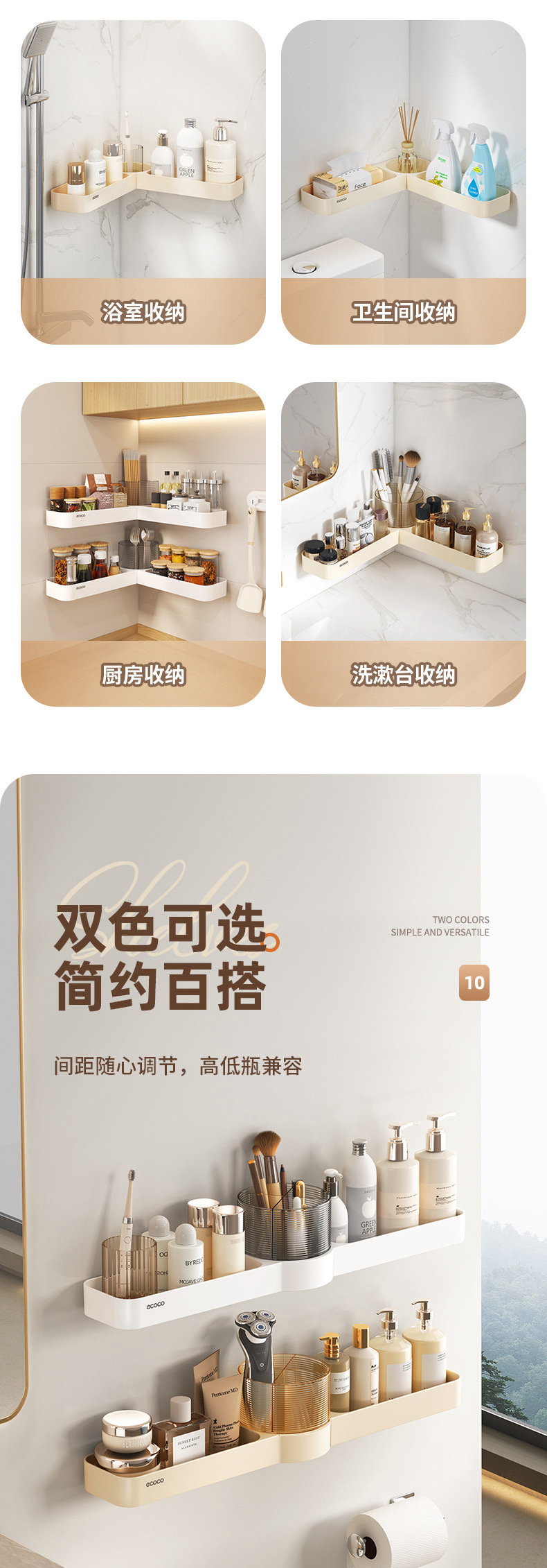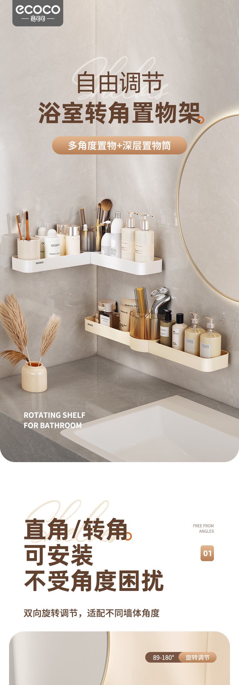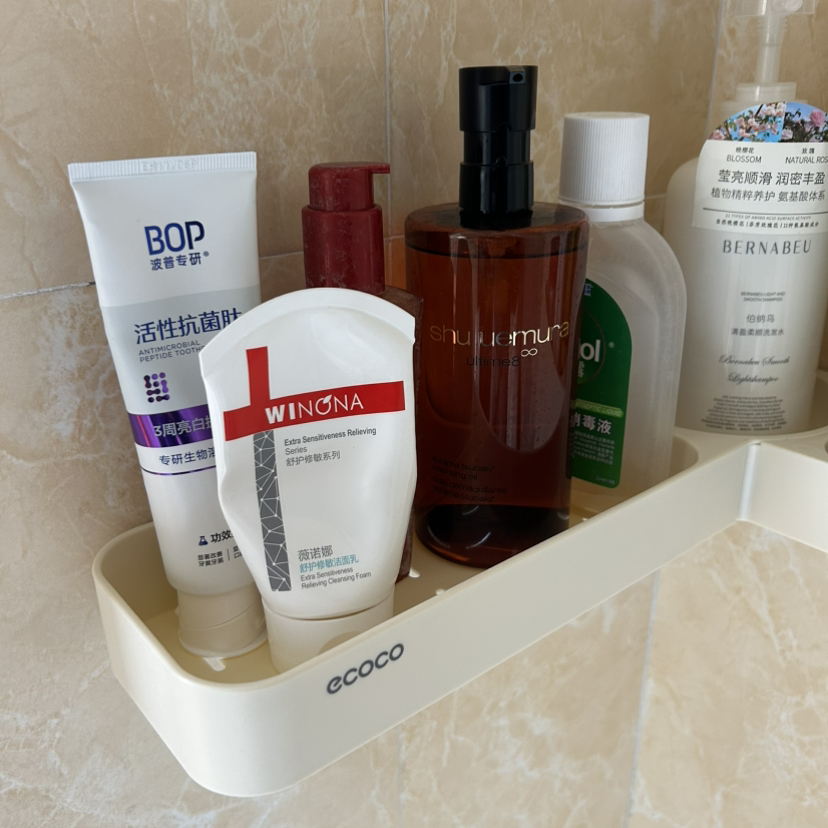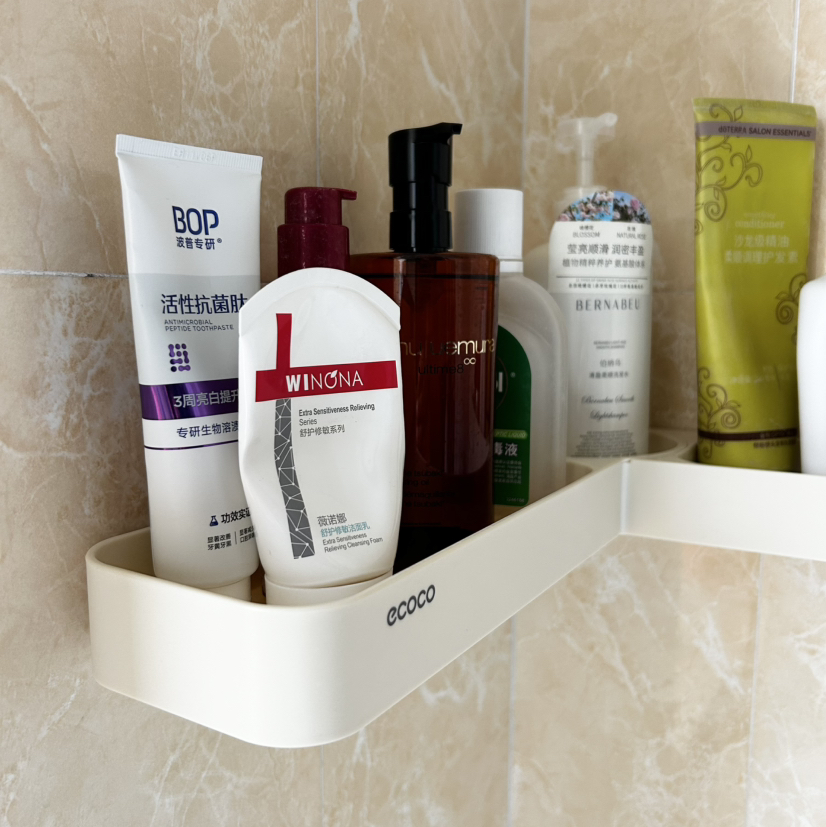 【巨好用的一款置物架】可儿试了N多种 最后就它了 ecoco 免打孔 可转角 可直线 2用 卫生间浴室置物架壁挂式厕所洗手间洗漱台墙上收纳挂架