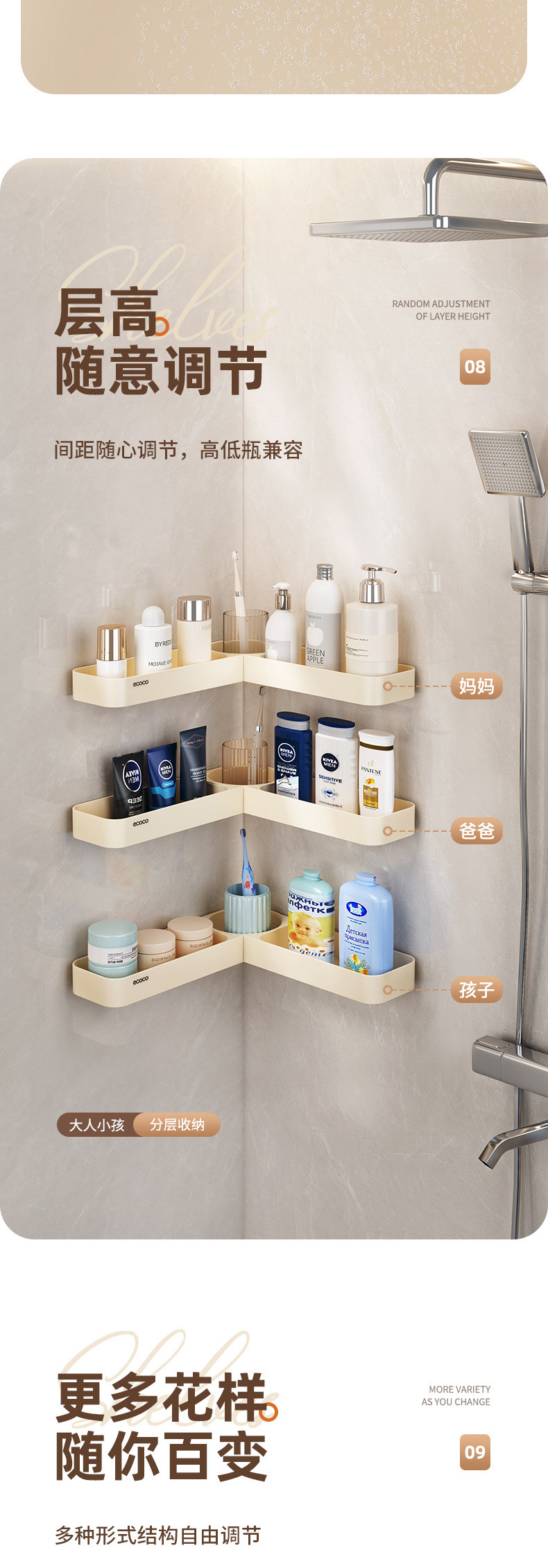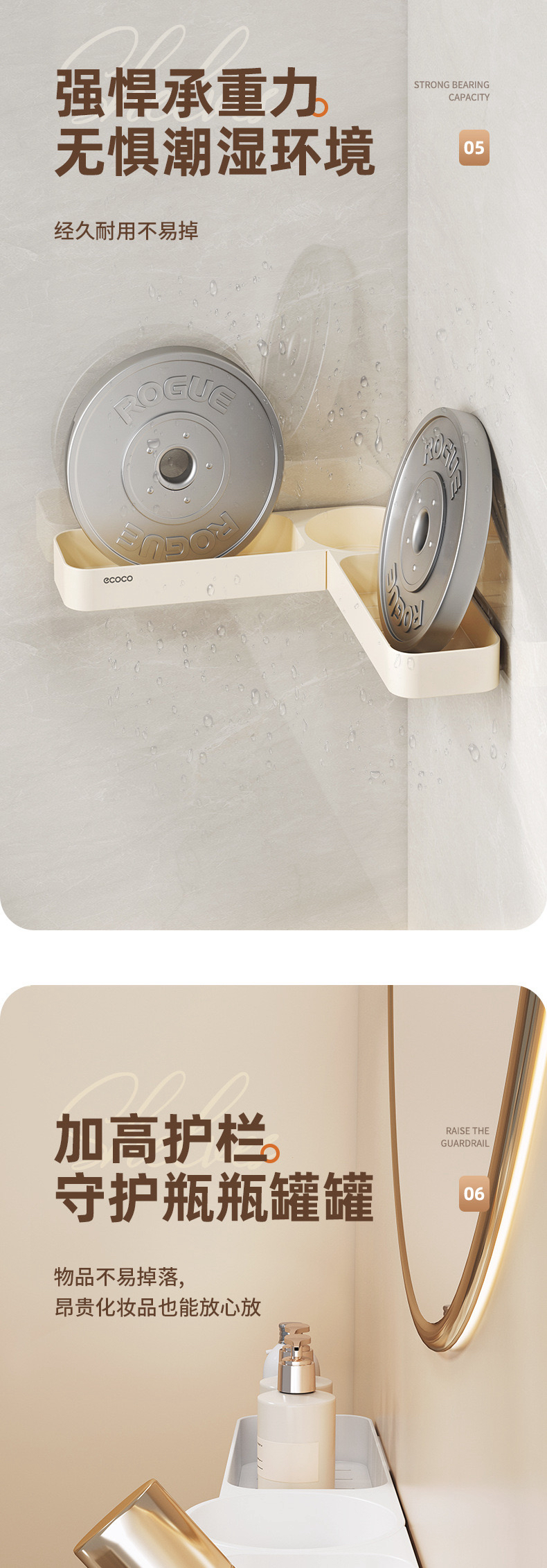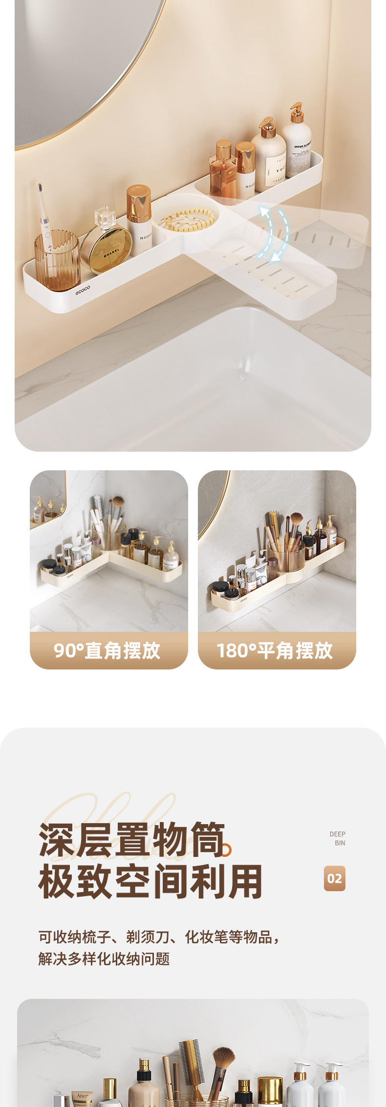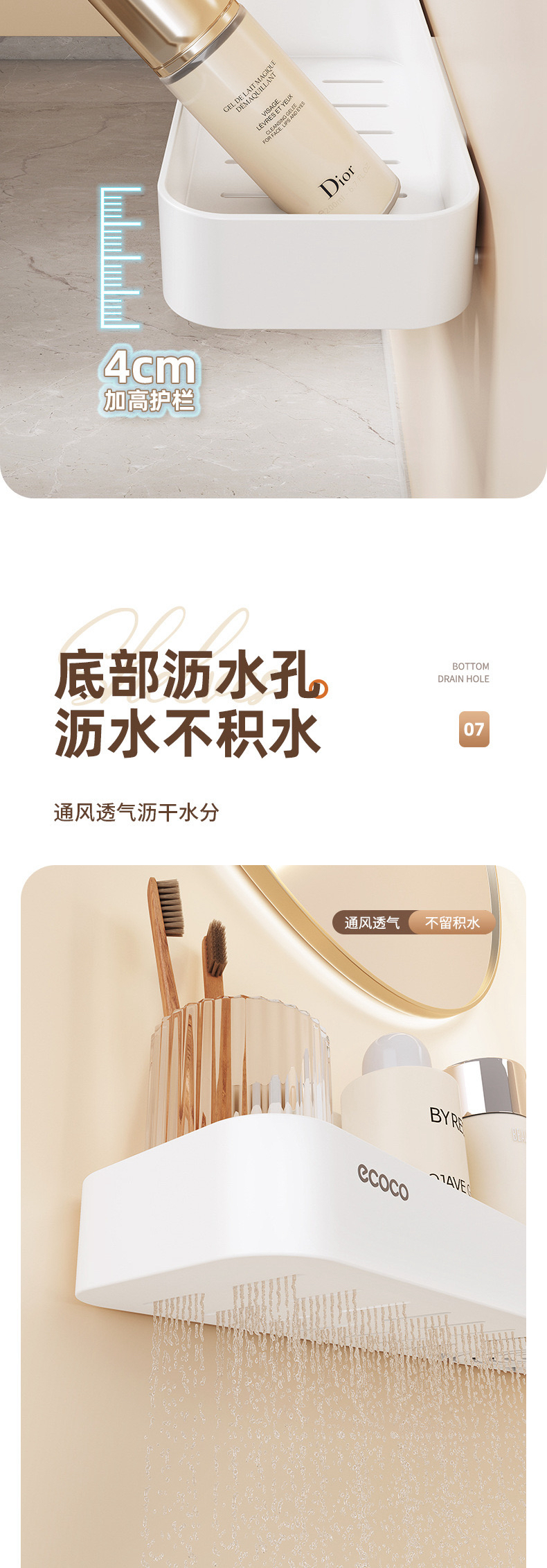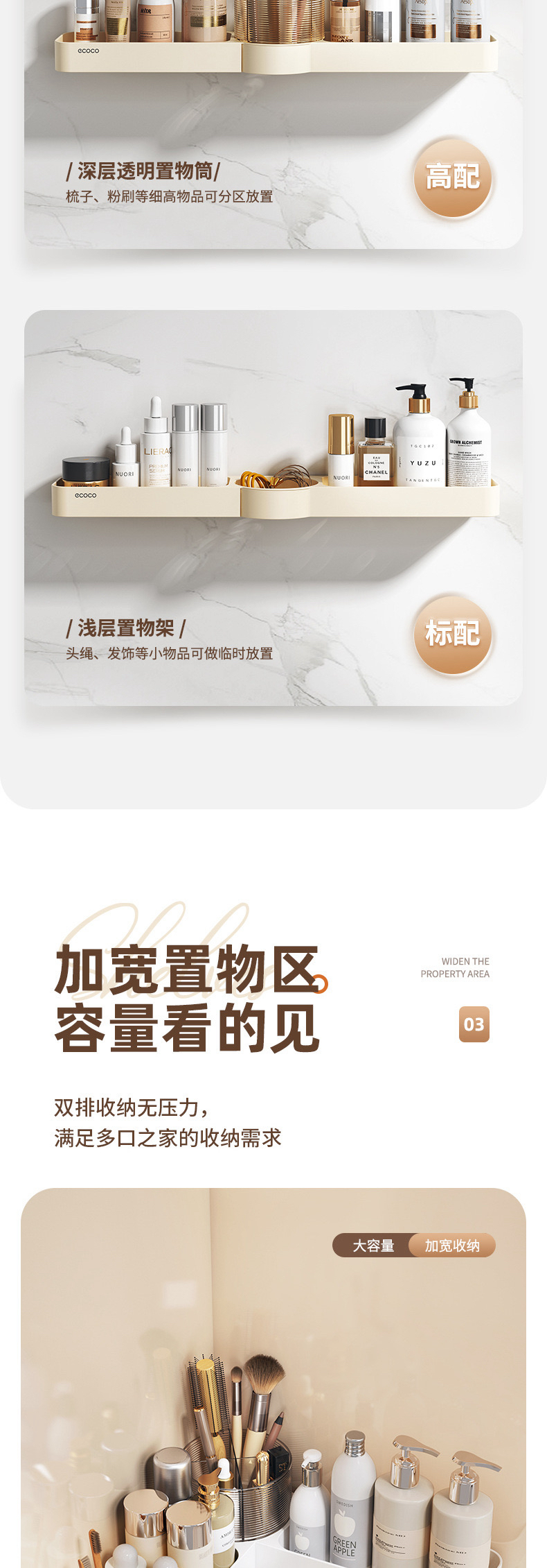 【巨好用的一款置物架】可儿试了N多种 最后就它了 ecoco 免打孔 可转角 可直线 2用 卫生间浴室置物架壁挂式厕所洗手间洗漱台墙上收纳挂架