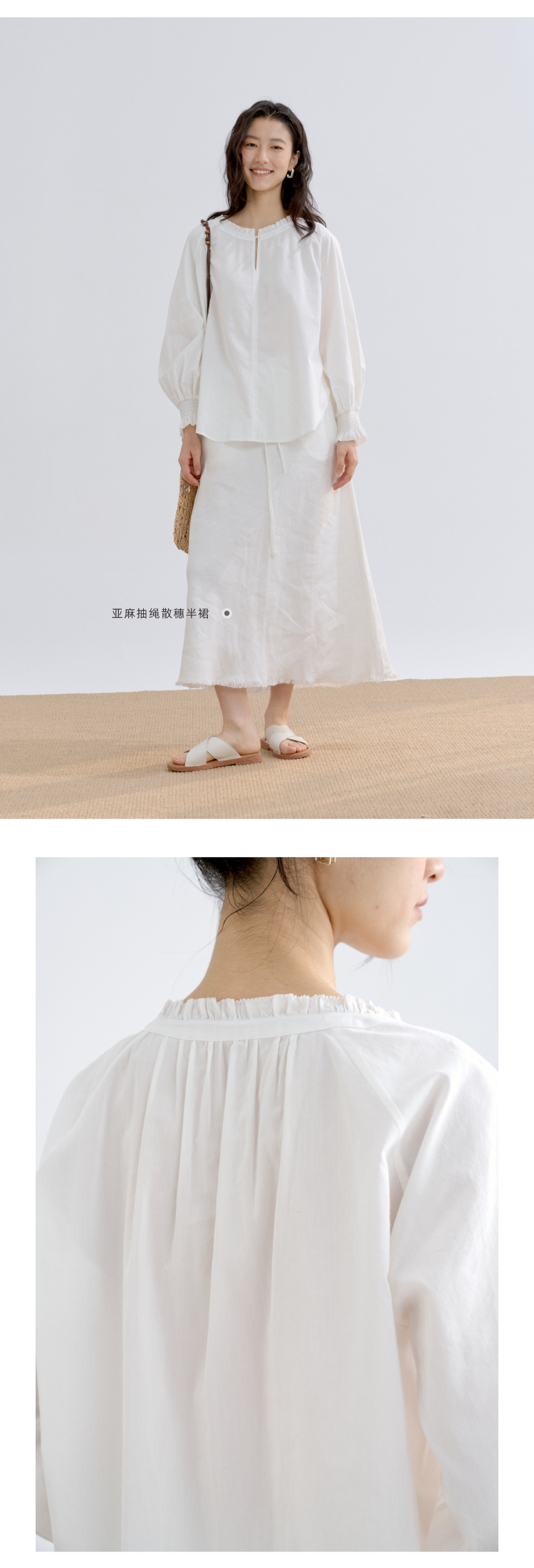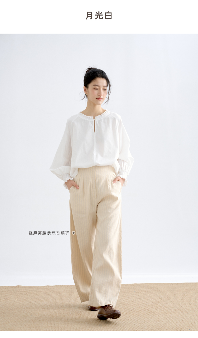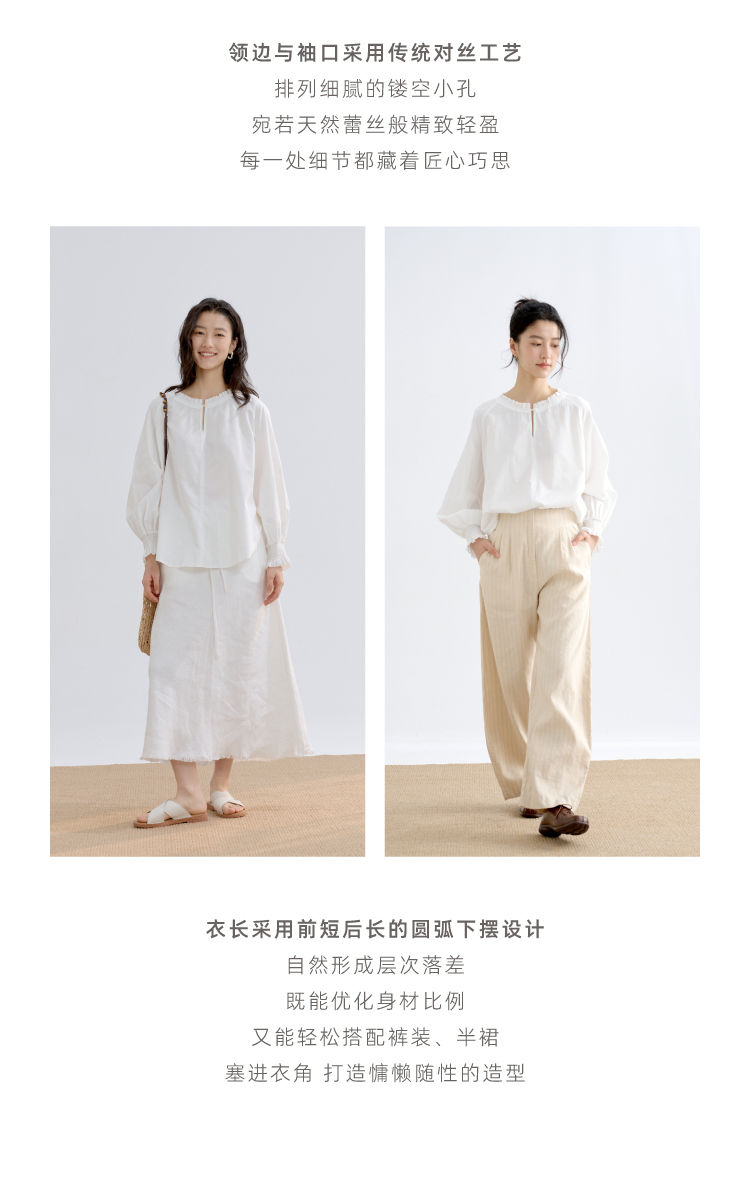 丝棉双宫圆领插肩宫廷衬衫