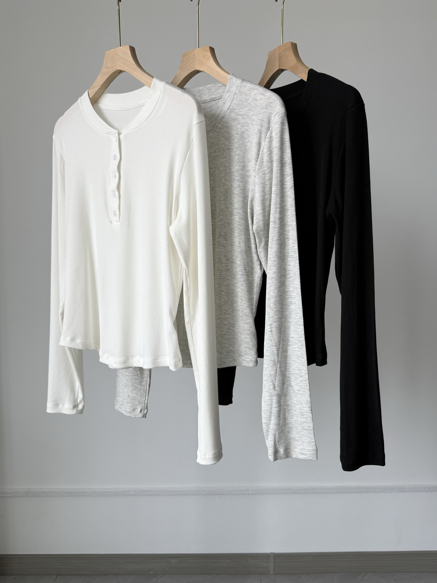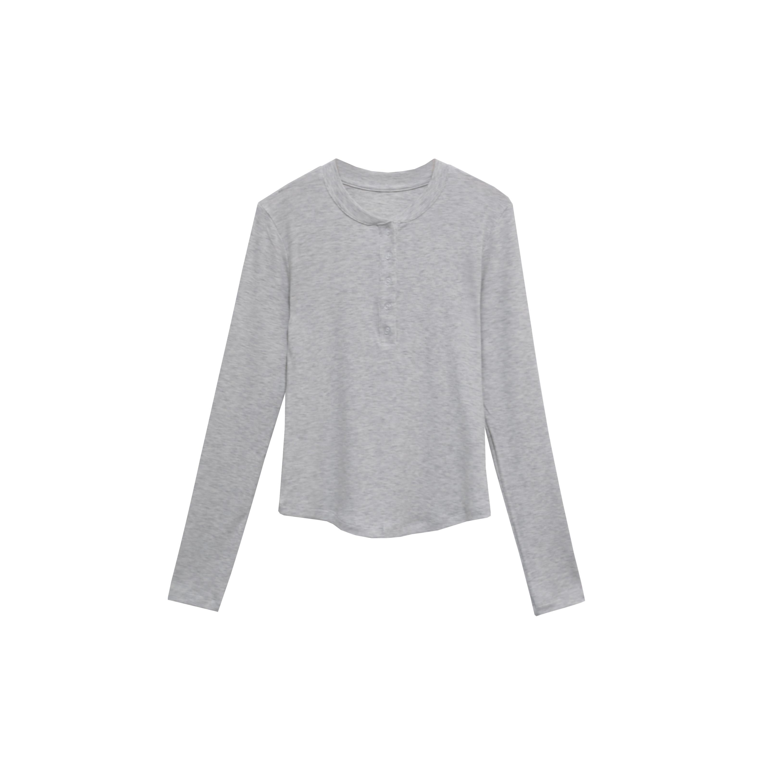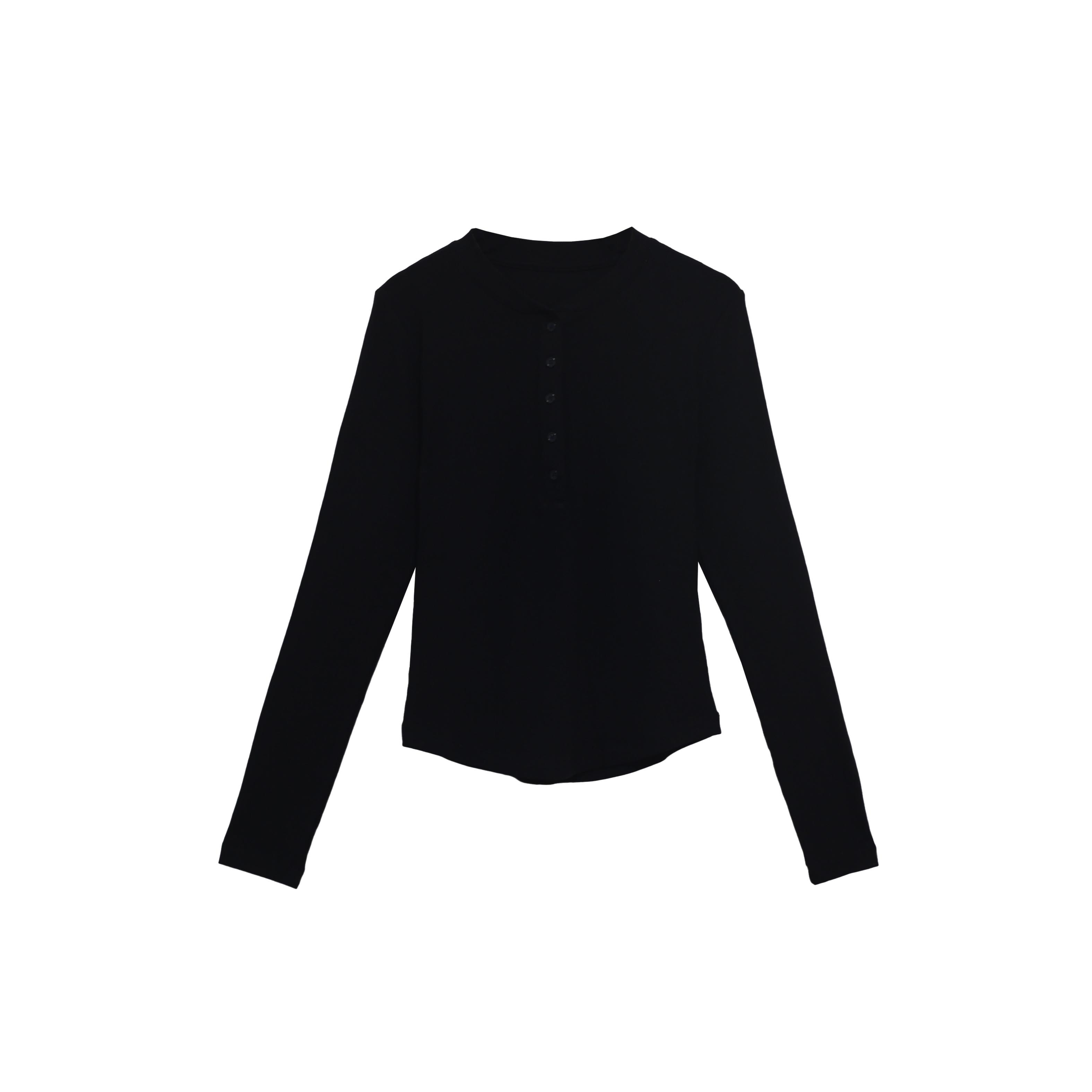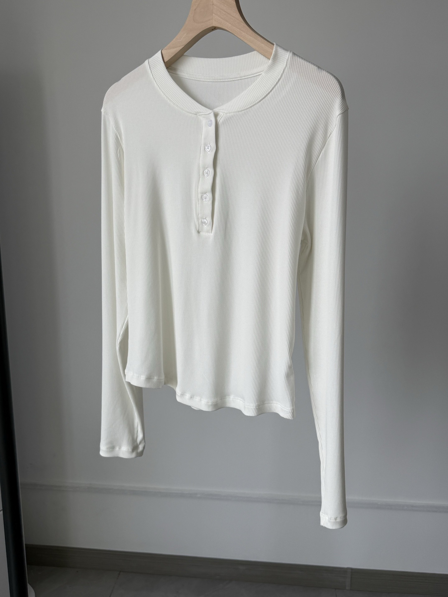 lu家 莫代尔棉螺纹打底 长袖 亨利衫