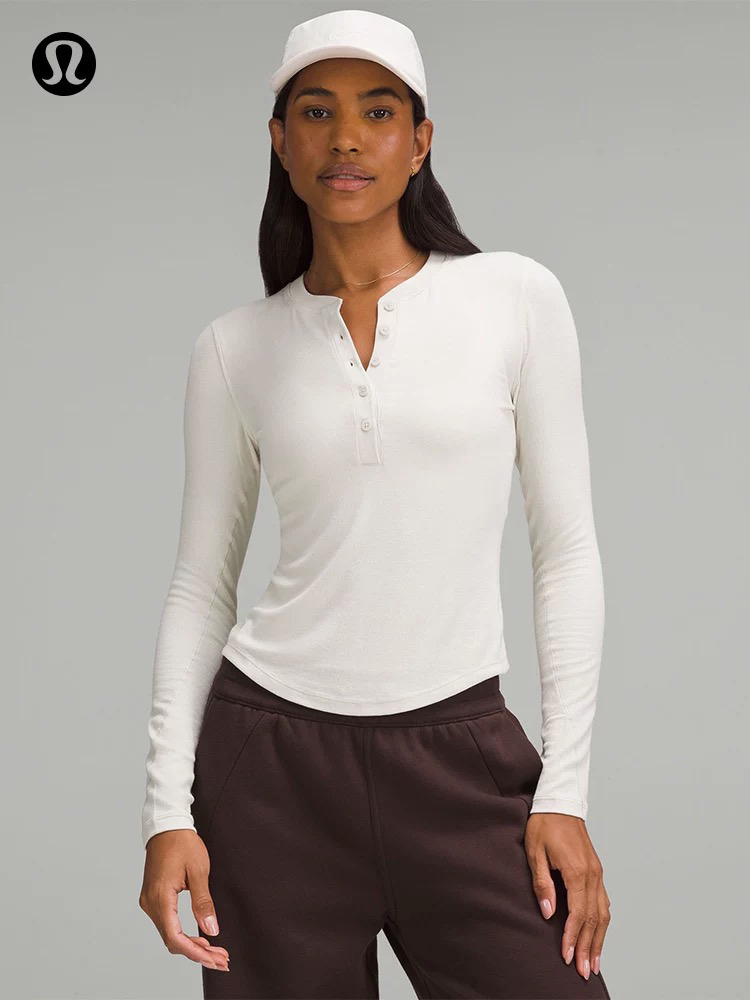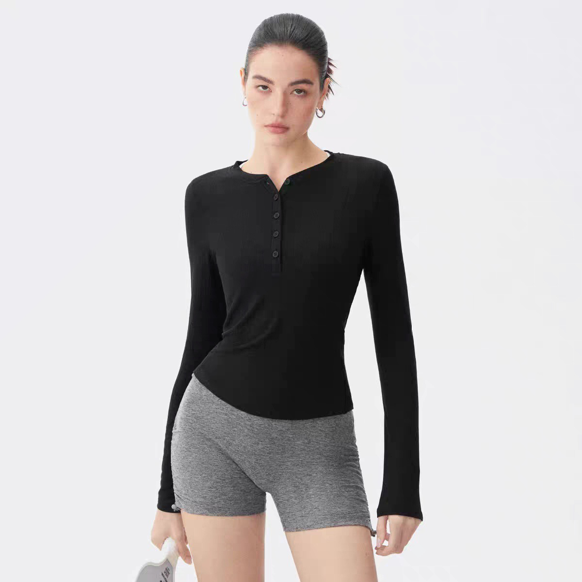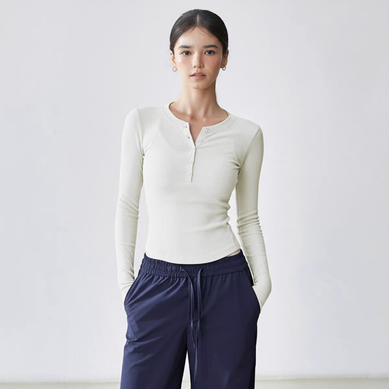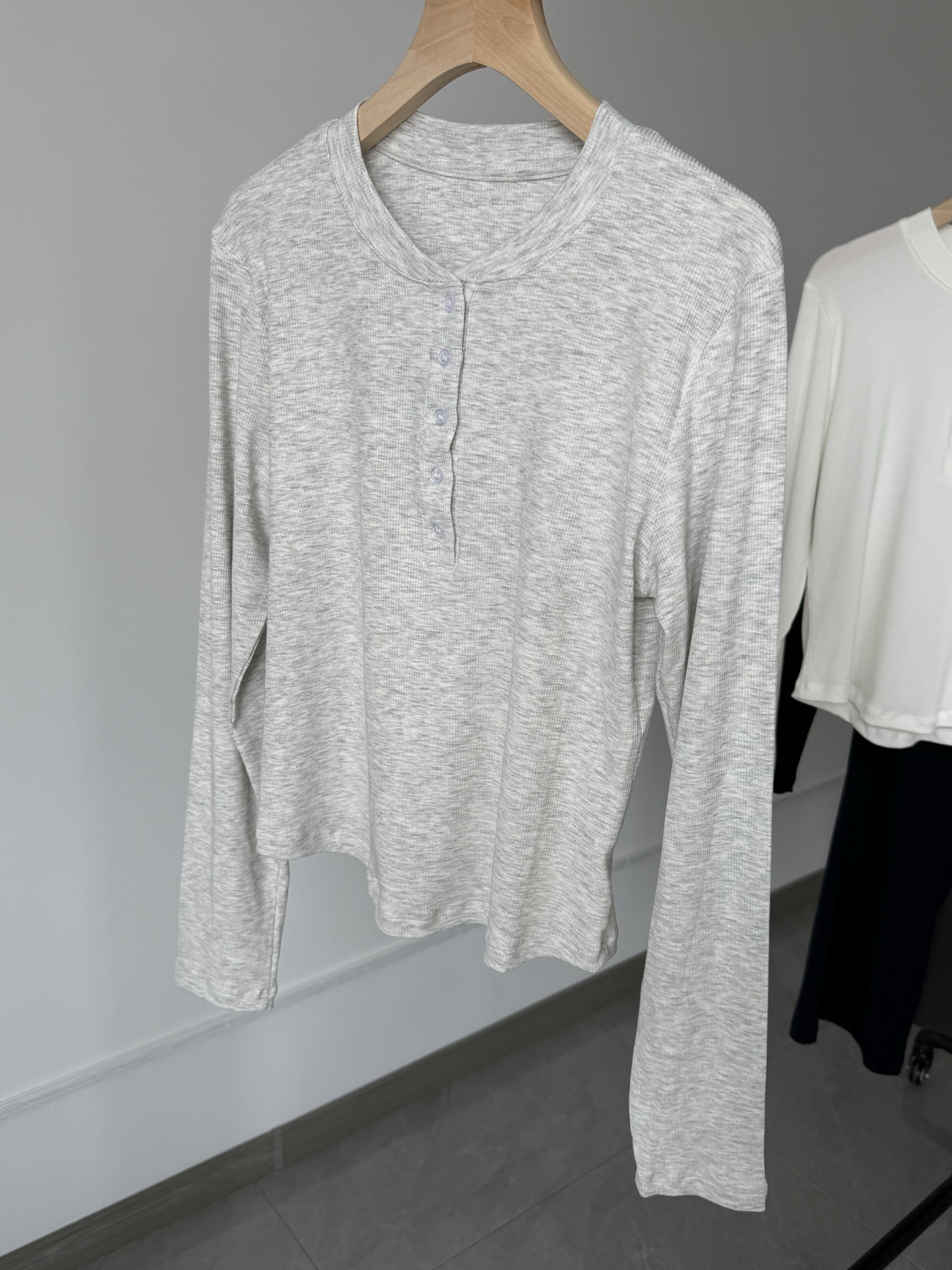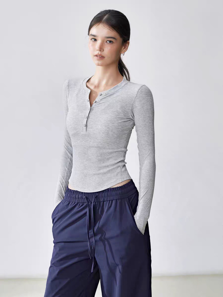 lu家 莫代尔棉螺纹打底 长袖 亨利衫