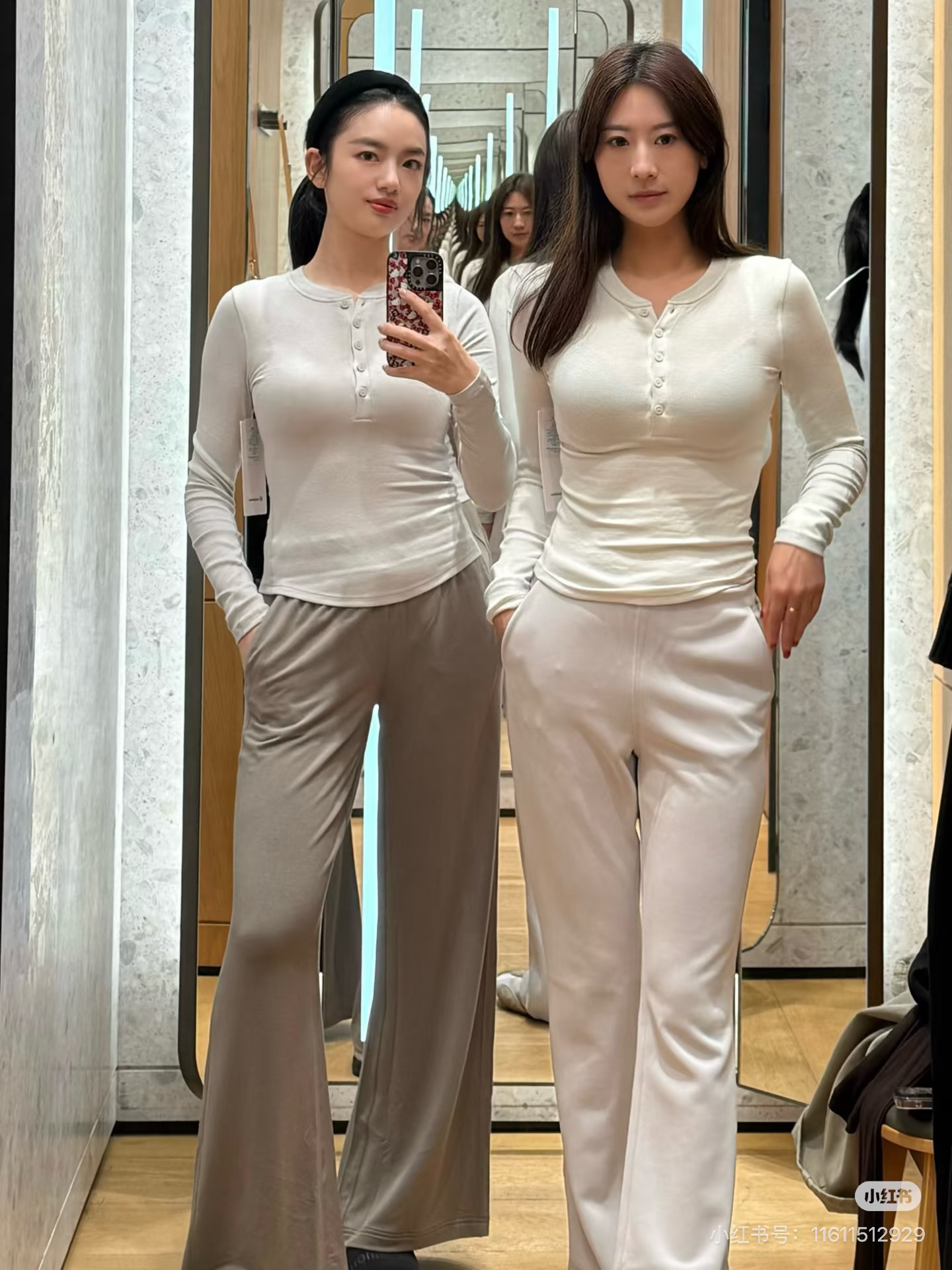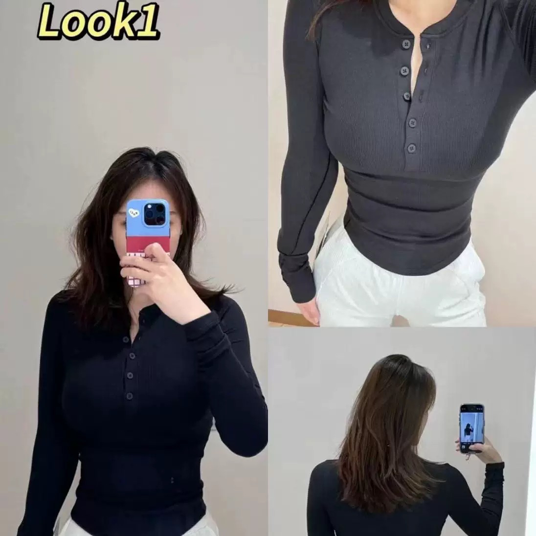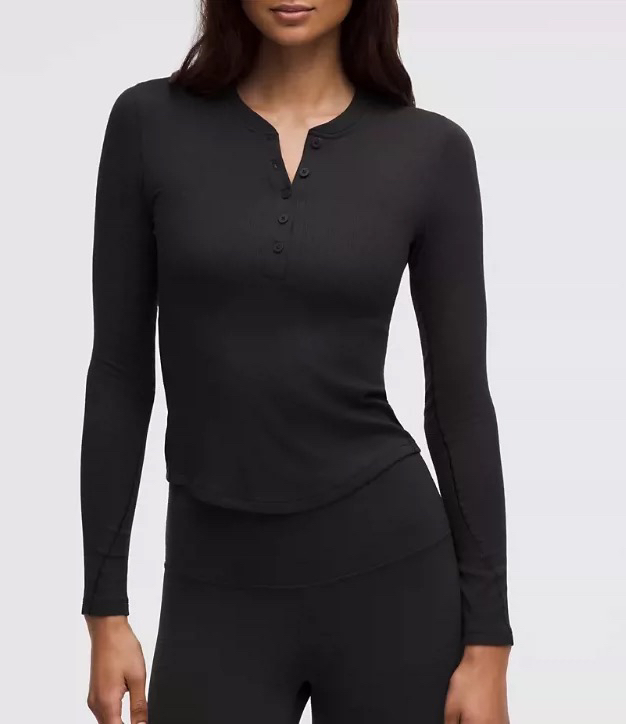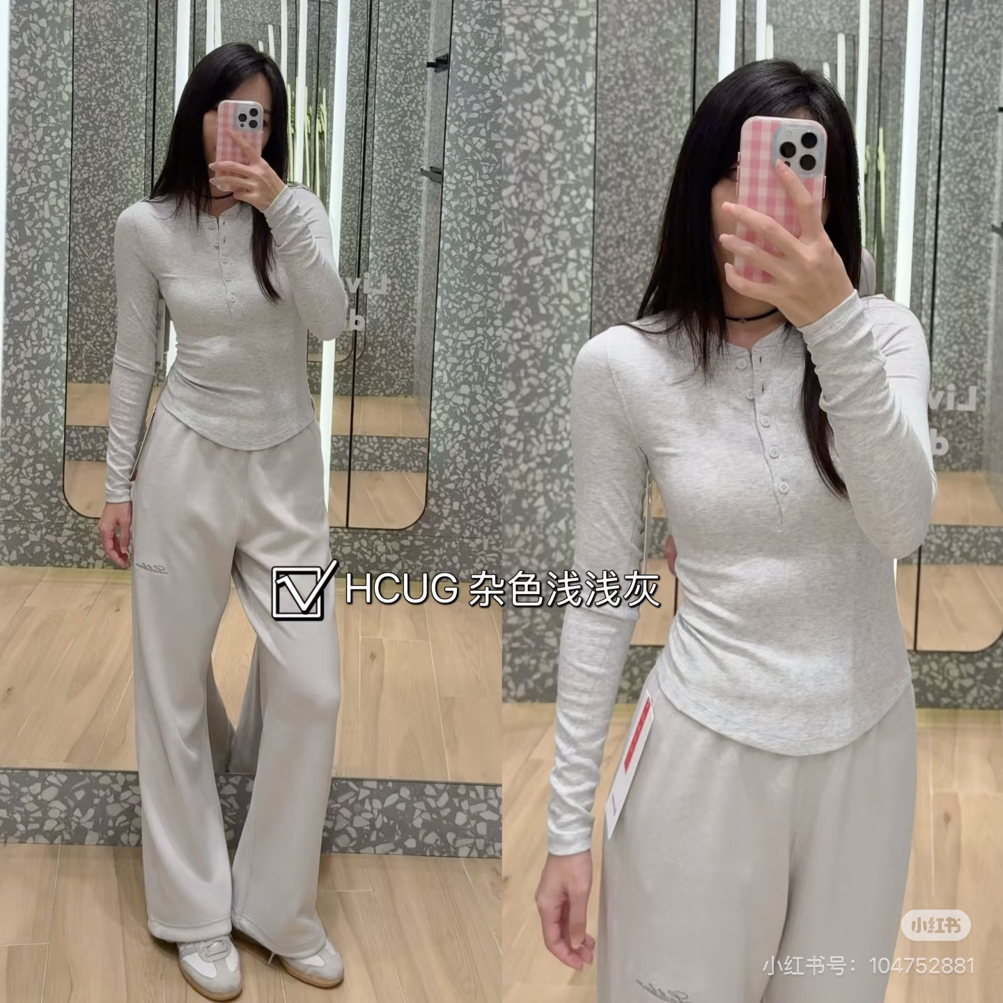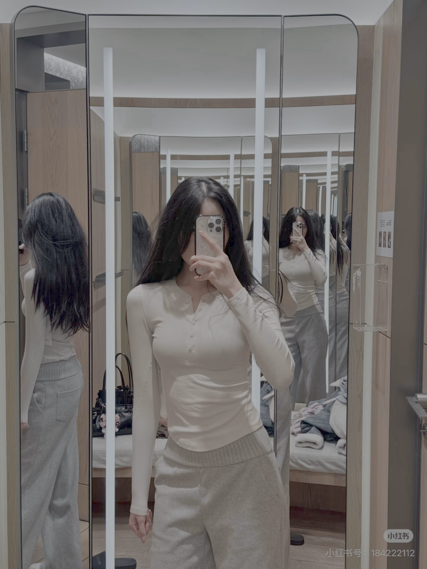 lu家 莫代尔棉螺纹打底 长袖 亨利衫