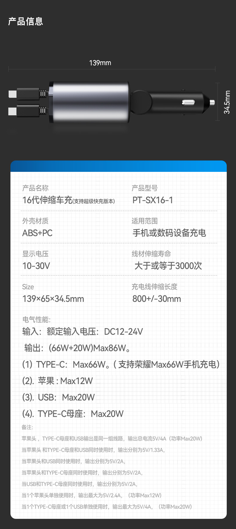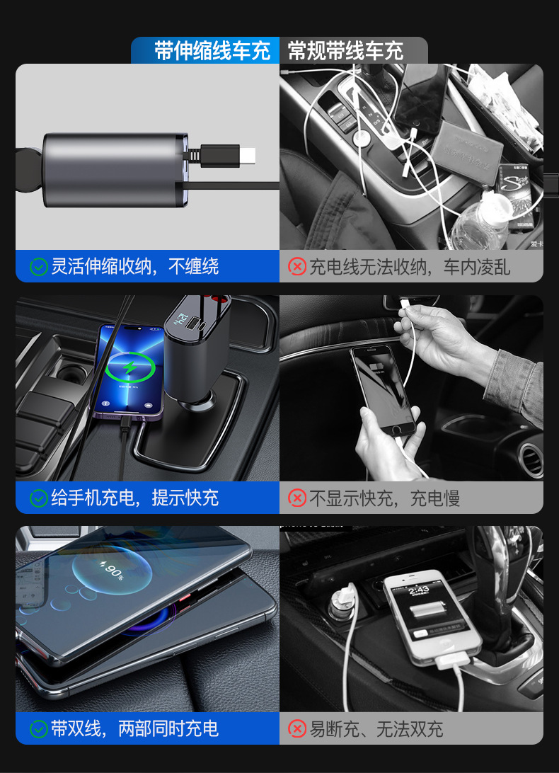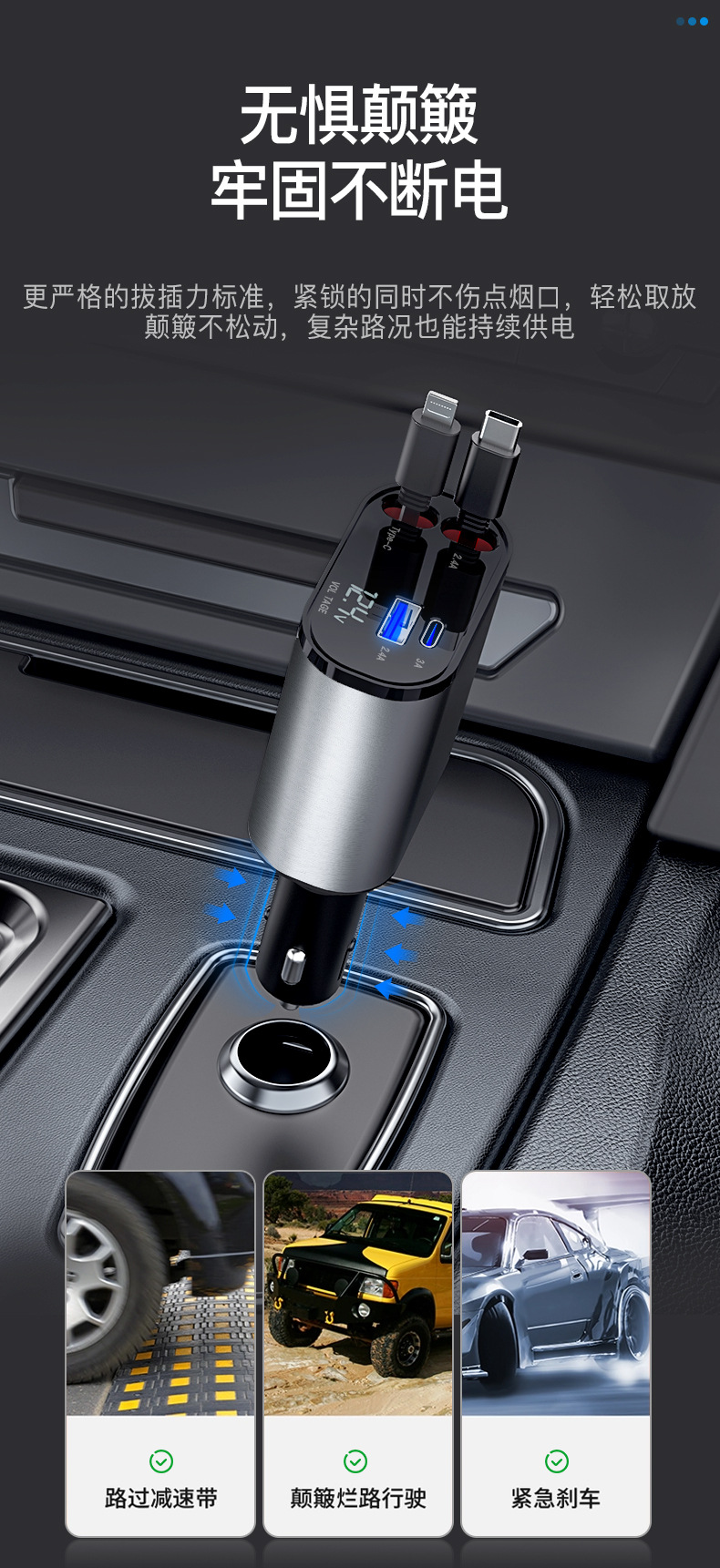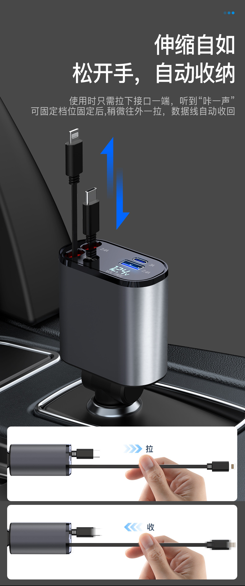 【2024新款】汽车车载充电器支持超级快充闪充伸缩线四合一点烟器