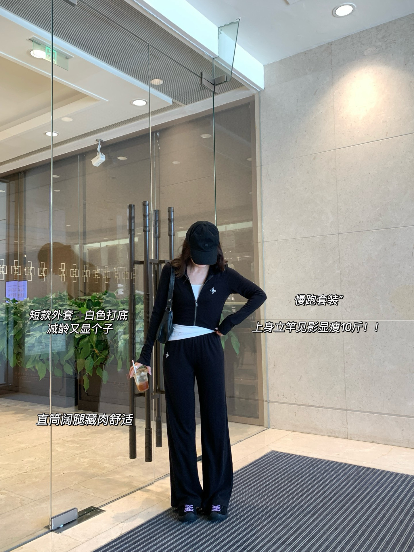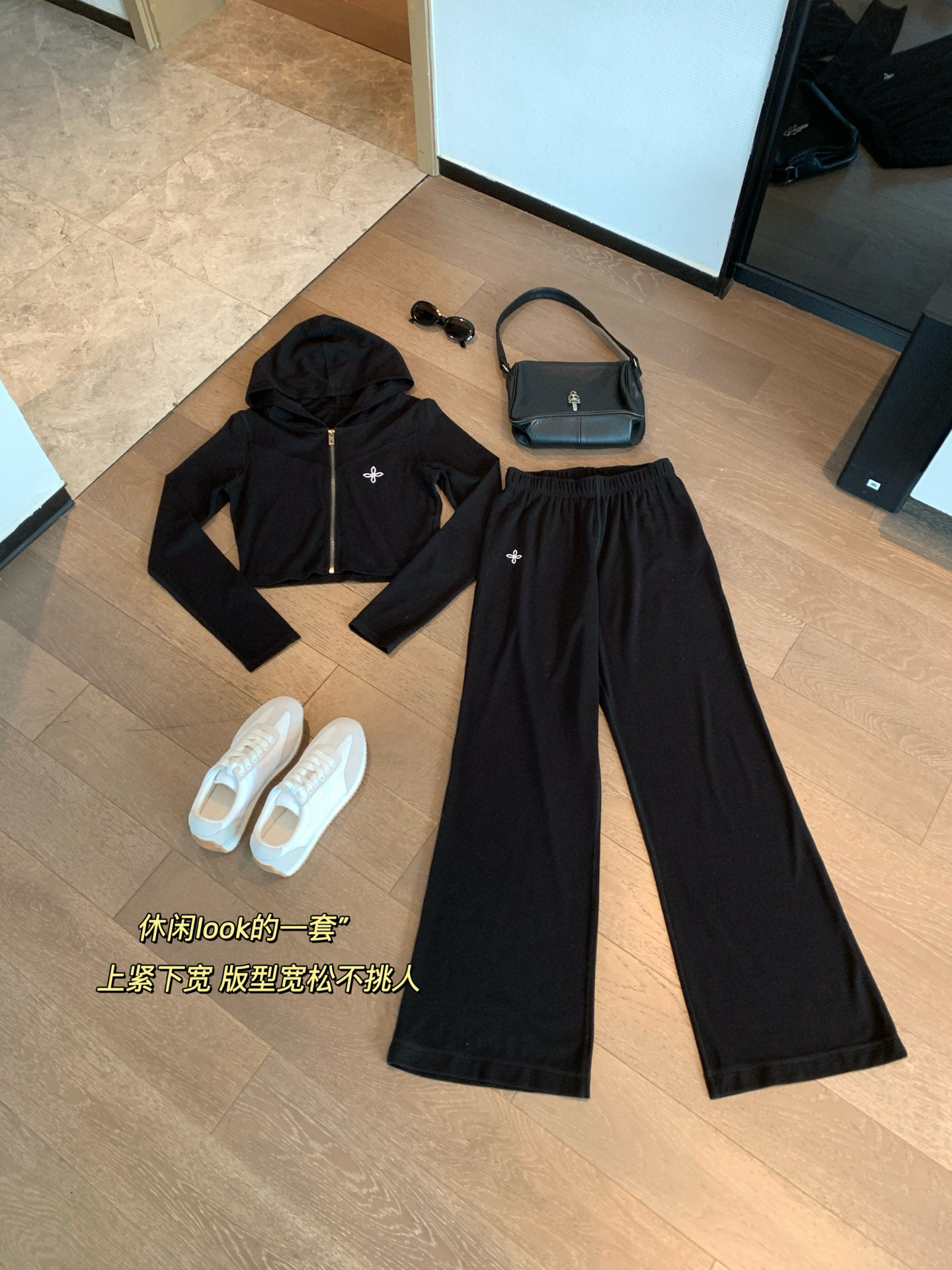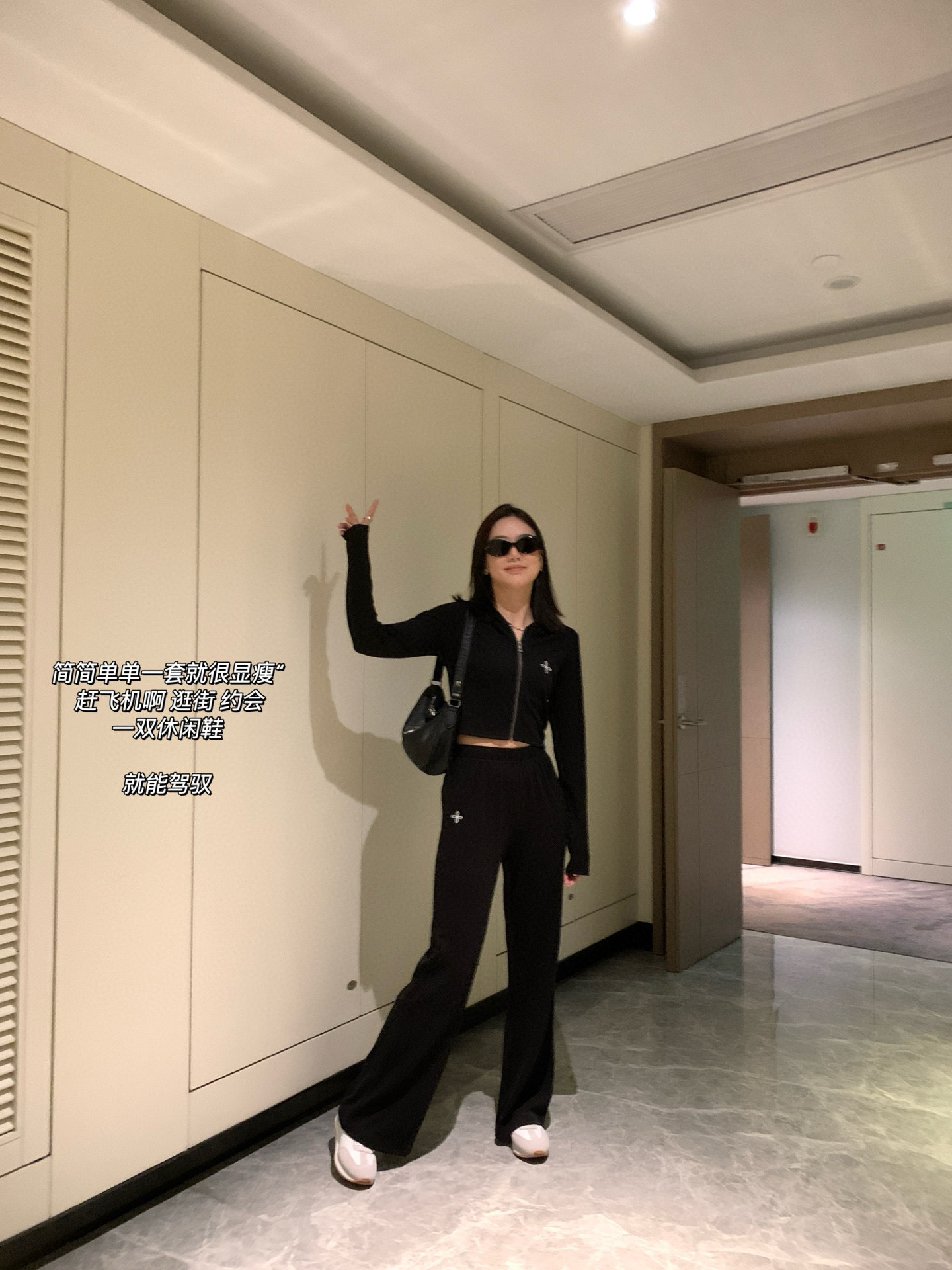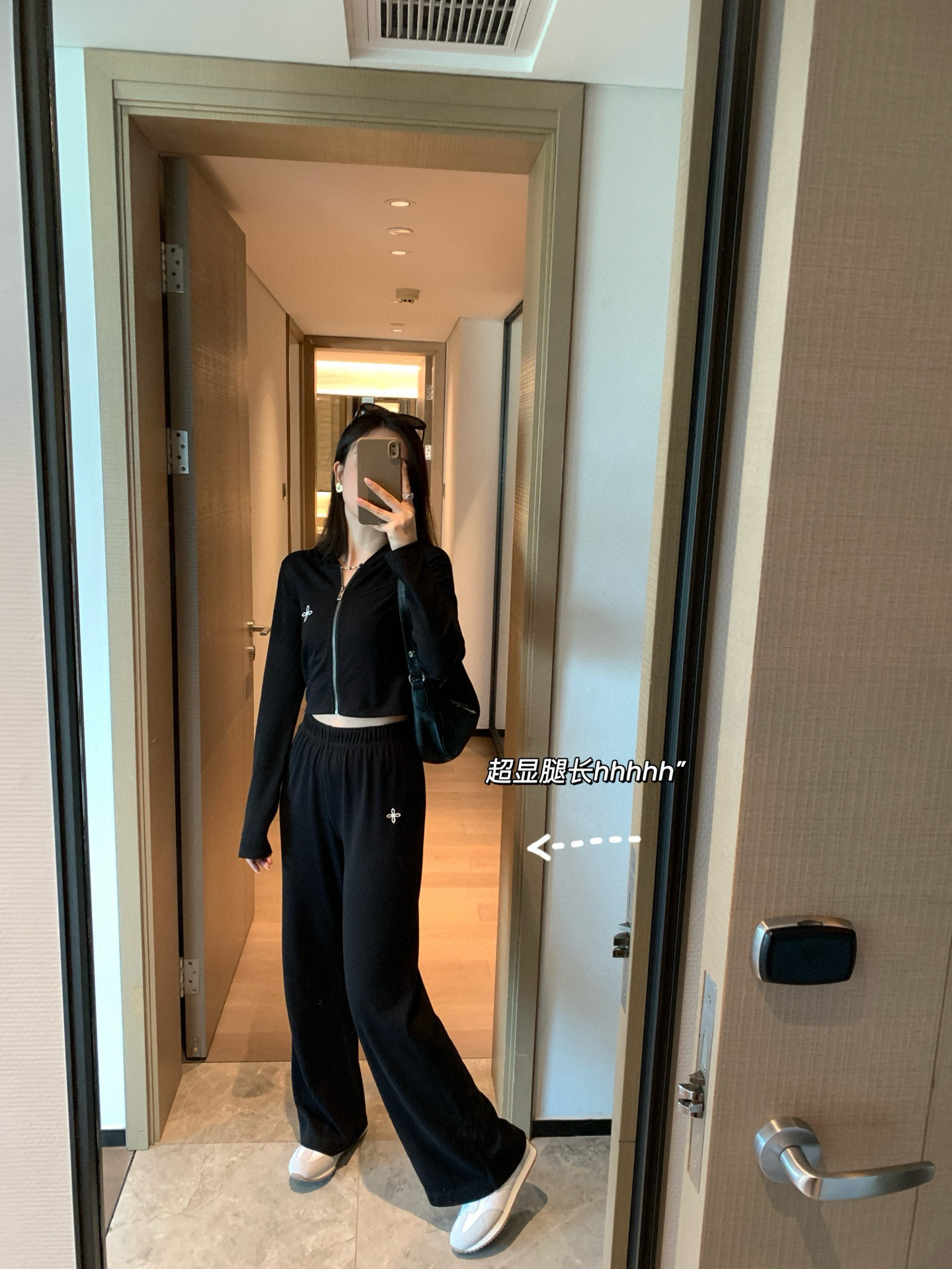 上衣属于短款的设计,下宽上紧的显瘦显高设计理念,